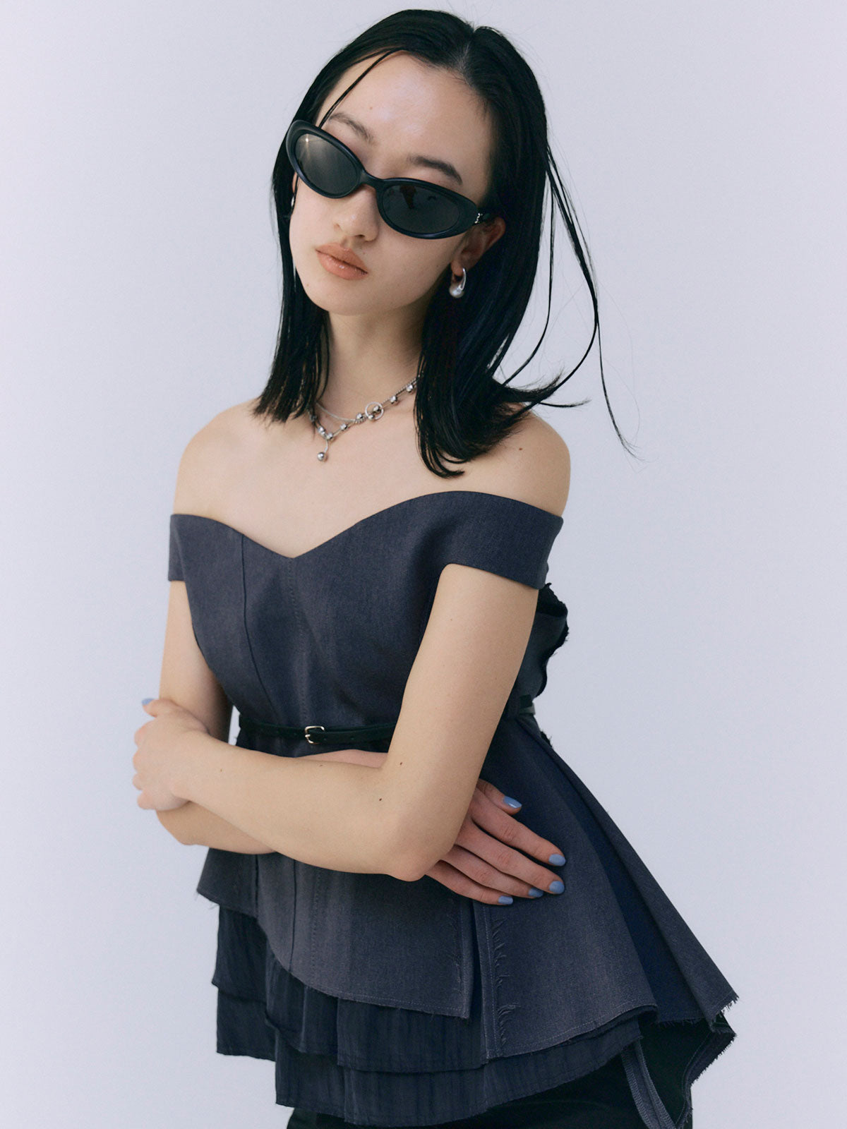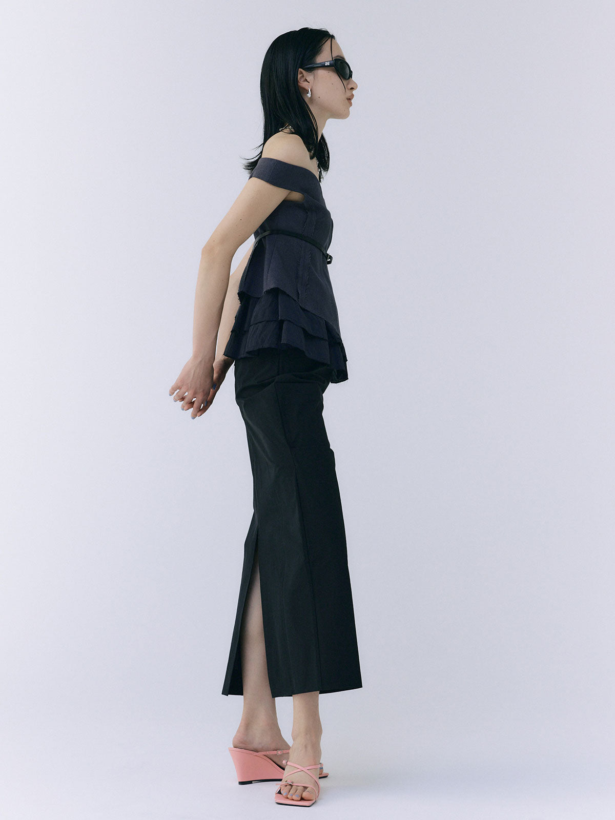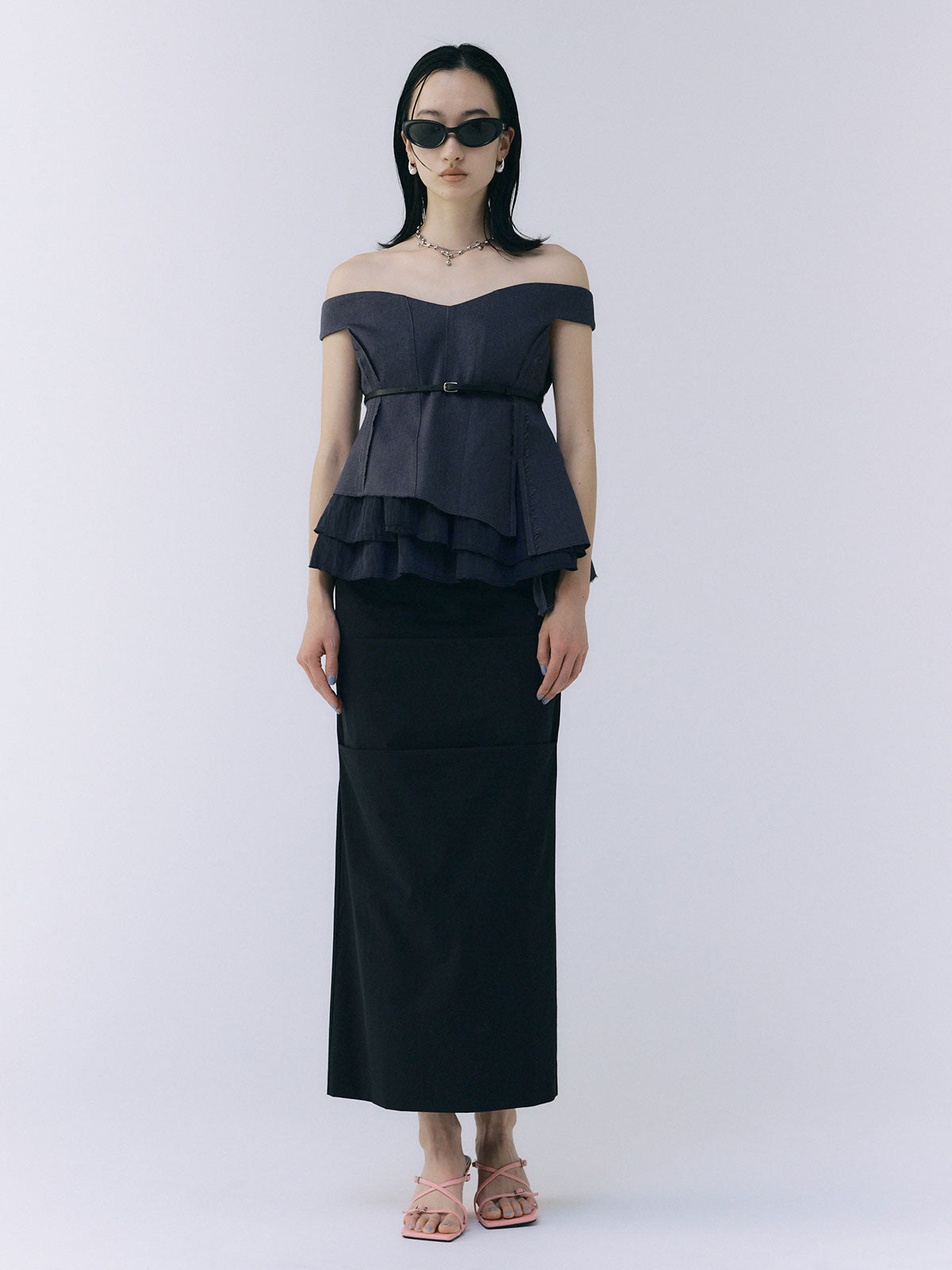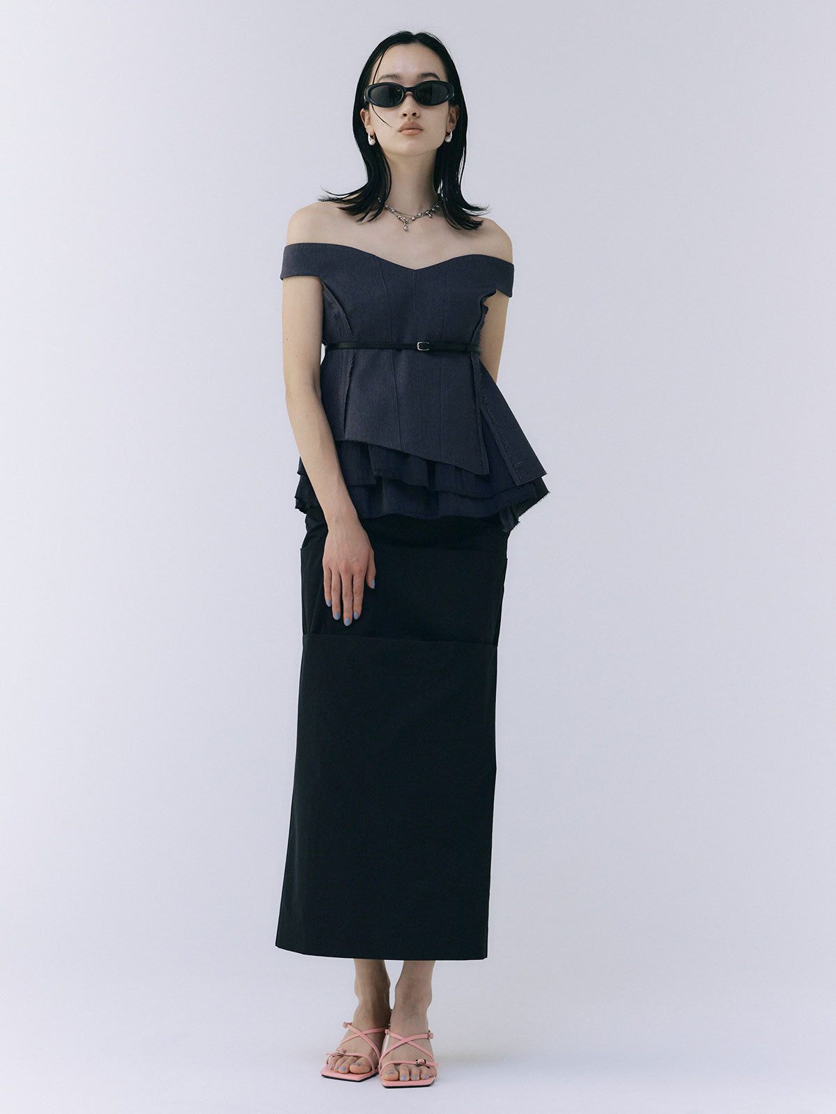 ボディラインを美しく魅せるペプラムブラウスはパネルラインの切り替えから裾に向かってふんわり広がるメリハリのあるシルエットです。
