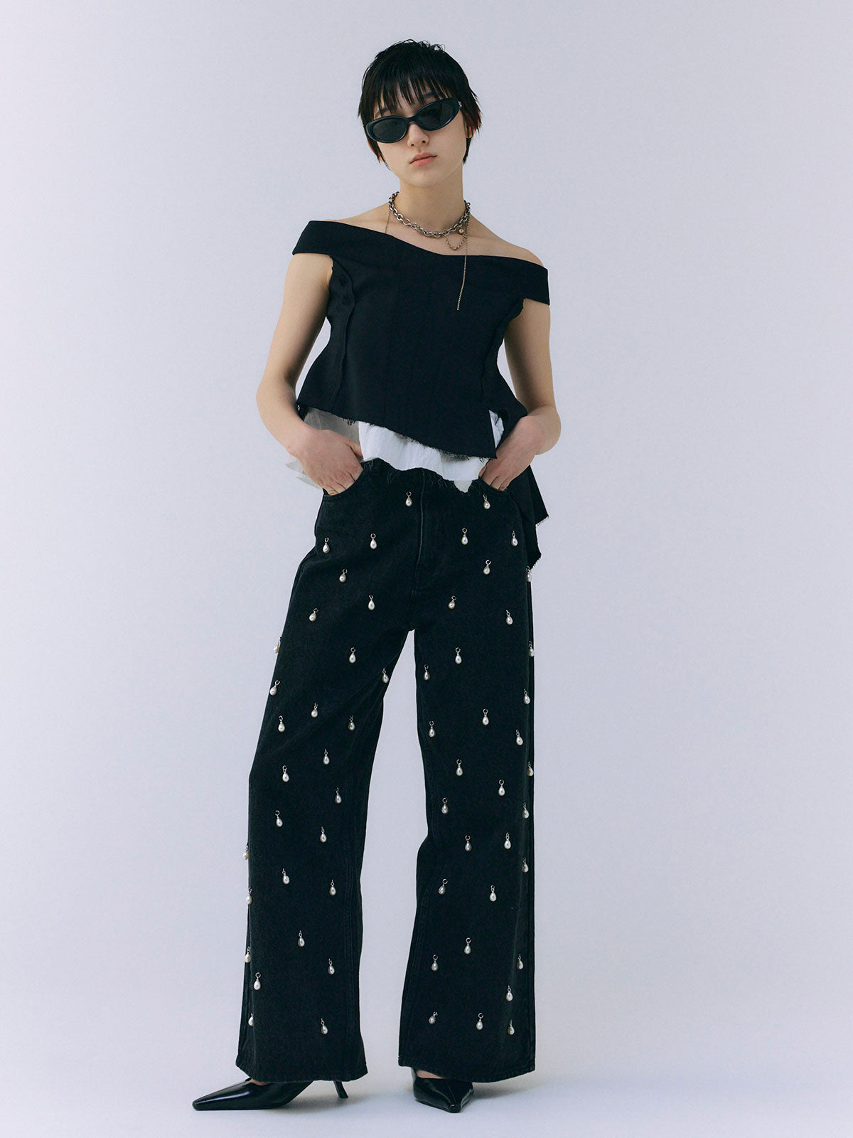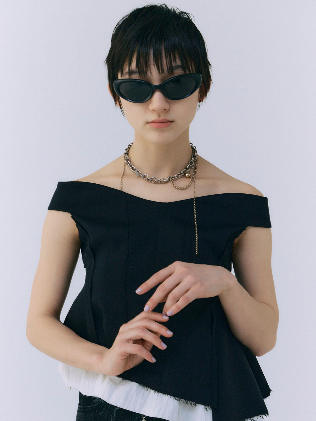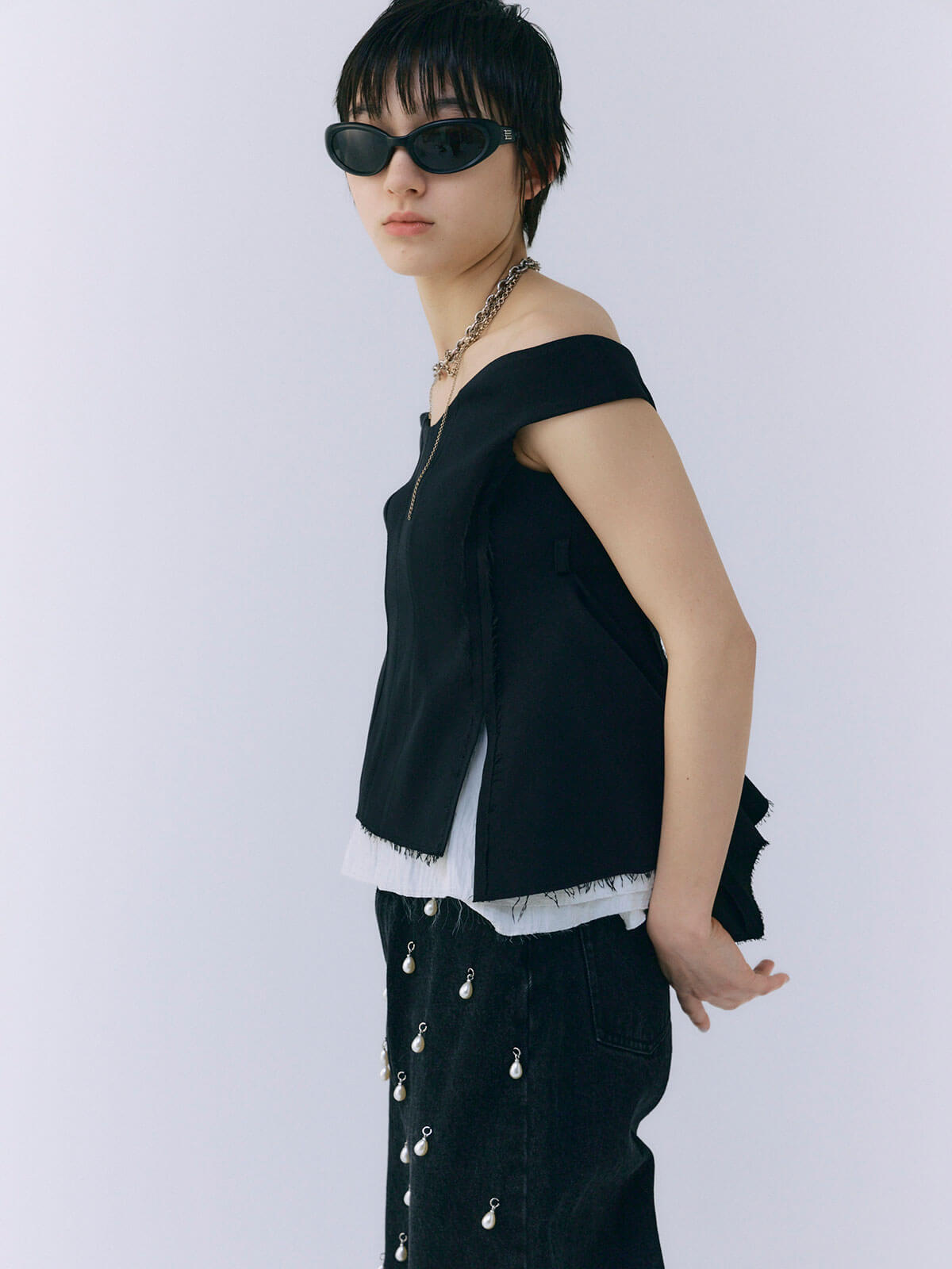 またカットオフディテールを随所に施すことでモードな印象に仕上げています。