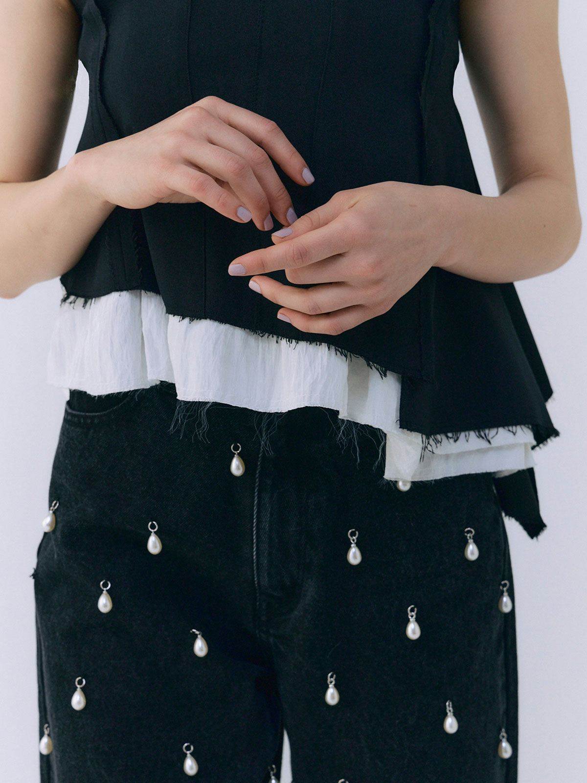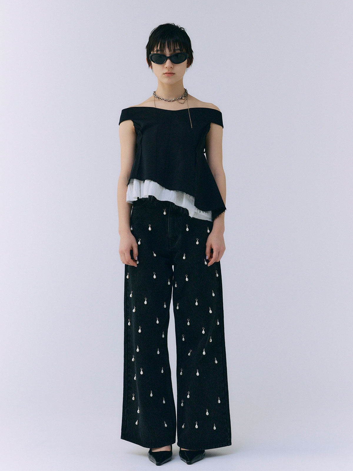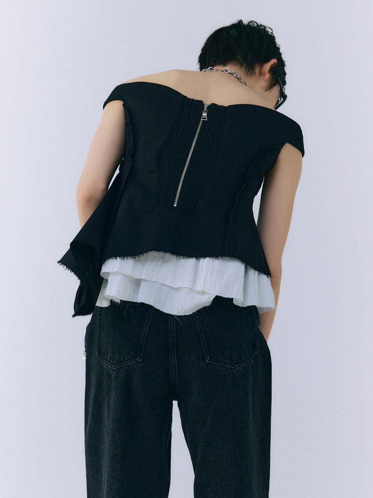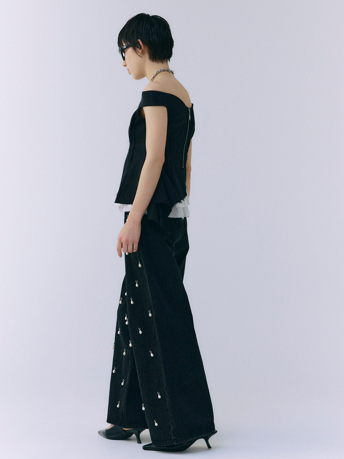 またカットオフディテールを随所に施すことでモードな印象に仕上げています。
