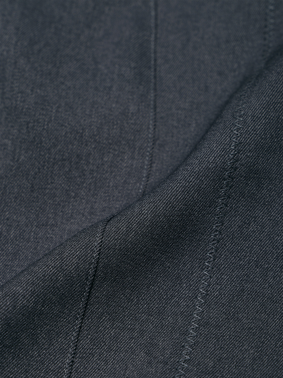 しっかりとした生地に更に全面芯を貼ることで構築的なラインに拘り、甘過ぎずシャープに見えるよう意識しました。