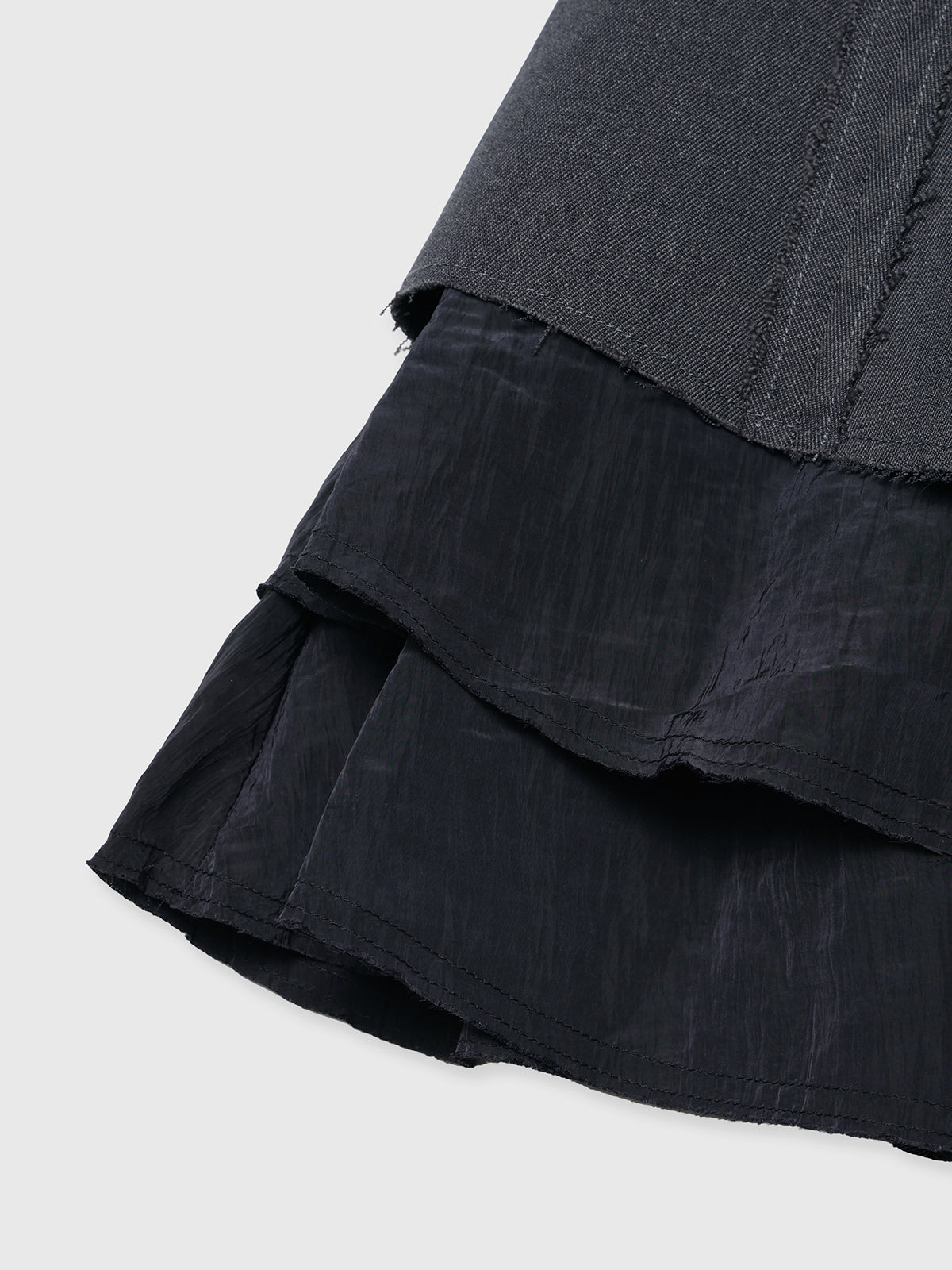 裾からワッシャープリーツの異素材を組み合わせることで全体に陰影が生まれ、すっきりとしたシルエットが叶います。