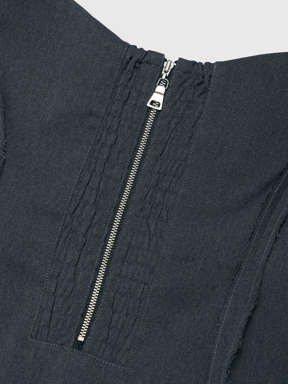 脇ファスナーと背中はゴム仕様にしているので着脱もストレスフリーです。