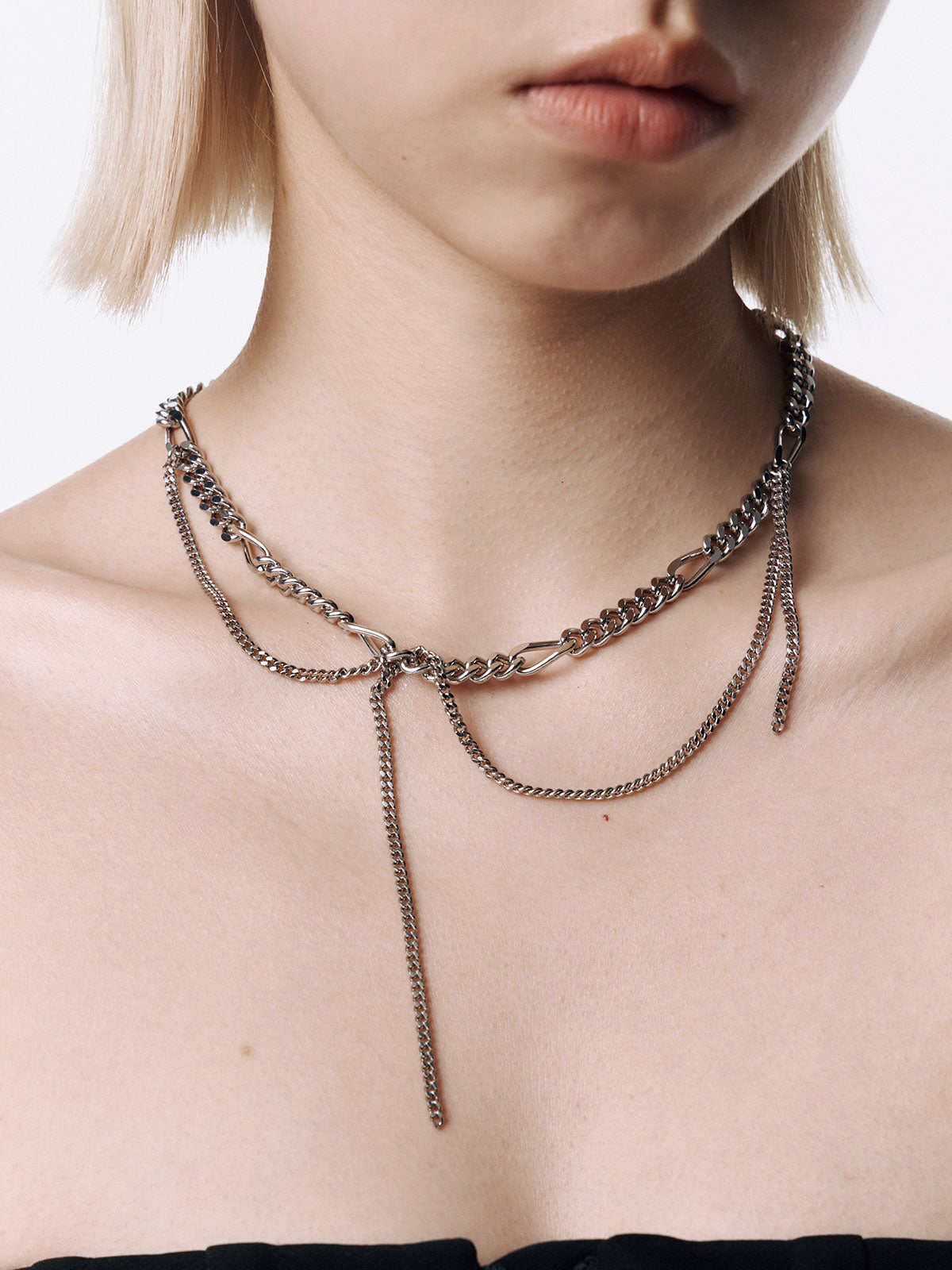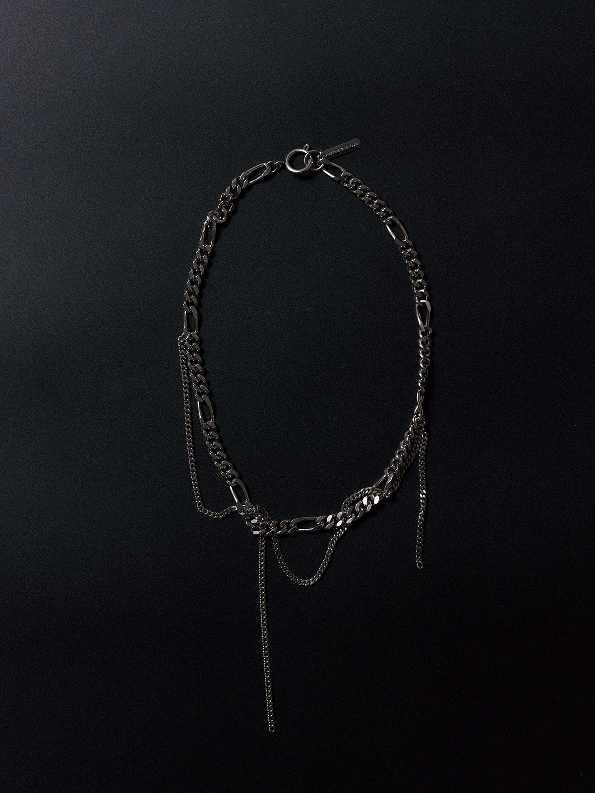 ブロンズやアンティークシルバー加工のチェーンやヴィンテージ素材に、彼女独自のセンスを加える事によって、コンテンポラリーでより魅力的なアクセサリーに仕上がっている。