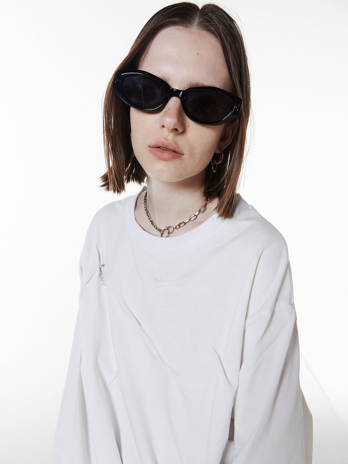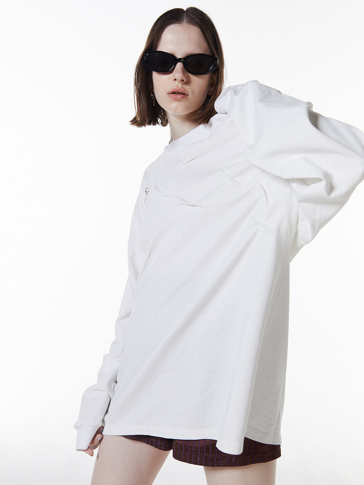 畳じわをあえて残すようにデザインしたロングTシャツ。
