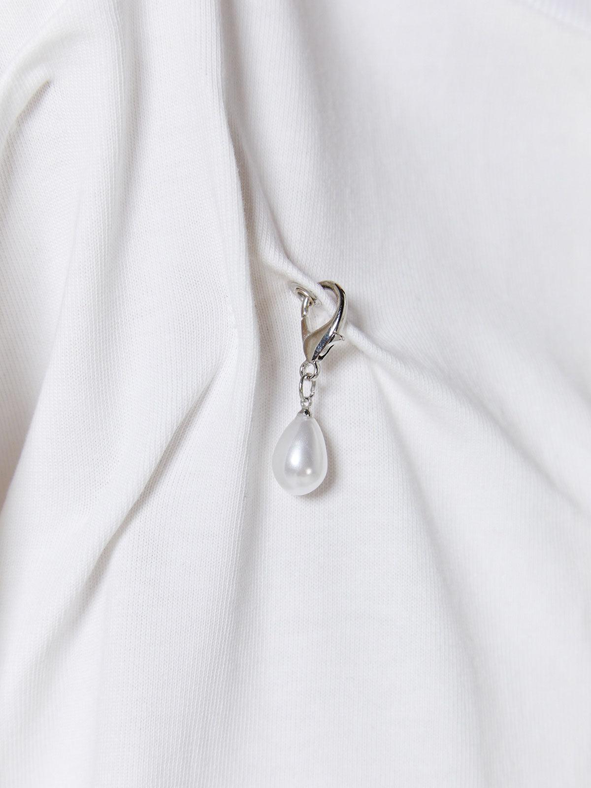 ポイントで施したパールが上品なアクセントとなり、シンプルながら存在感のある一枚に仕上がっています。