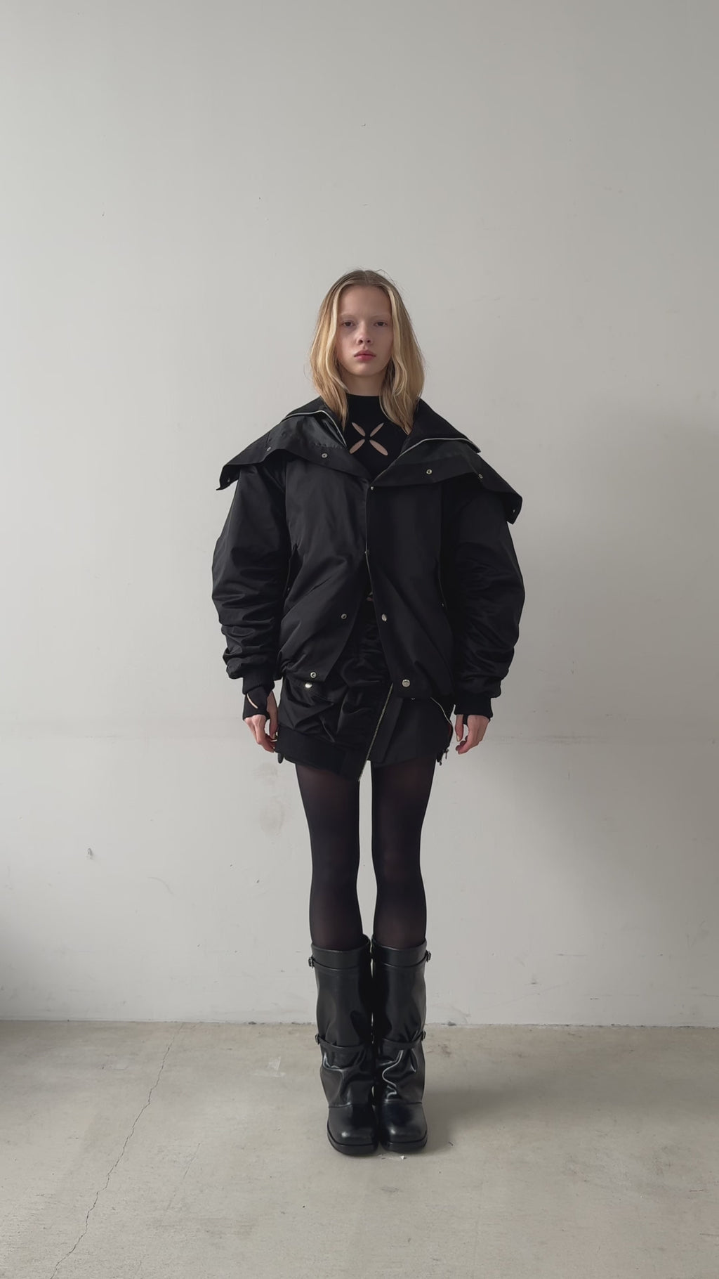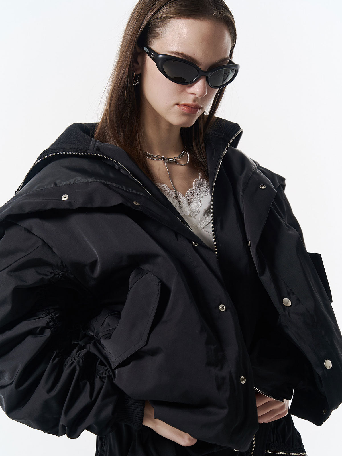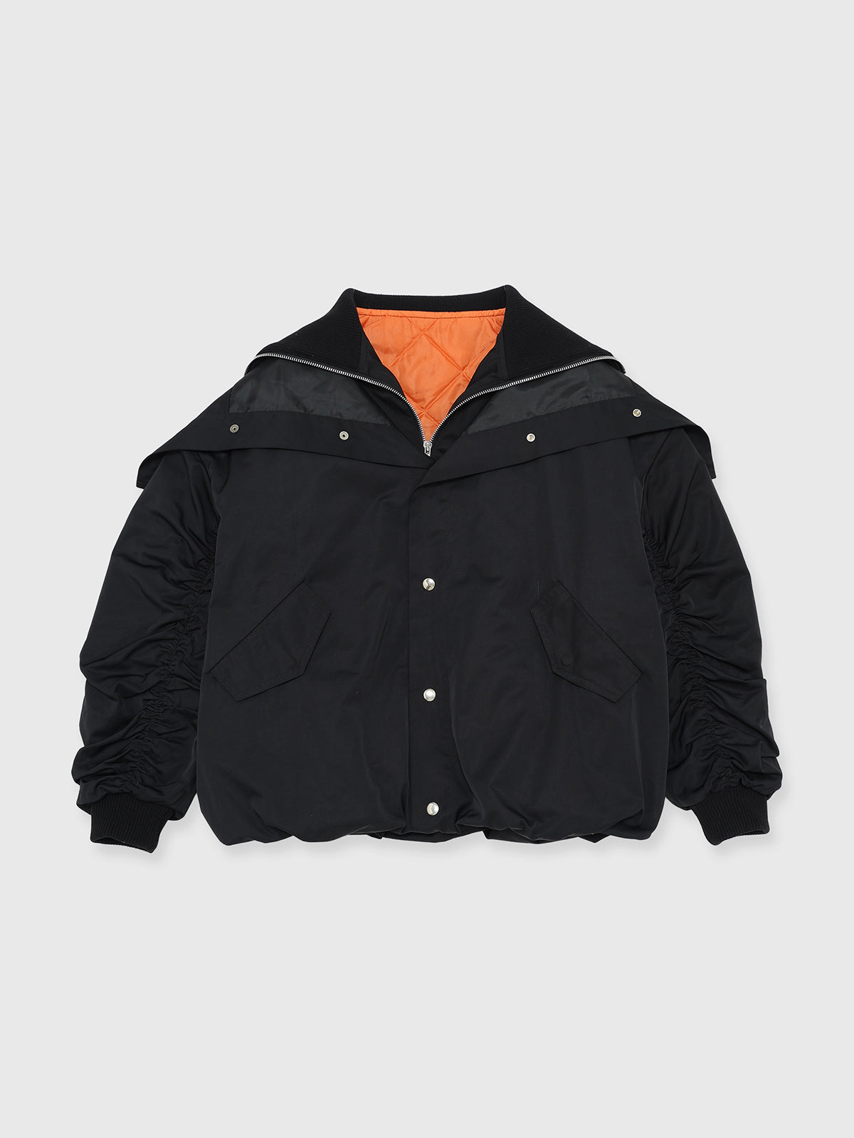 大胆にボリュームを出したシルエットが、定番アウターをひと癖あるモードアイテムへとアップデート。