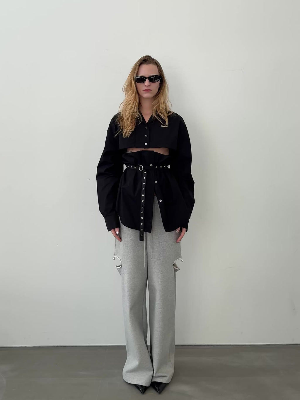 大胆にウエスト上にカッティングを施すことで、上下の見頃が