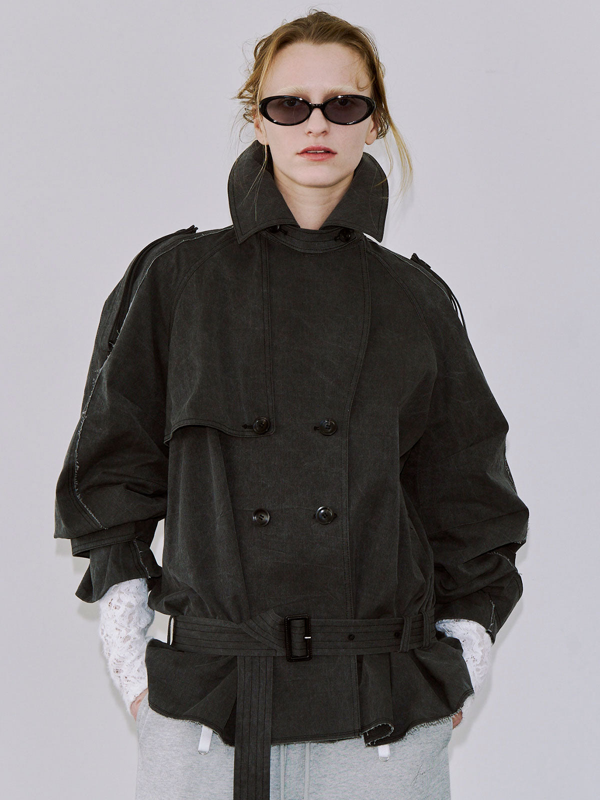 立体感とディテールにこだわったトレンチコートは袖の内側に施されたダーツが