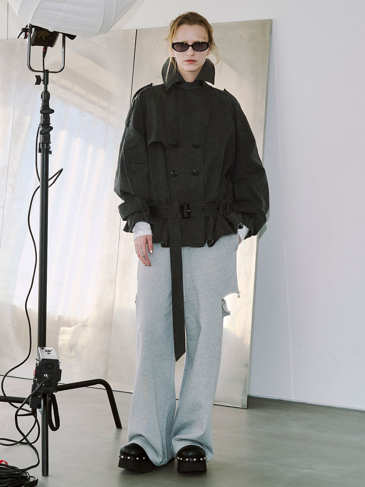 付属のベルトは今季らしくロウウエストでのスタイリングはもちろん、