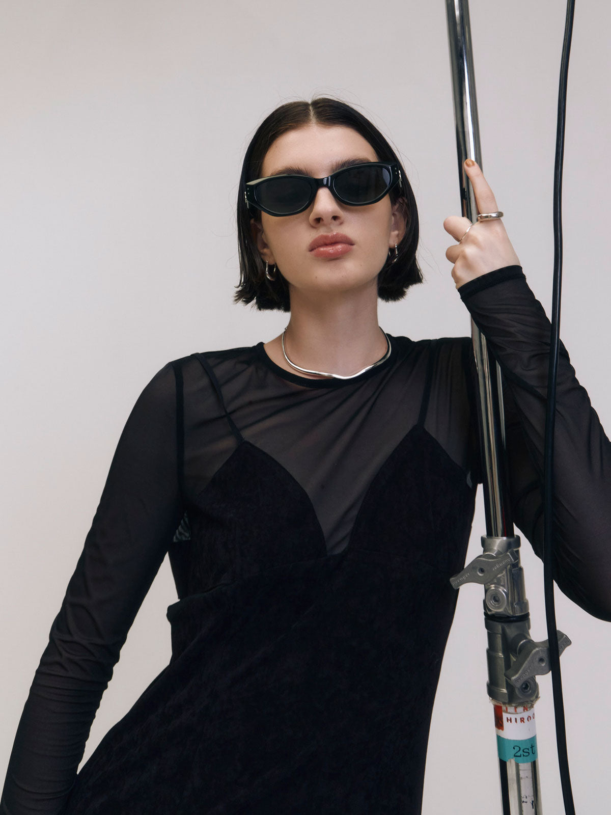 ブラック1色と、あえて肌と同トーンのシアーを合わせたマルチカラーの2色展開です。