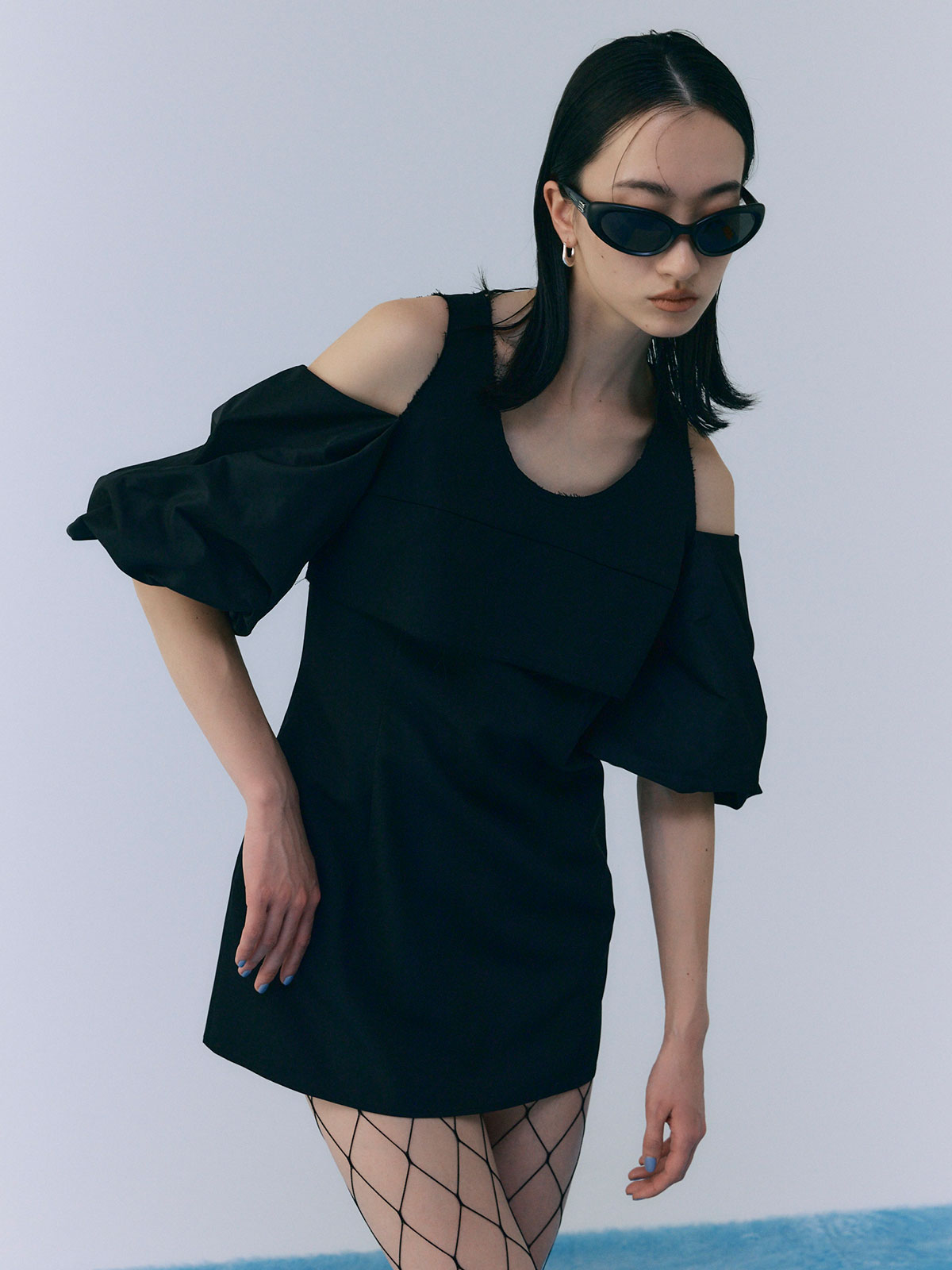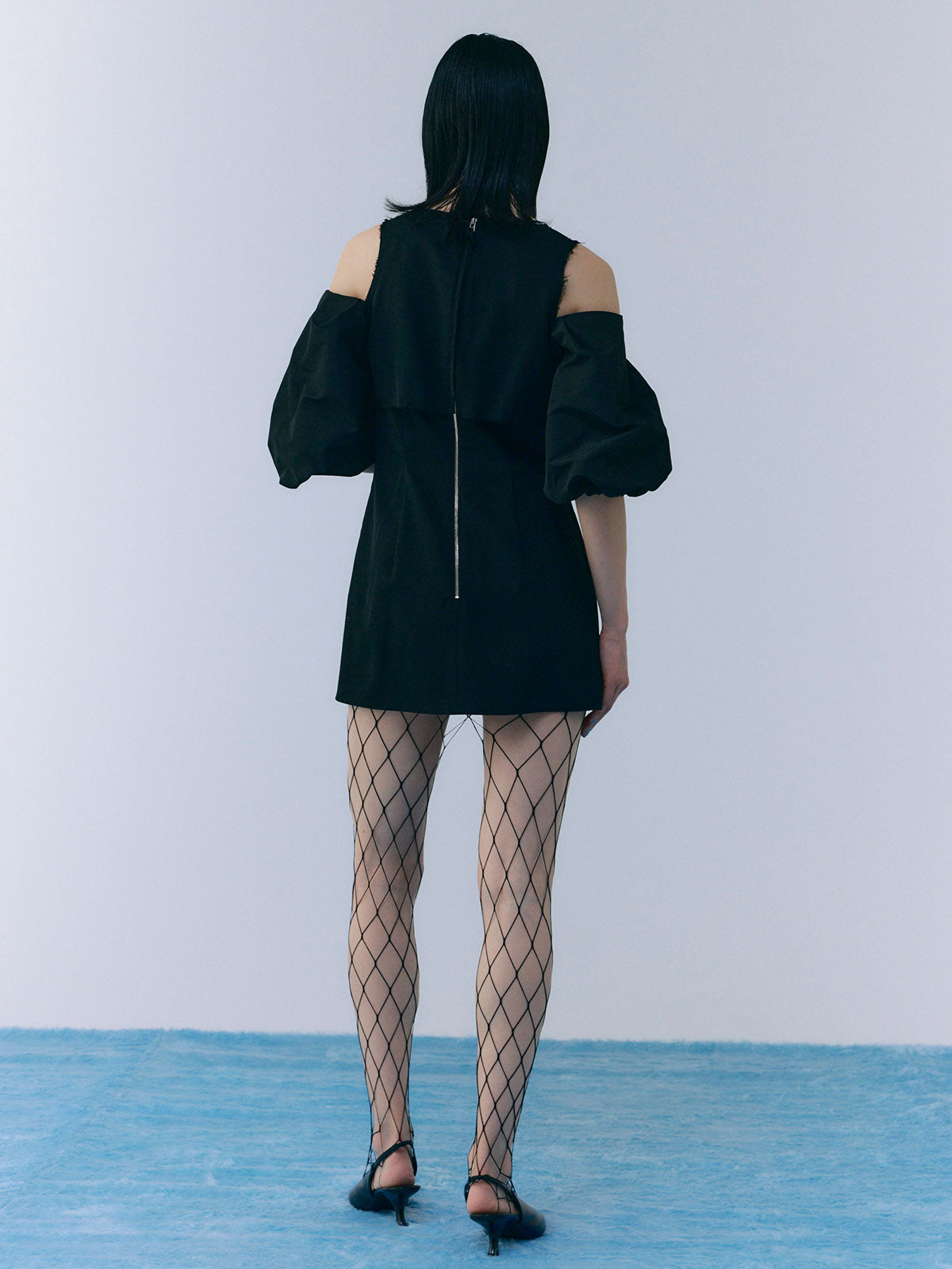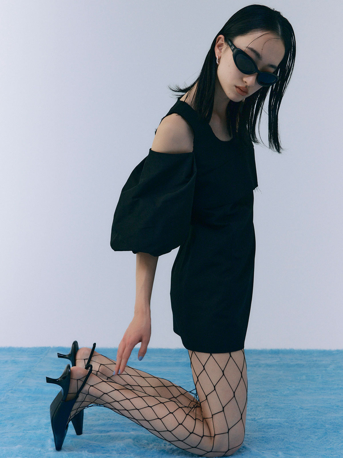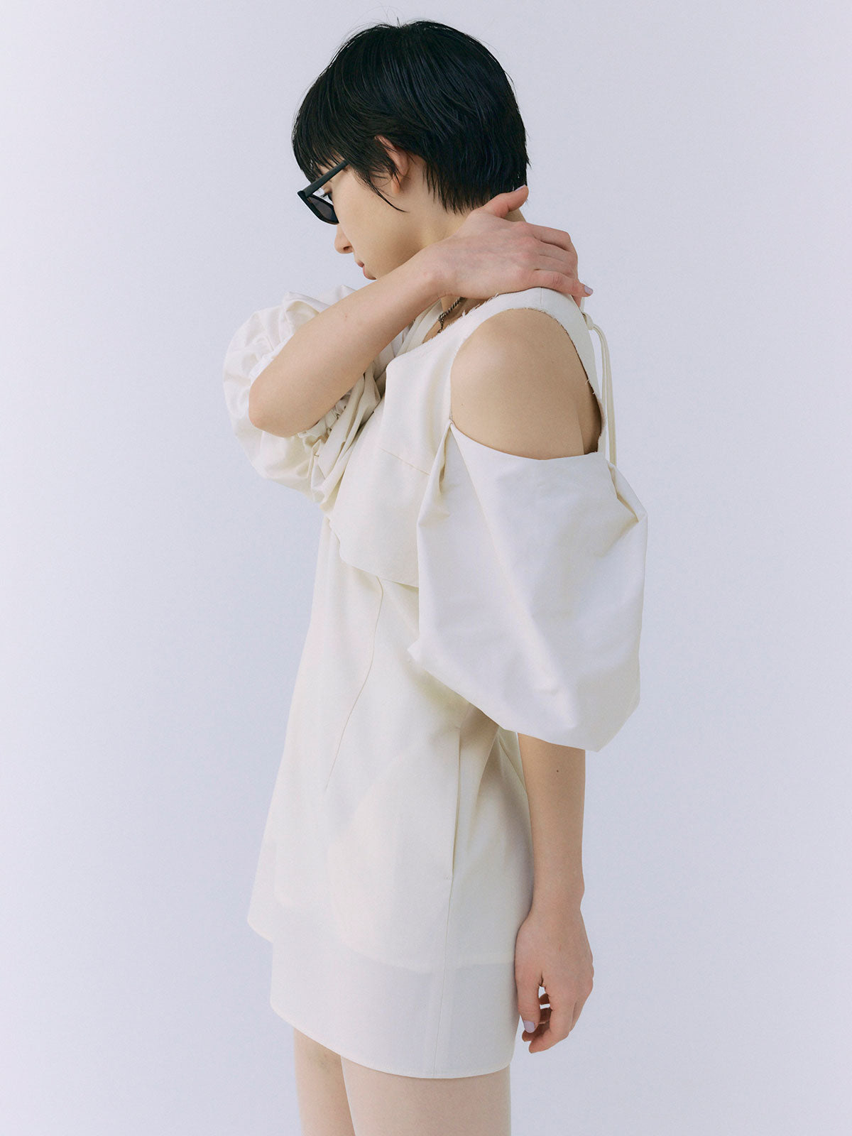 モードな素材とレディな袖のディティールがJOSEMOONらしいデザイン。