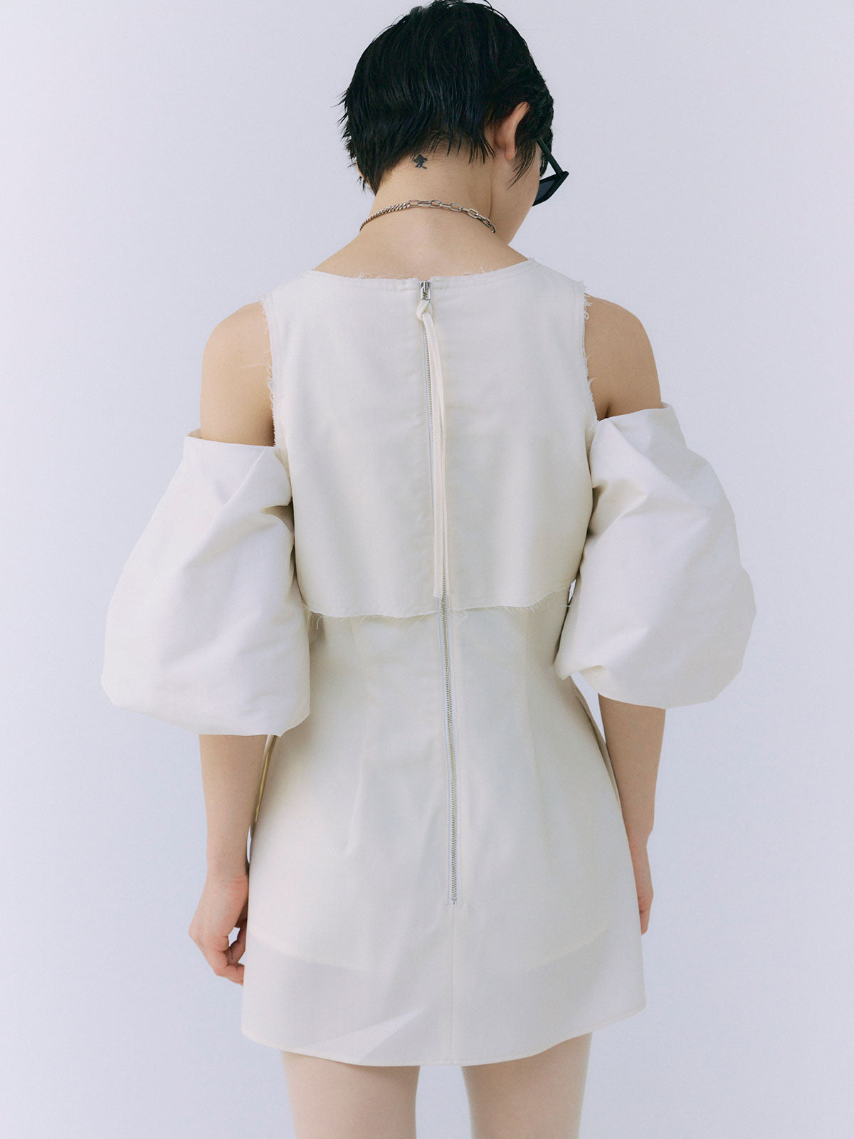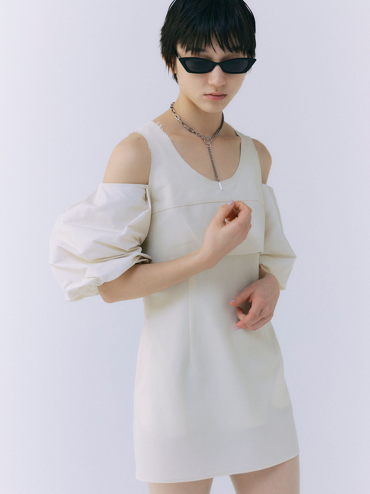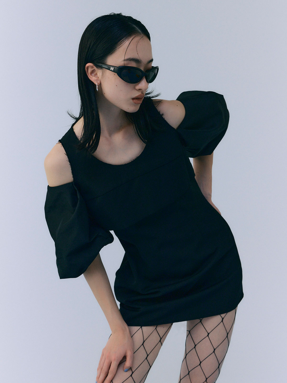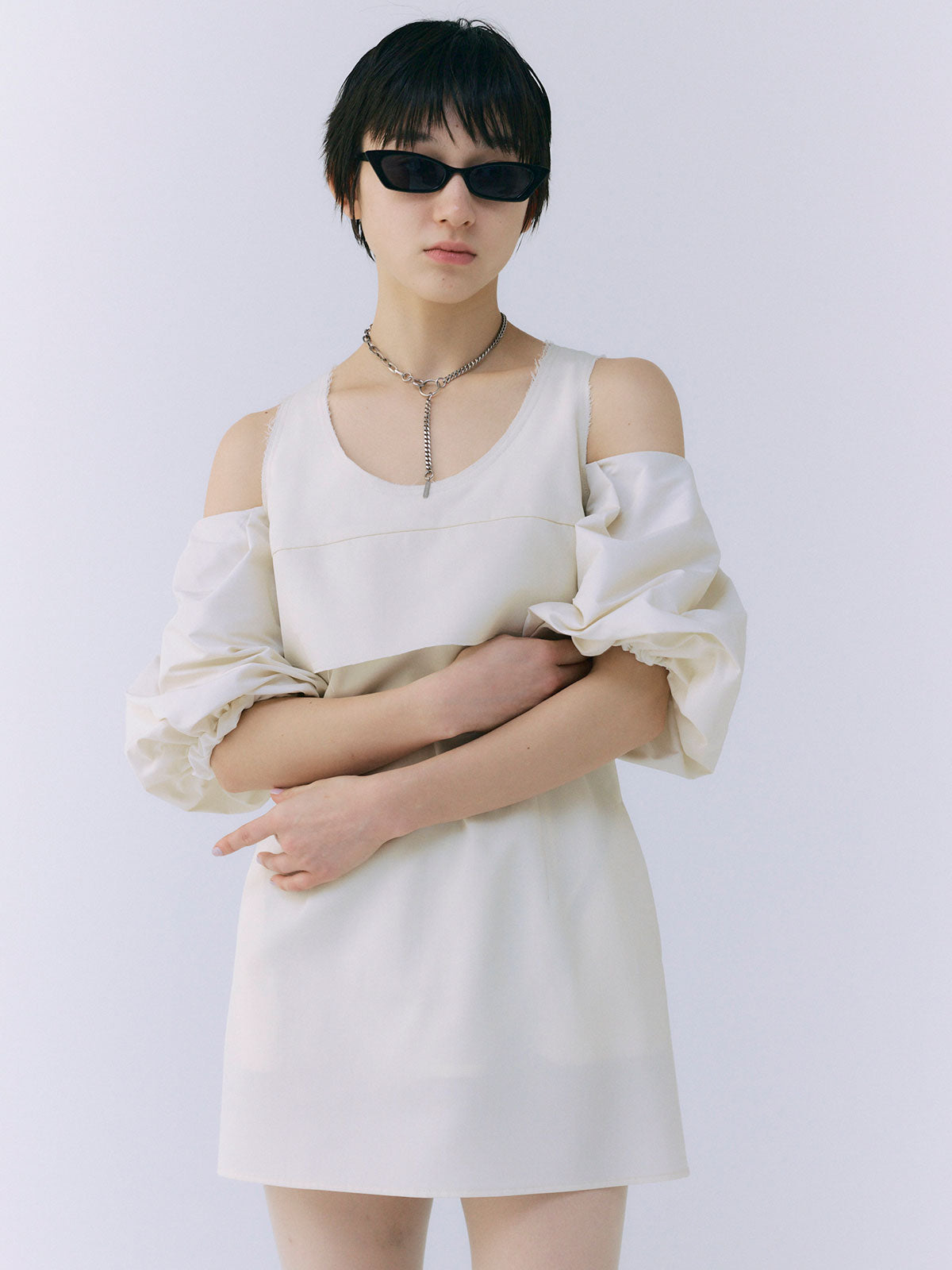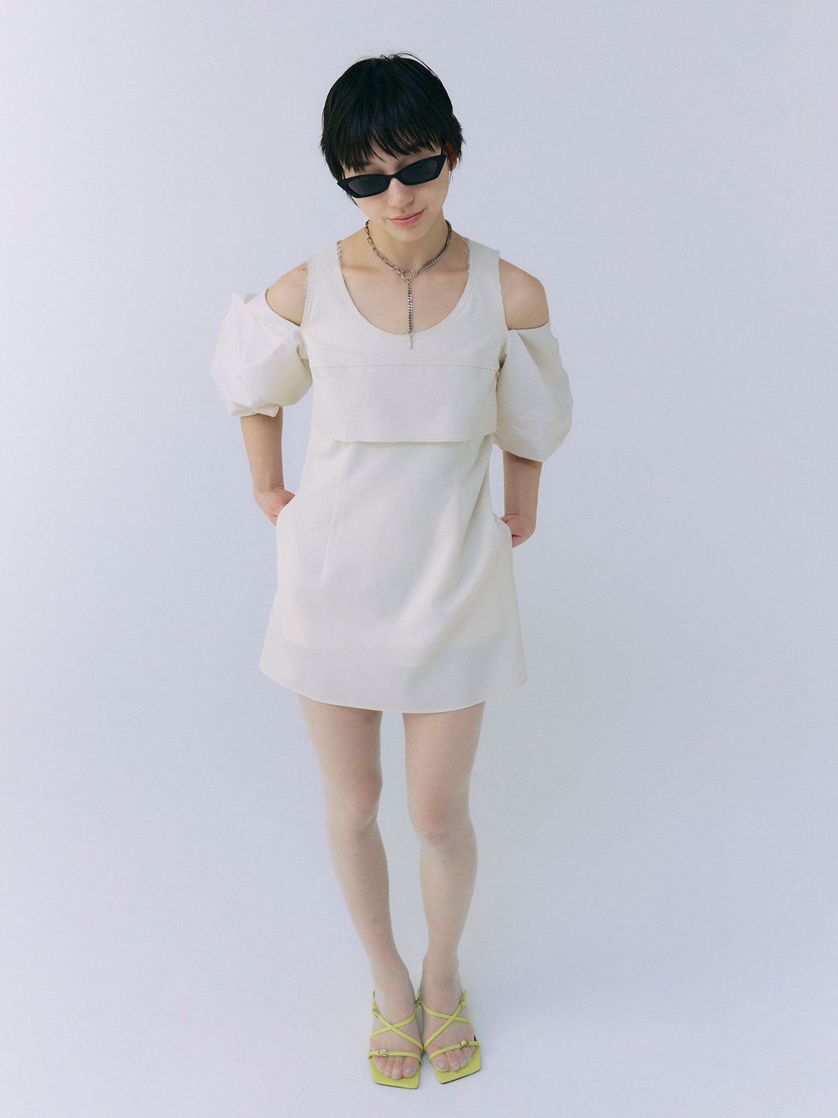 モードな素材とレディな袖のディティールがJOSEMOONらしいデザイン。