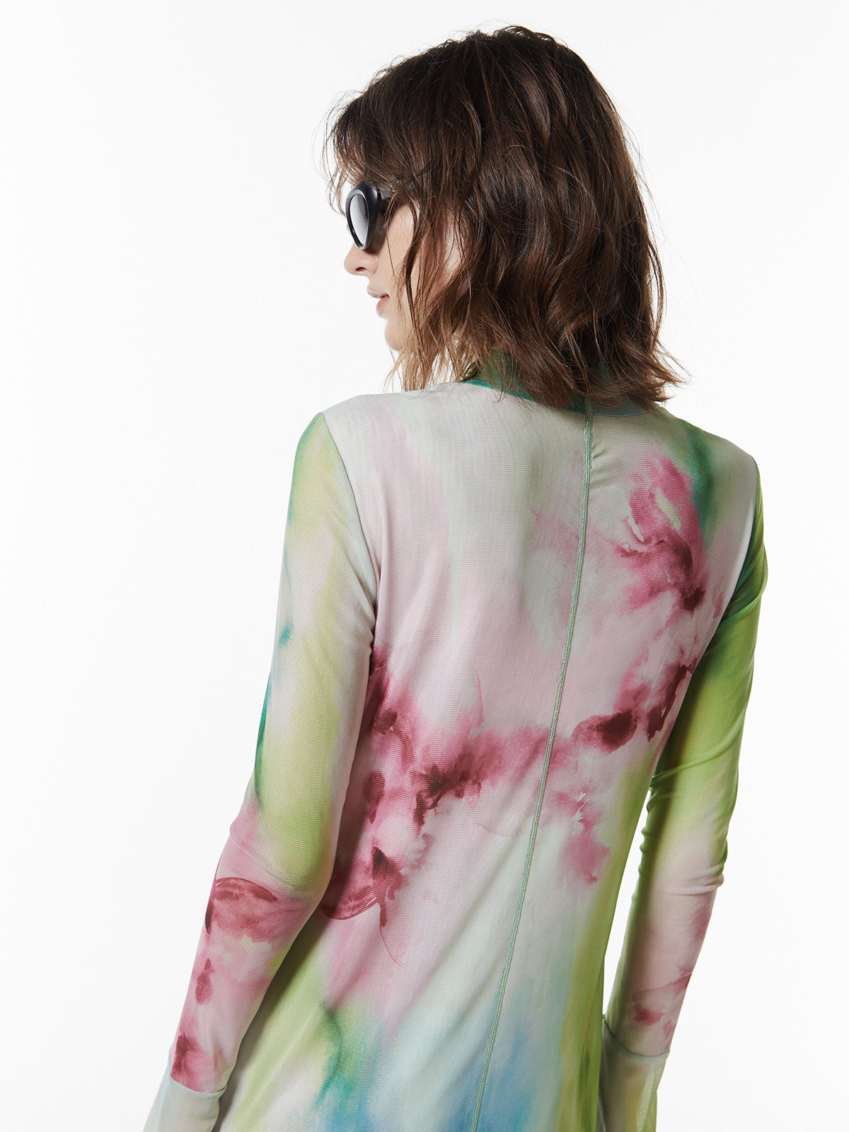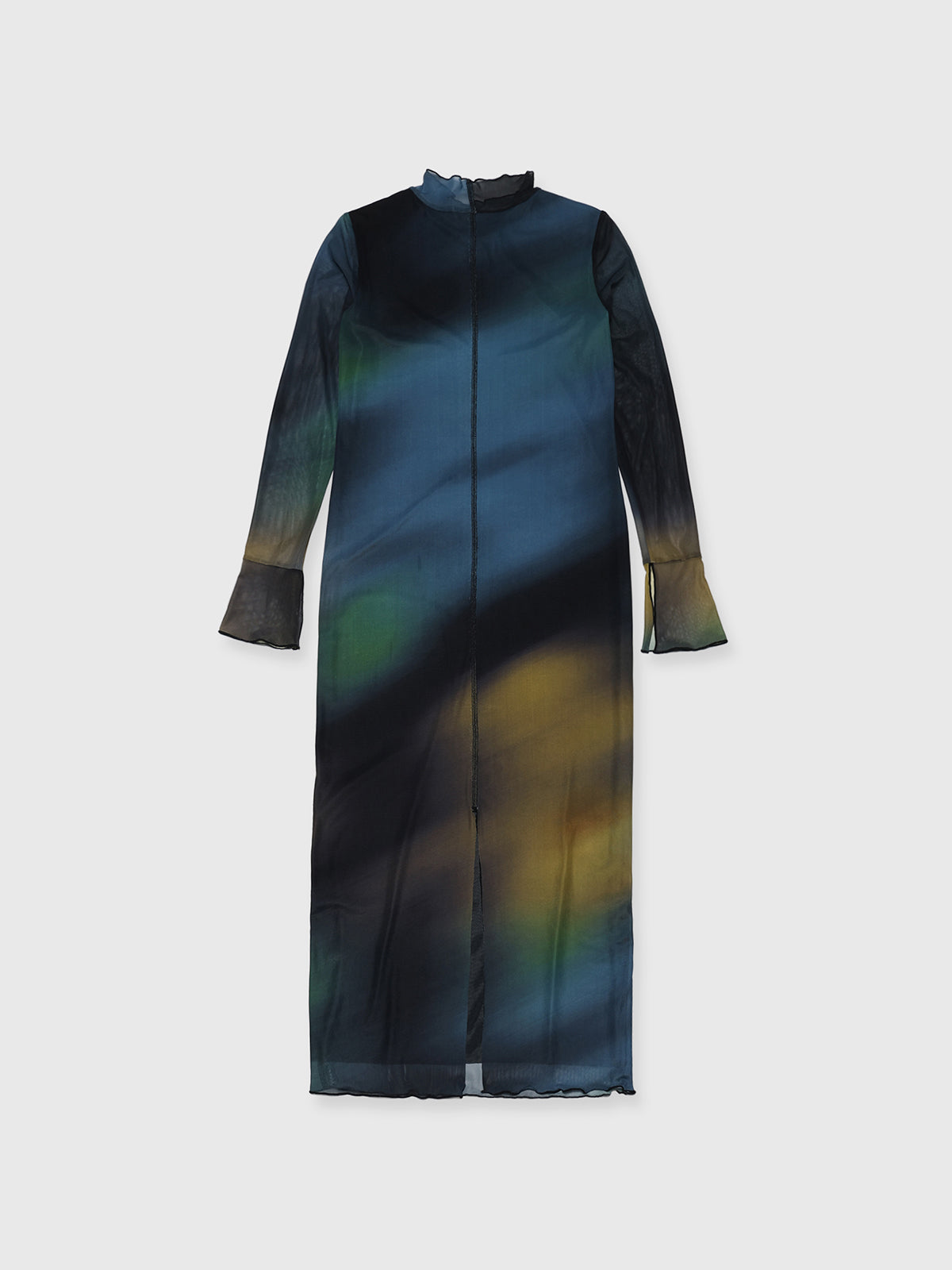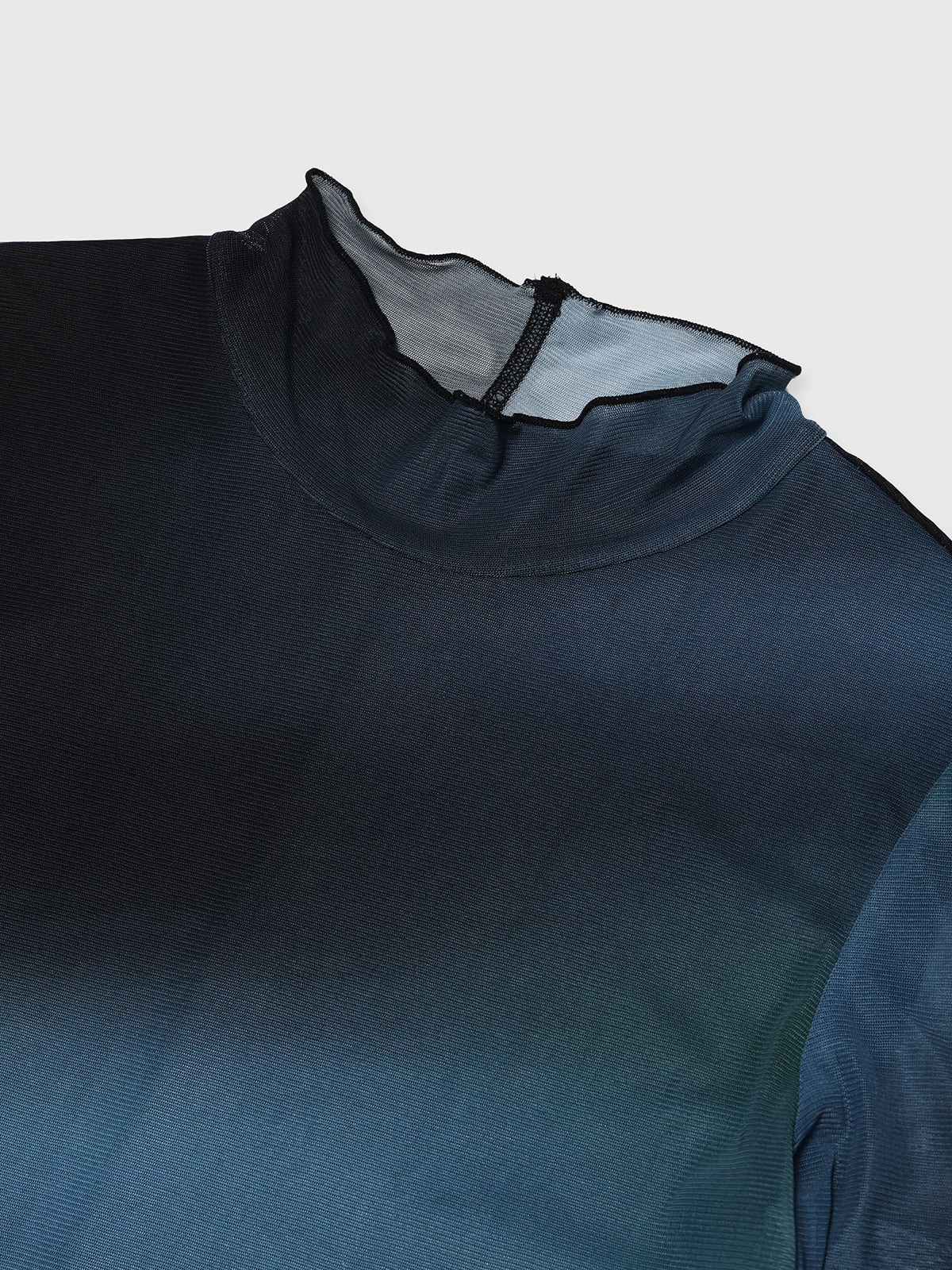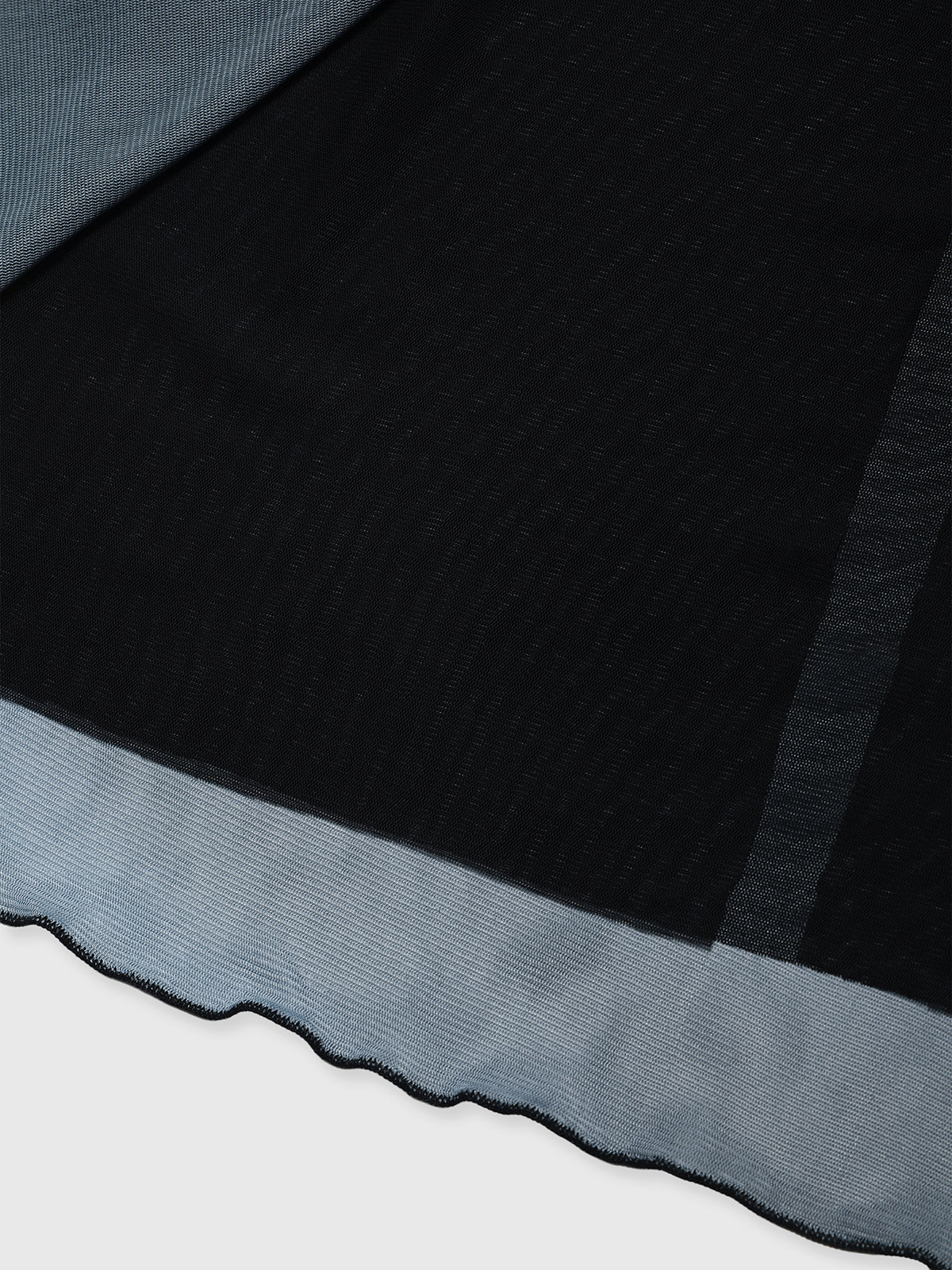 メッシュならではの繊細な透け感がスタイリングにニュアンスをプラスし、アウターのインナーとしても存在感を発揮する一枚です。