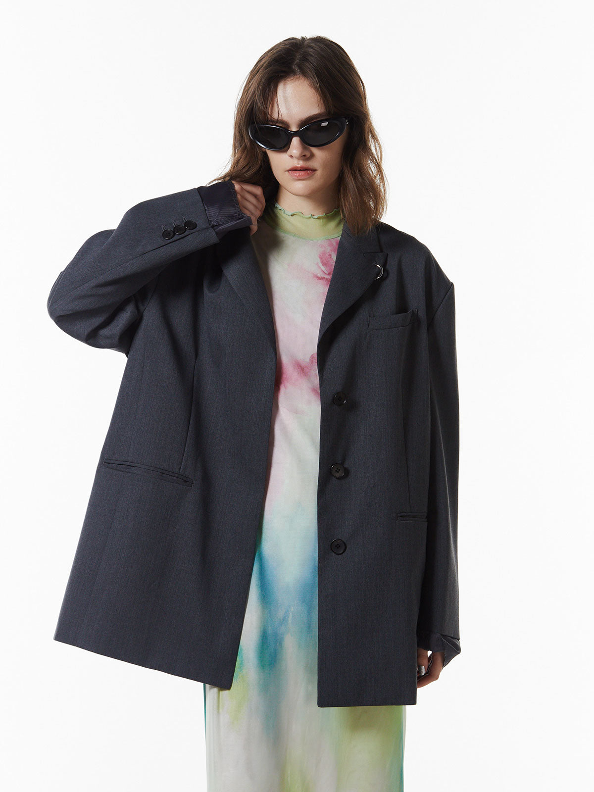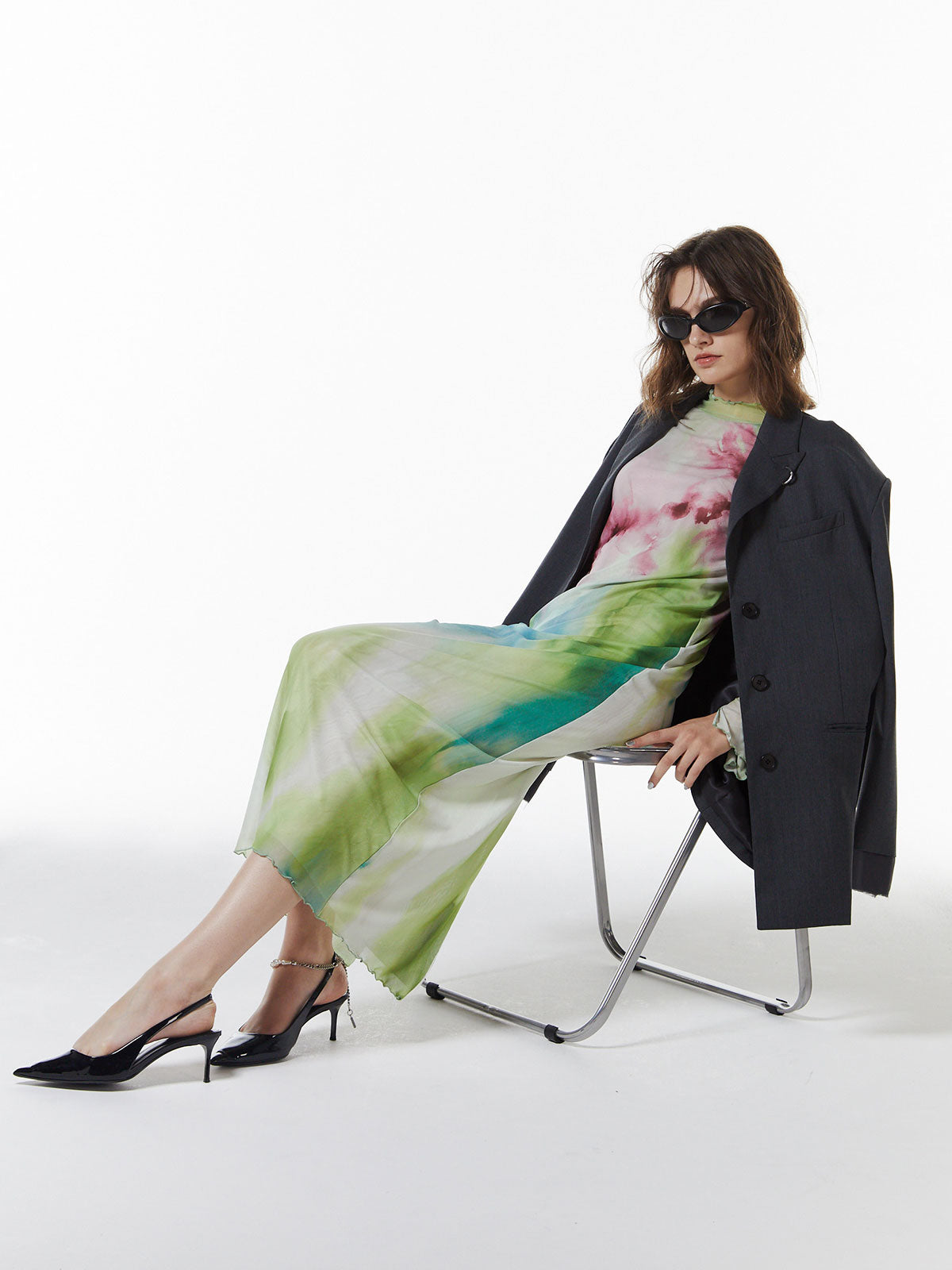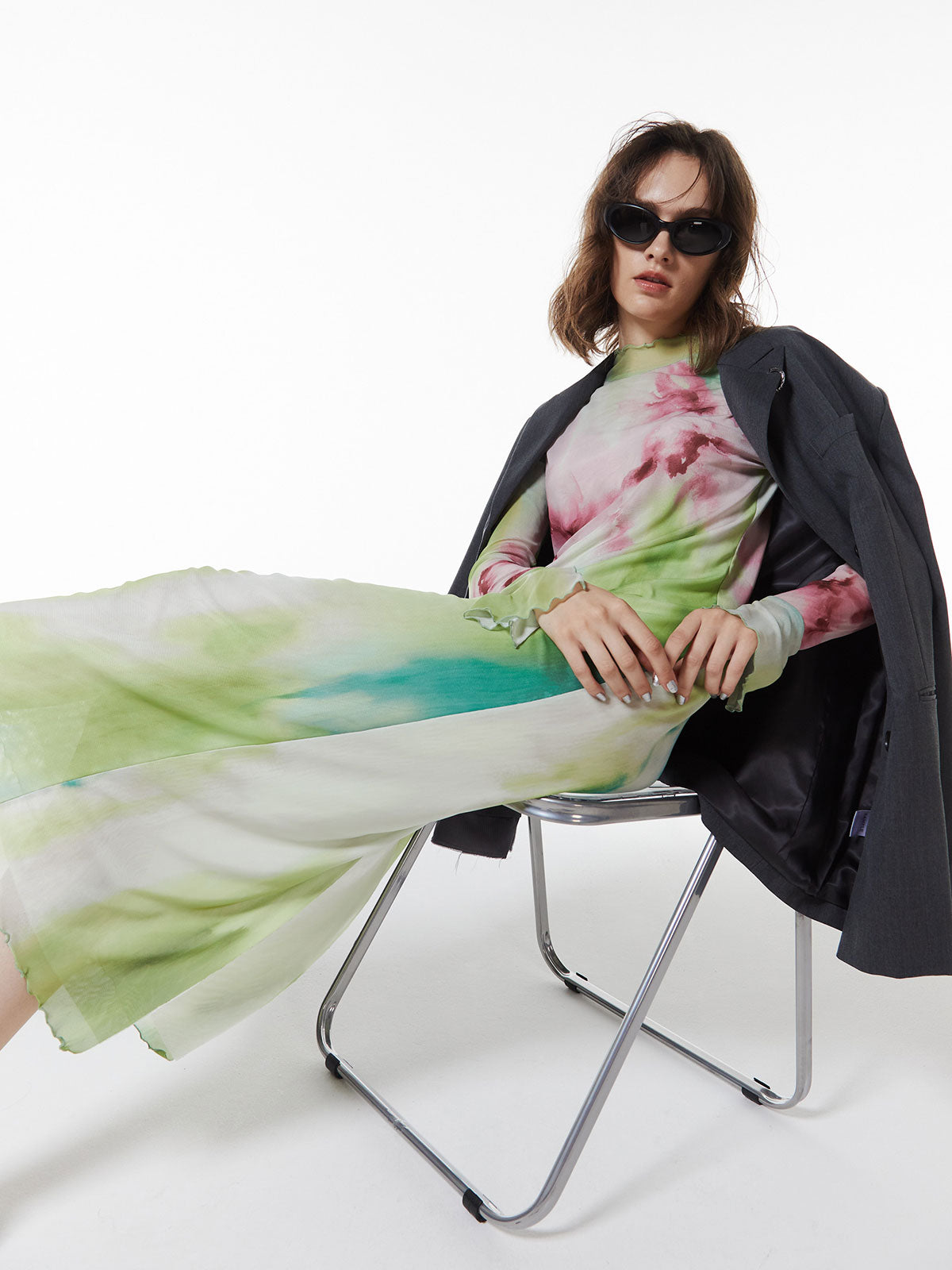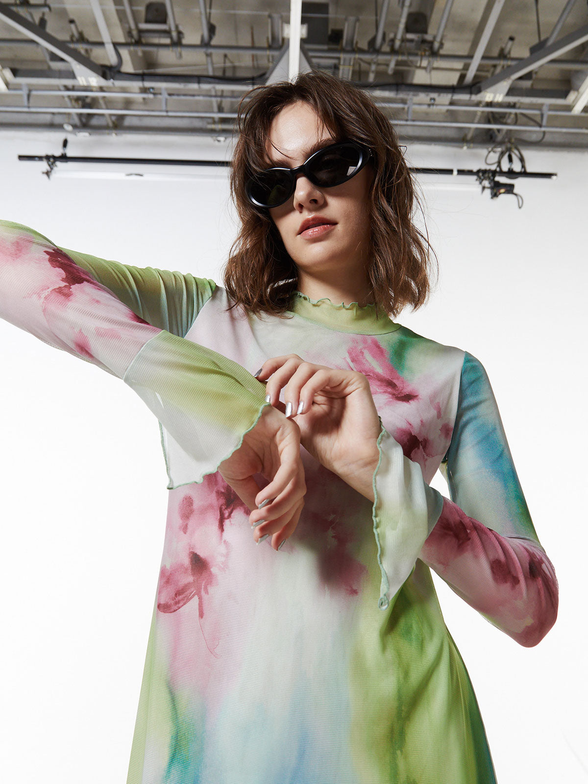 メッシュならではの繊細な透け感がスタイリングにニュアンスをプラスし、アウターのインナーとしても存在感を発揮する一枚です。