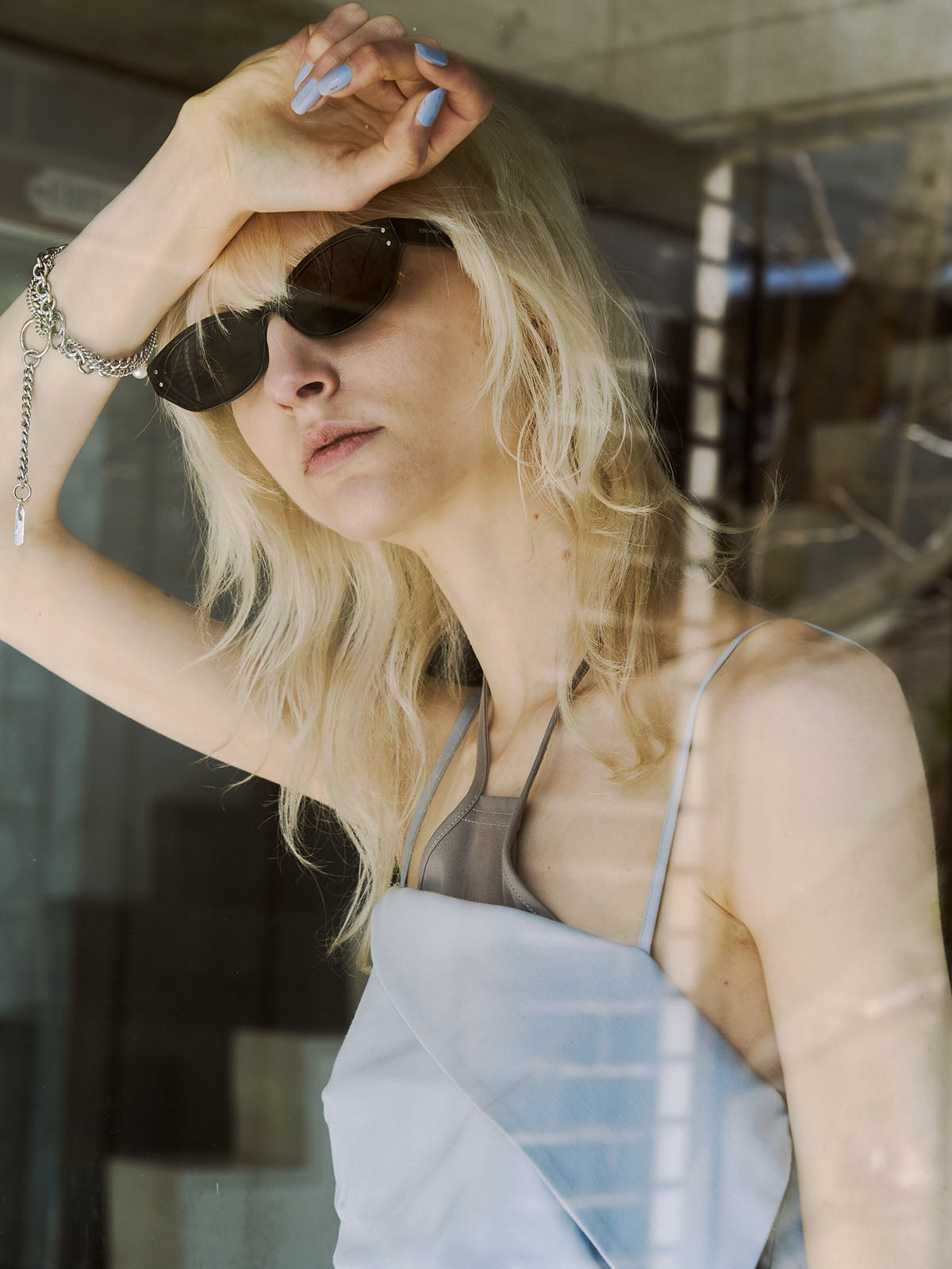 バイカラーで仕上げたブラトップをレイヤードして着用でき、スタイリングに奥行きをプラス。