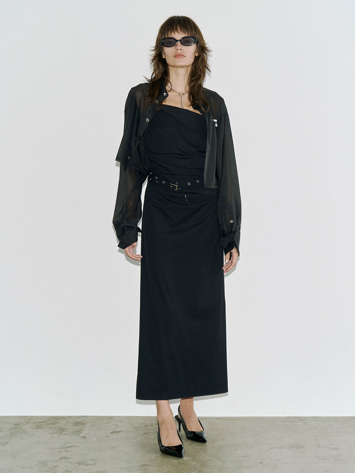 共生地で作成したベルトもセットになっておりウエストマークでシルエットの変化も楽しめます。