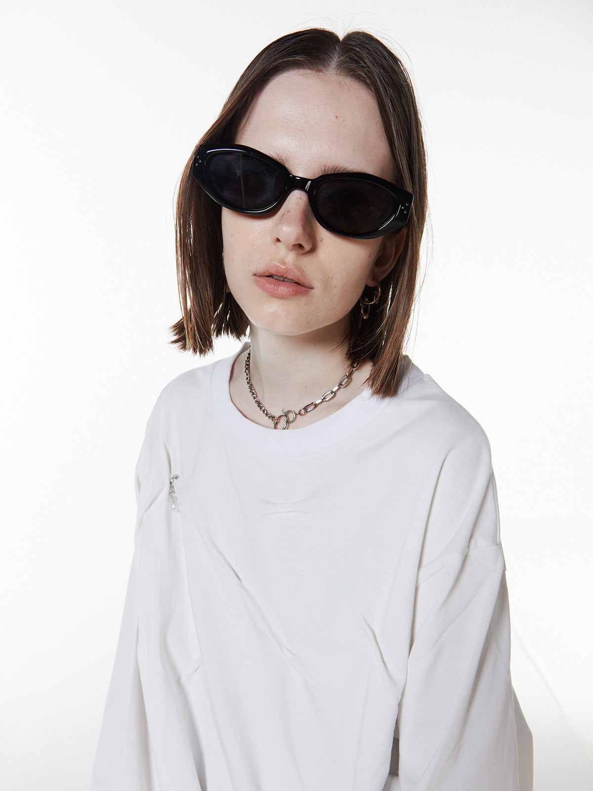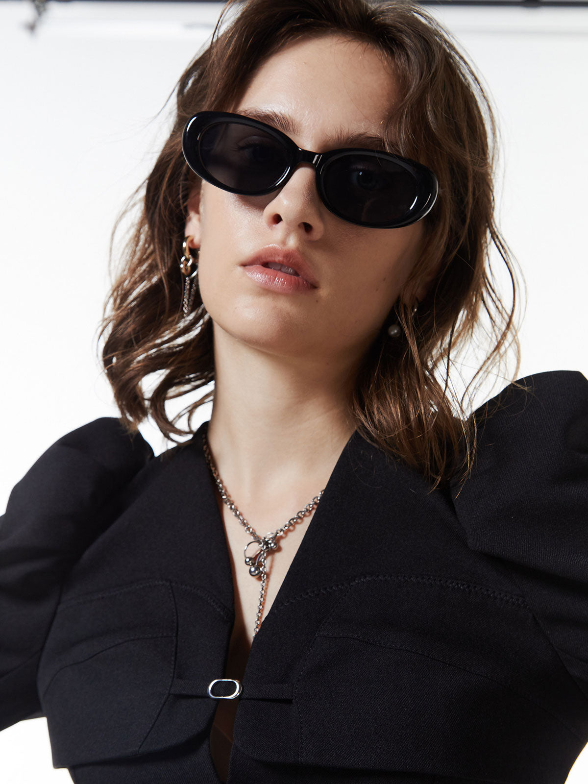 クラシックなオーバル型を、存在感のある太めリムでモダンにアップデート。
