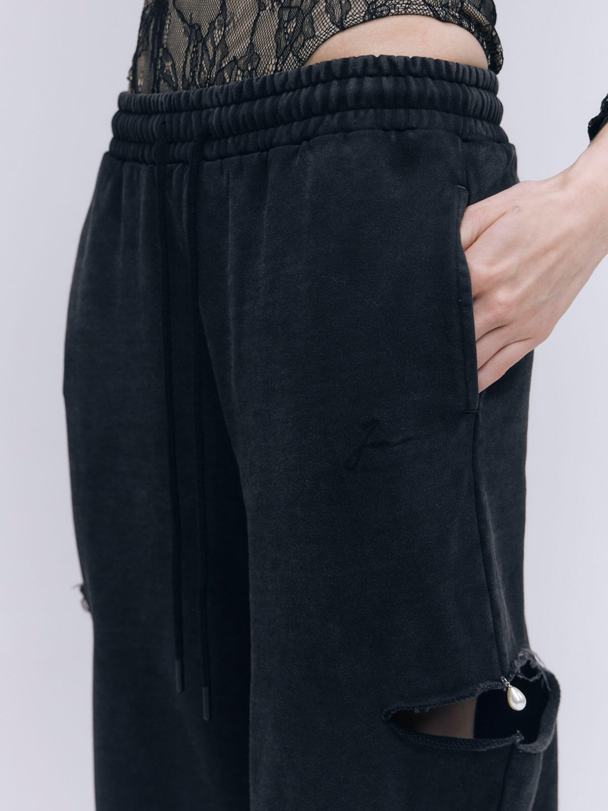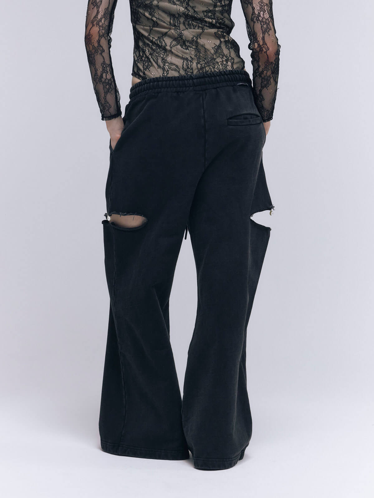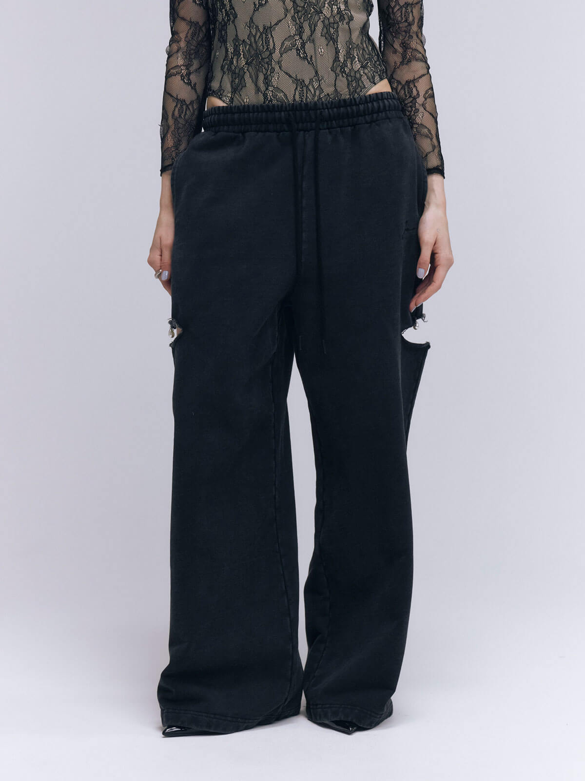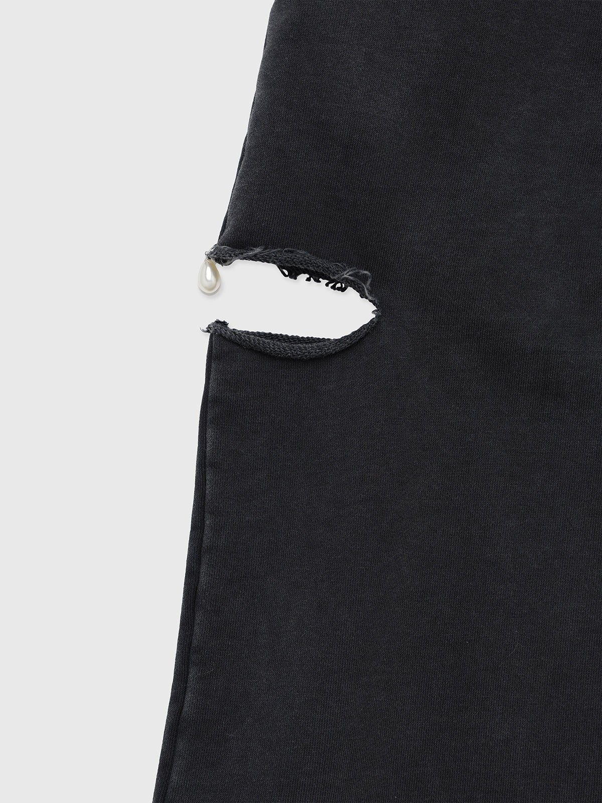 ブラックのスウェットに加工を施しさらに色落ちを加えたヴンテージライクな1本。