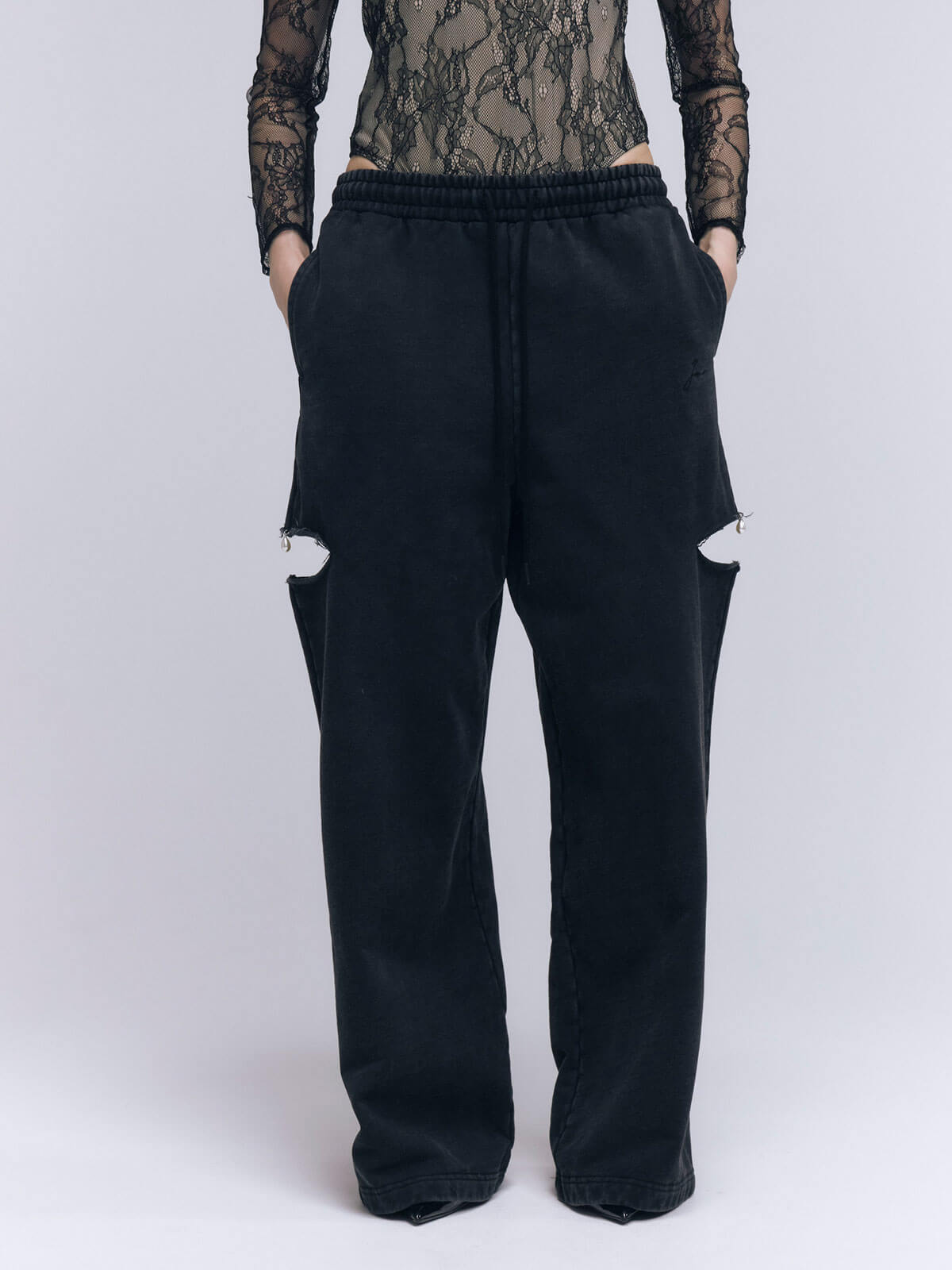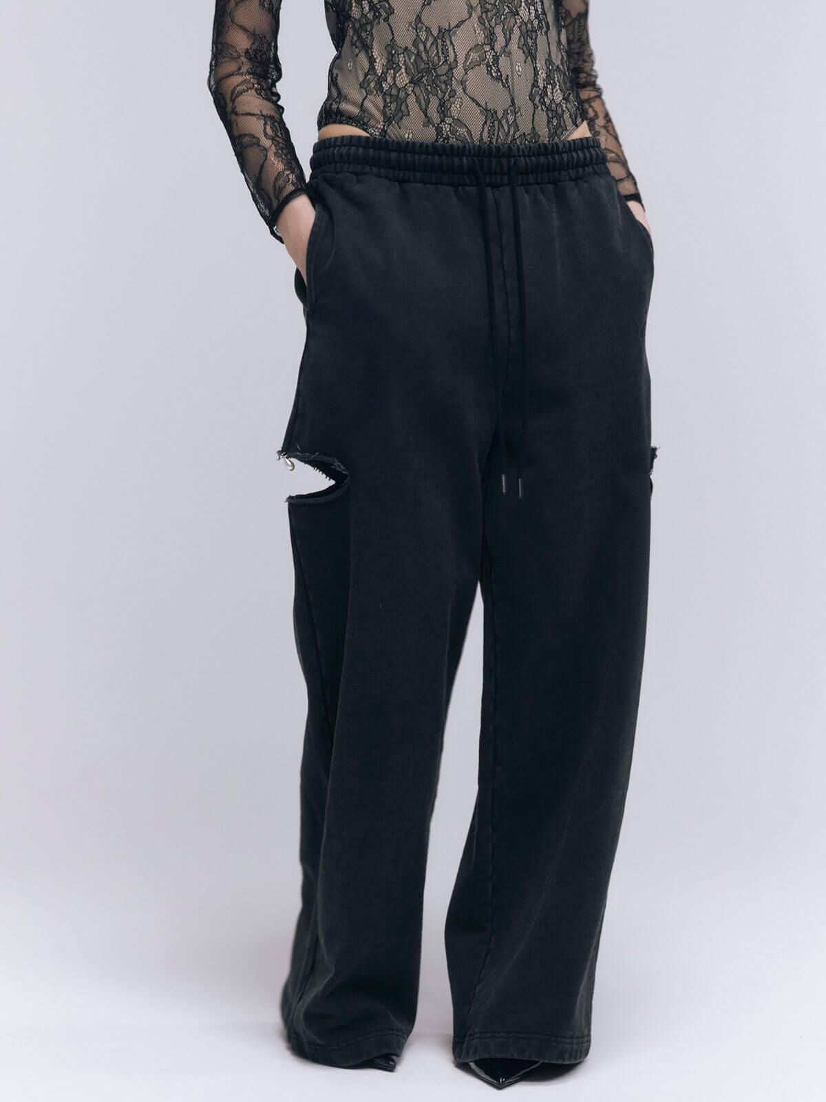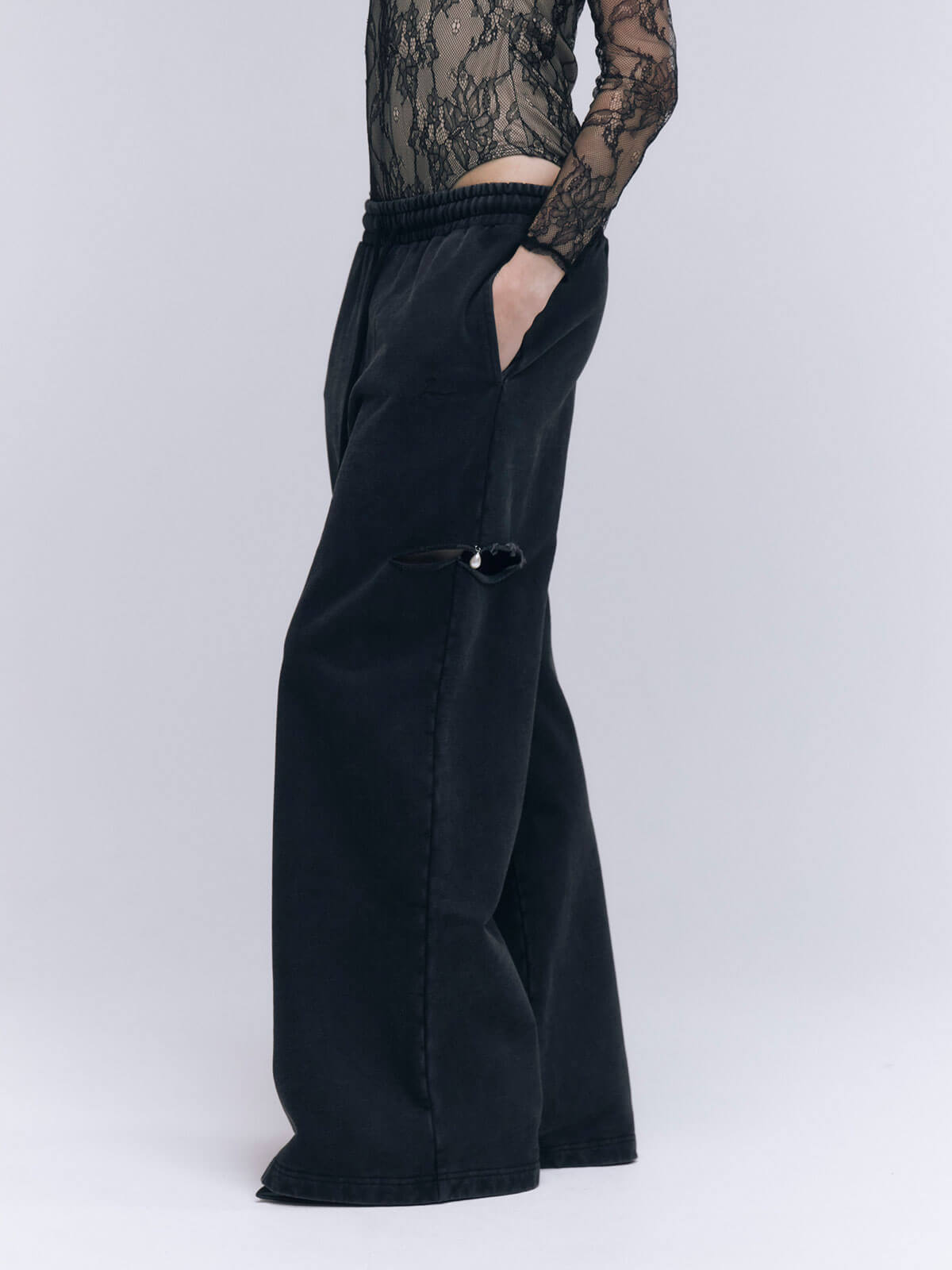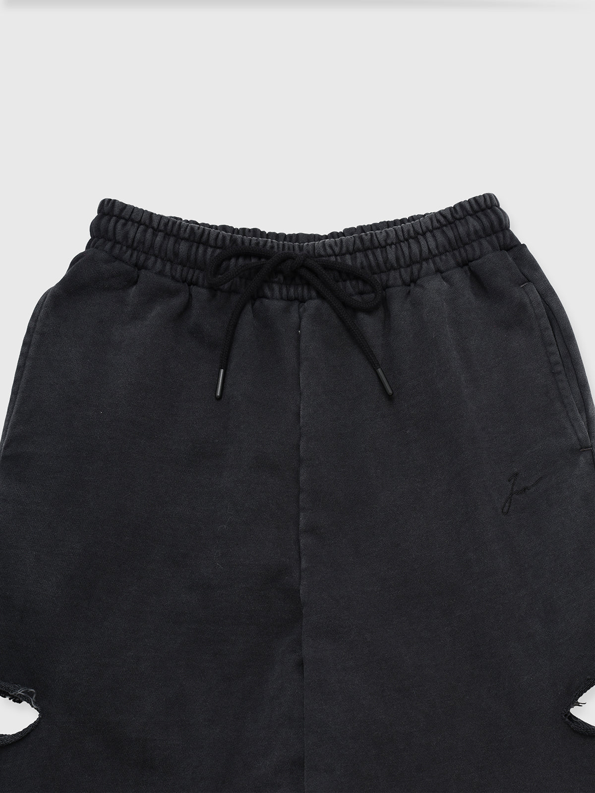 ブラックのスウェットに加工を施しさらに色落ちを加えたヴンテージライクな1本。