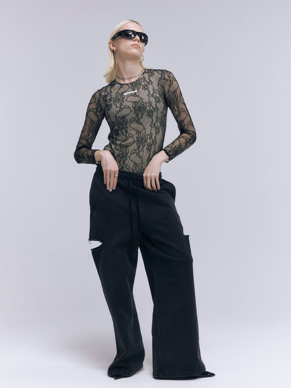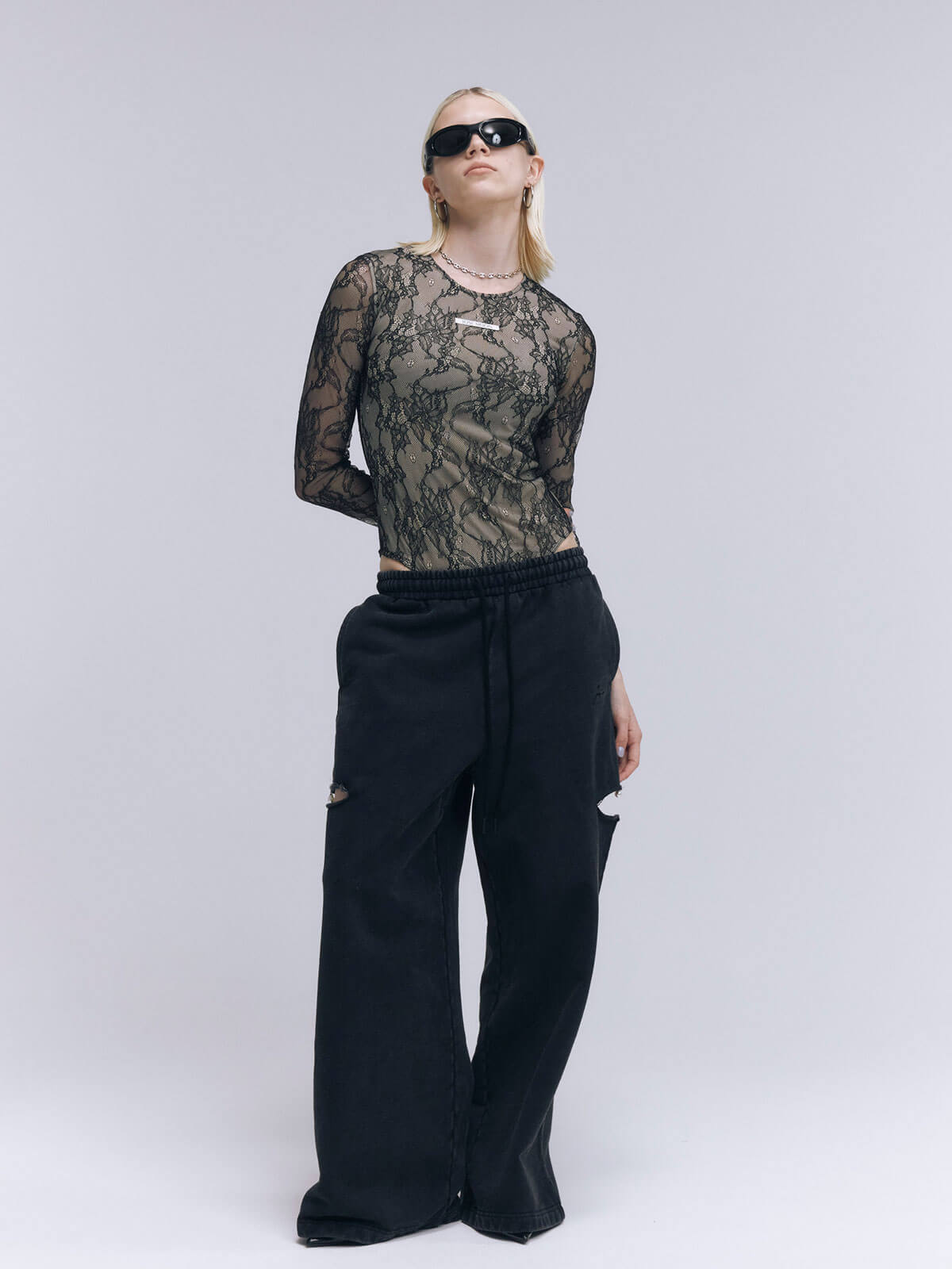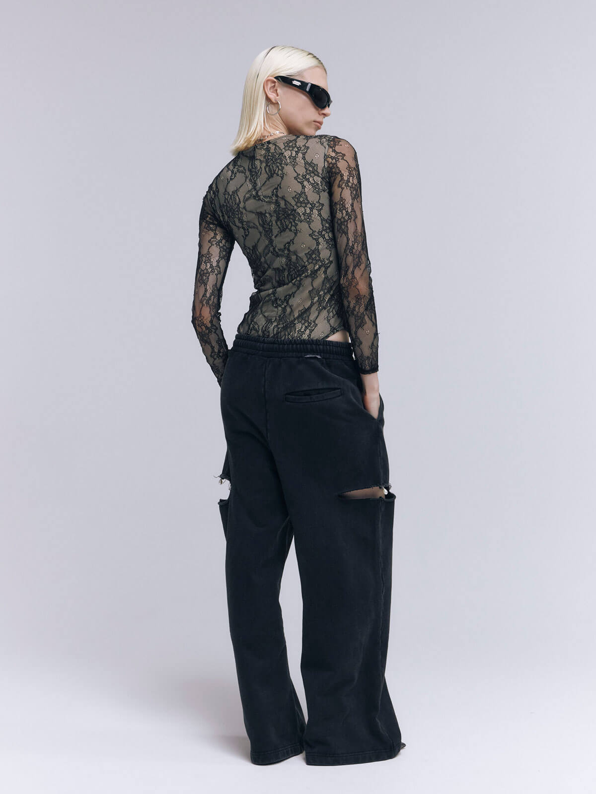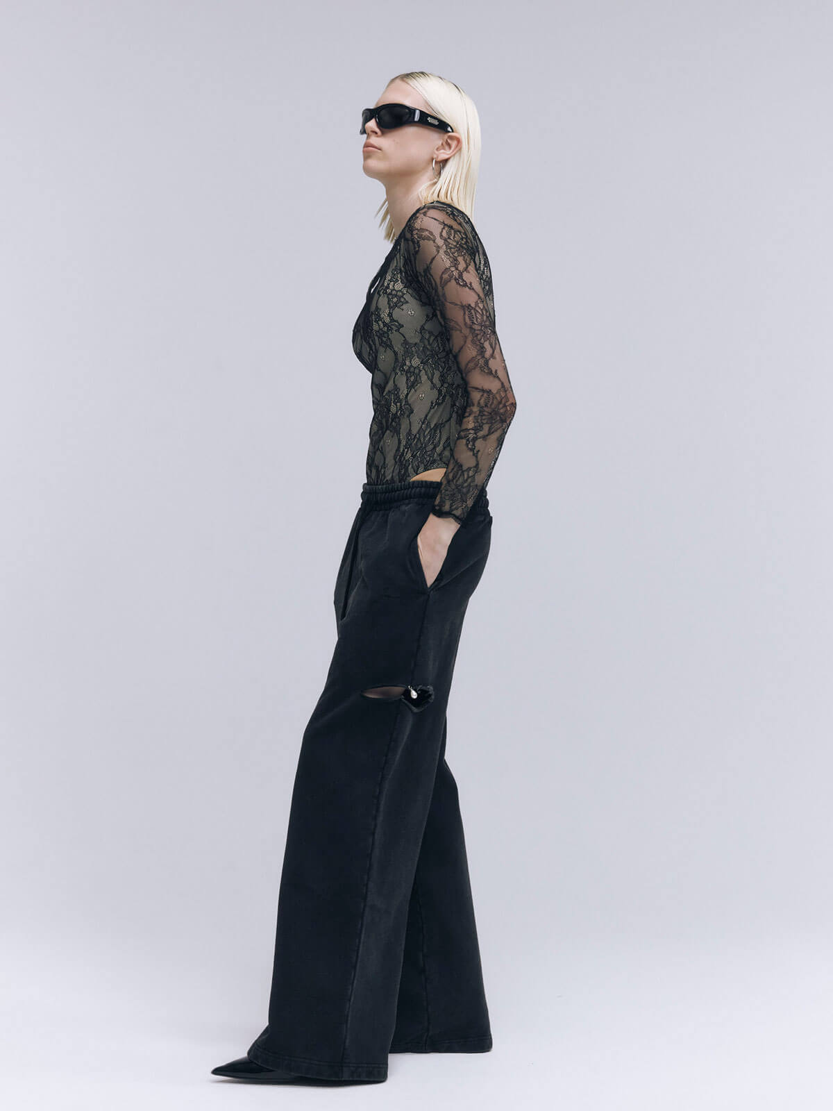 ブラックのスウェットに加工を施しさらに色落ちを加えたヴンテージライクな1本。