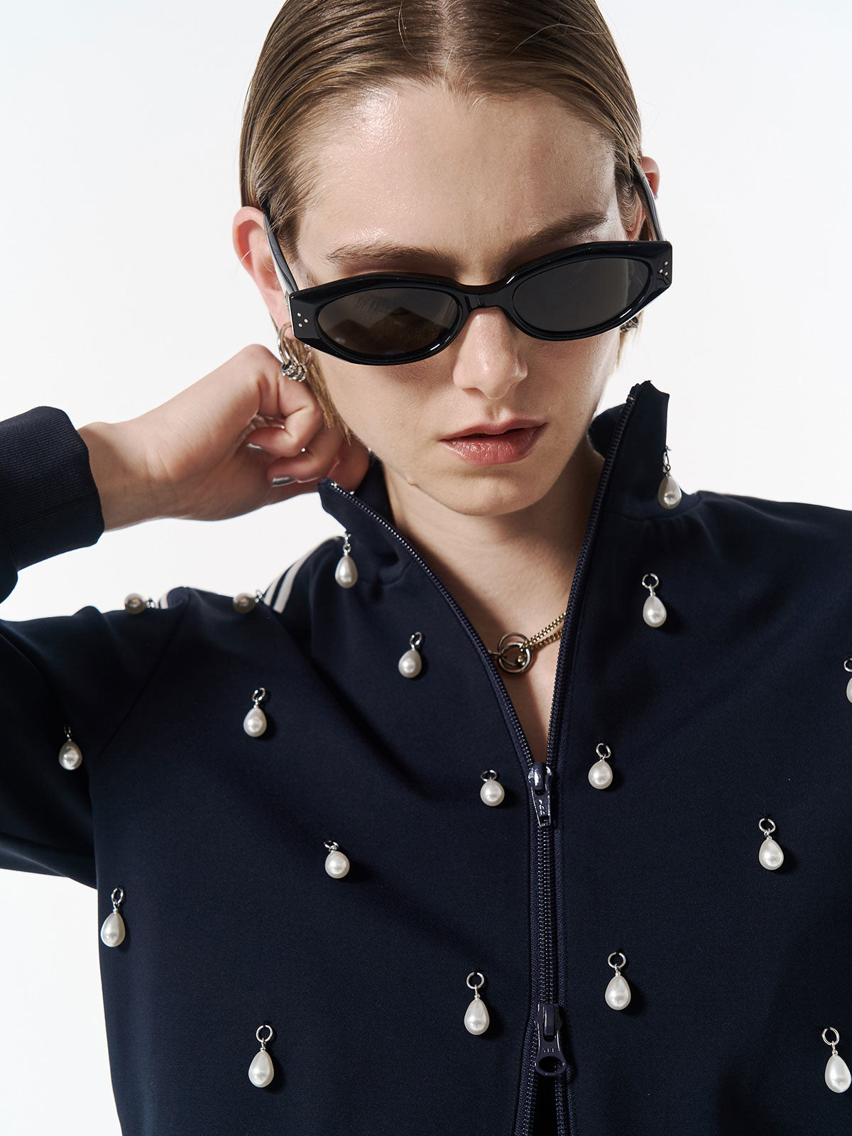 トレンド感のあるジャージーを、JOSEMOONらしいモードなデザインに仕上げたトップス。