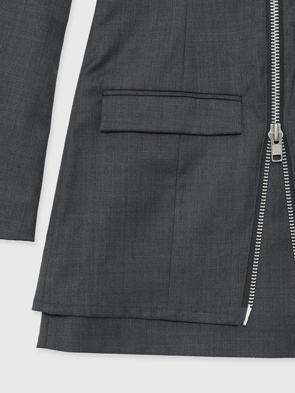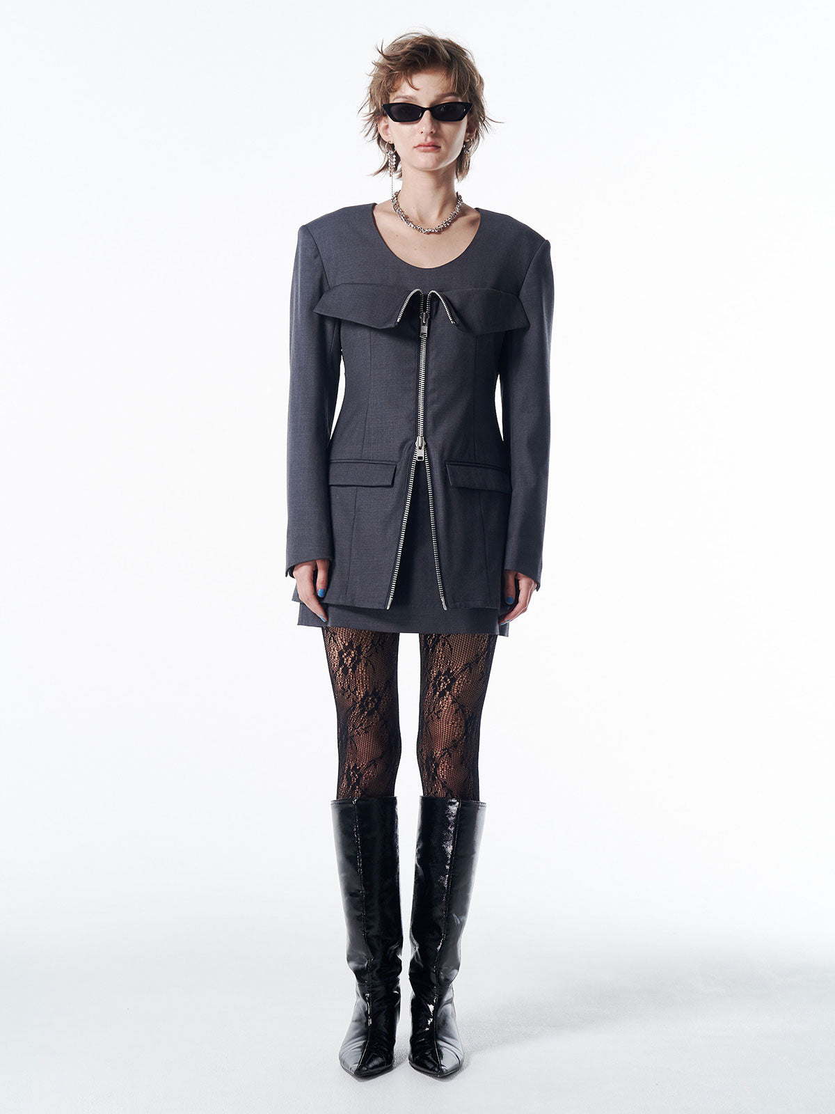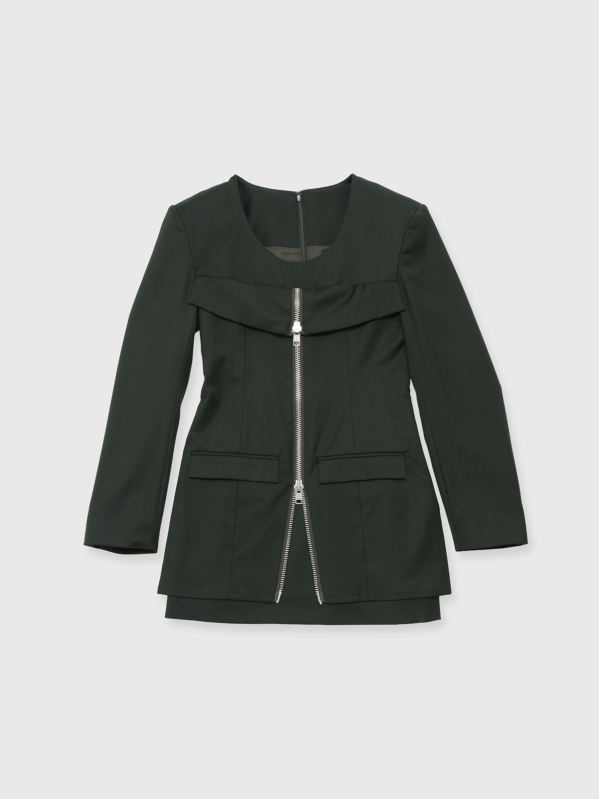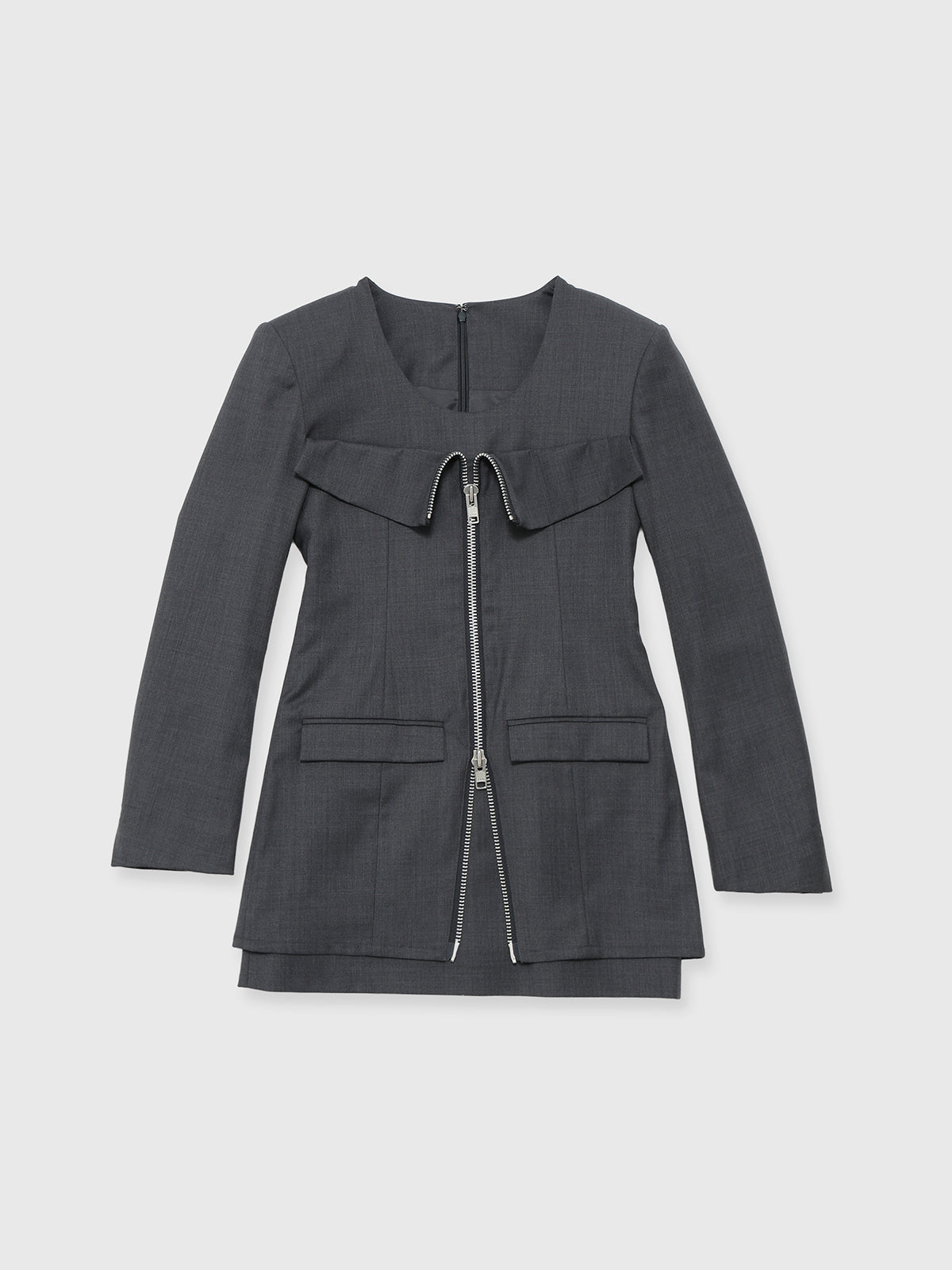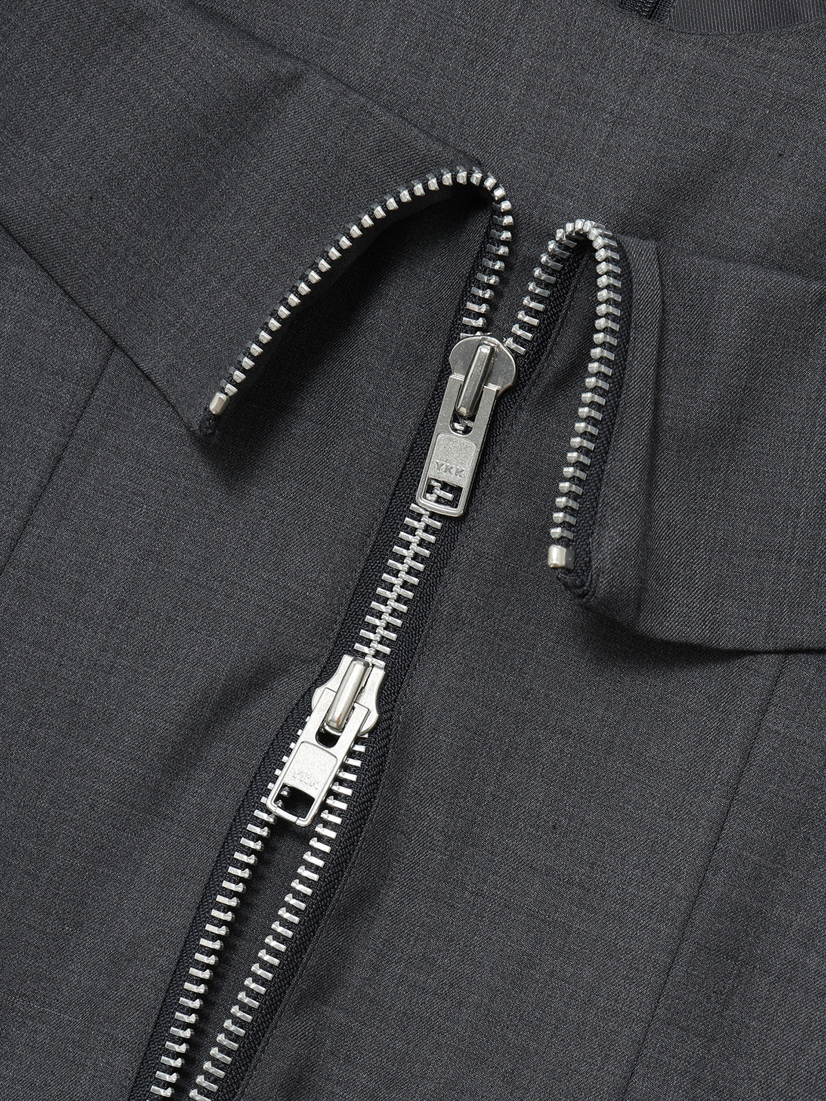 フロントに施したオーバーサイズのジップがデザインポイント。