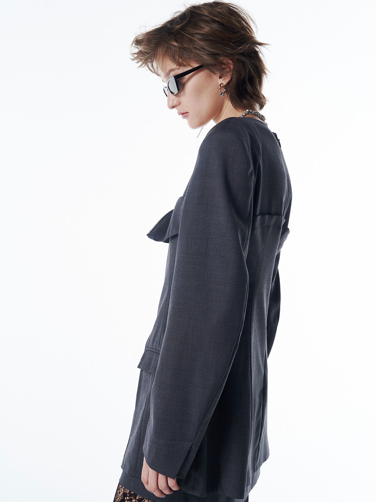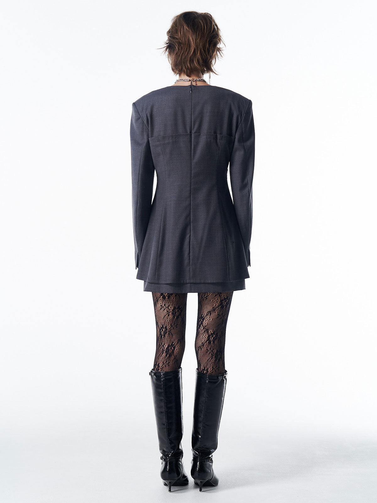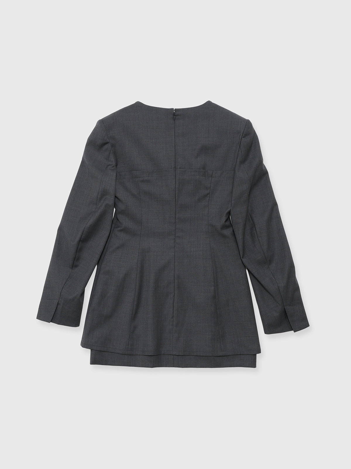 肩まわりはジャケットのようにかっちりと仕上げ、レイヤードしているような立体的なシルエットを演出。