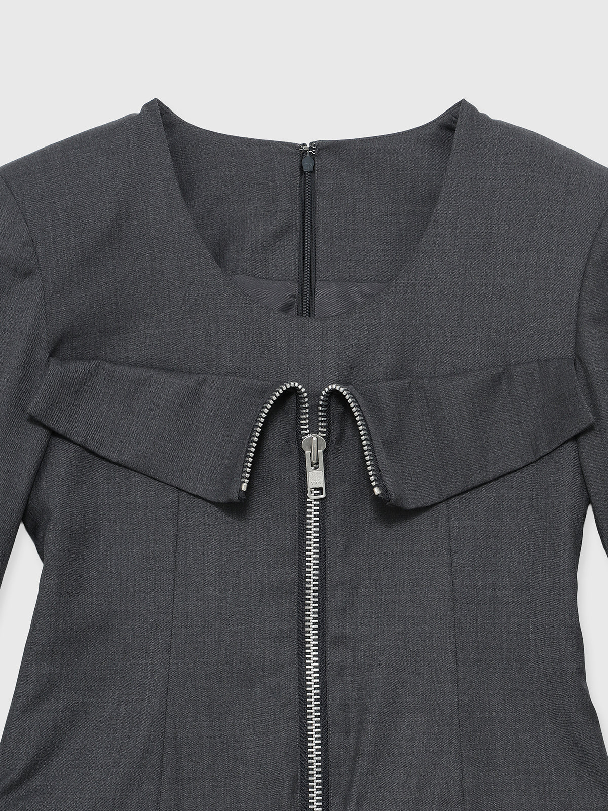梳毛素材を使用した、構築的なフォルムが印象的なミニワンピース。