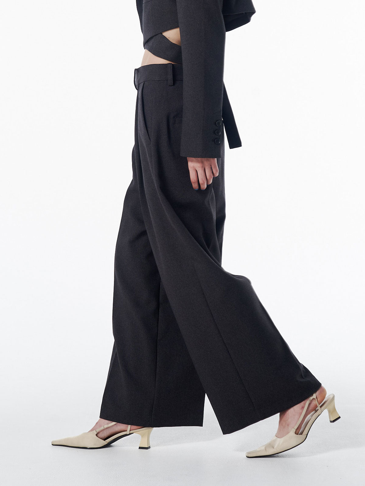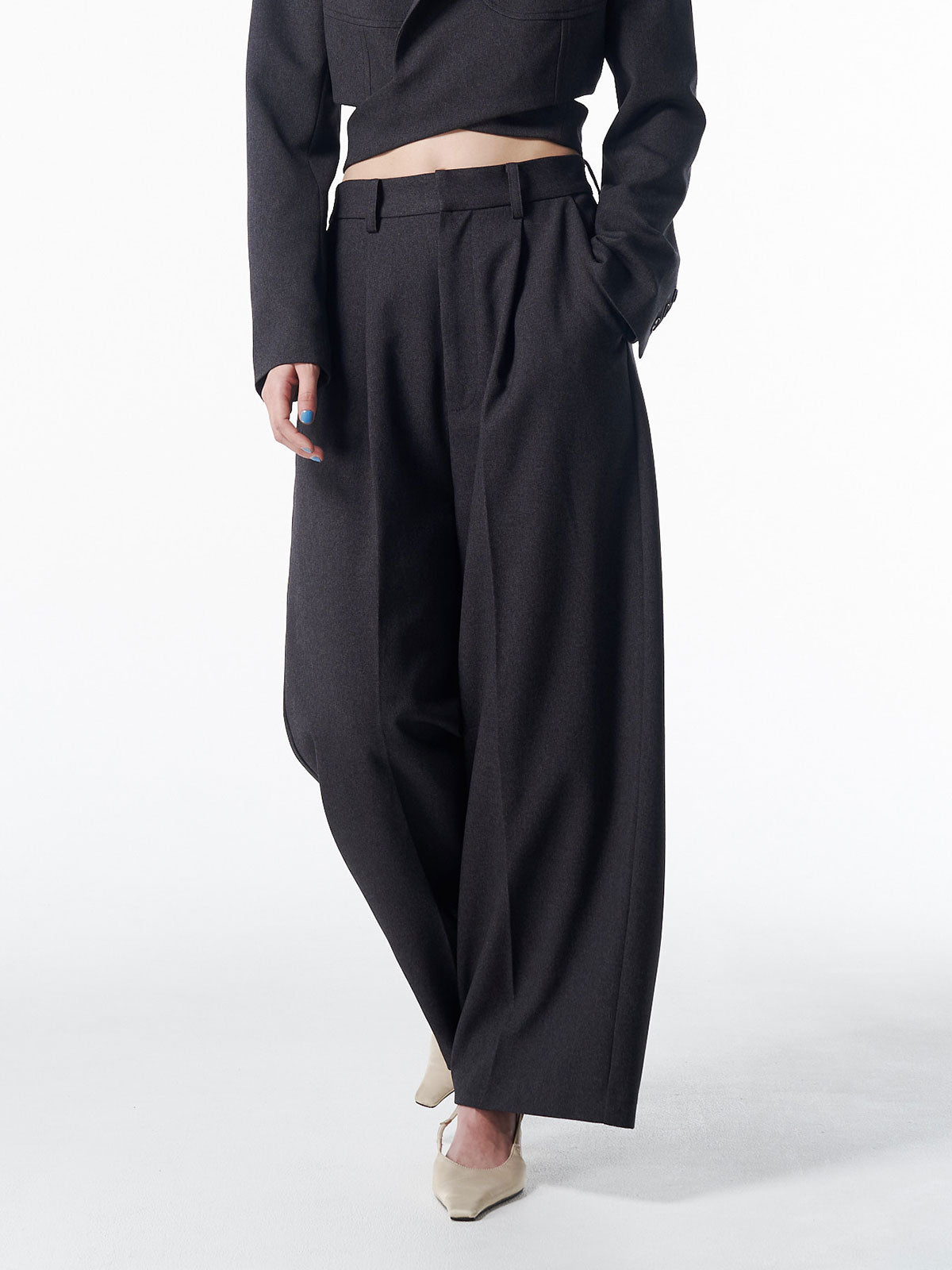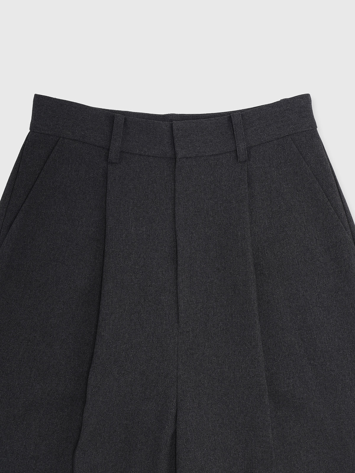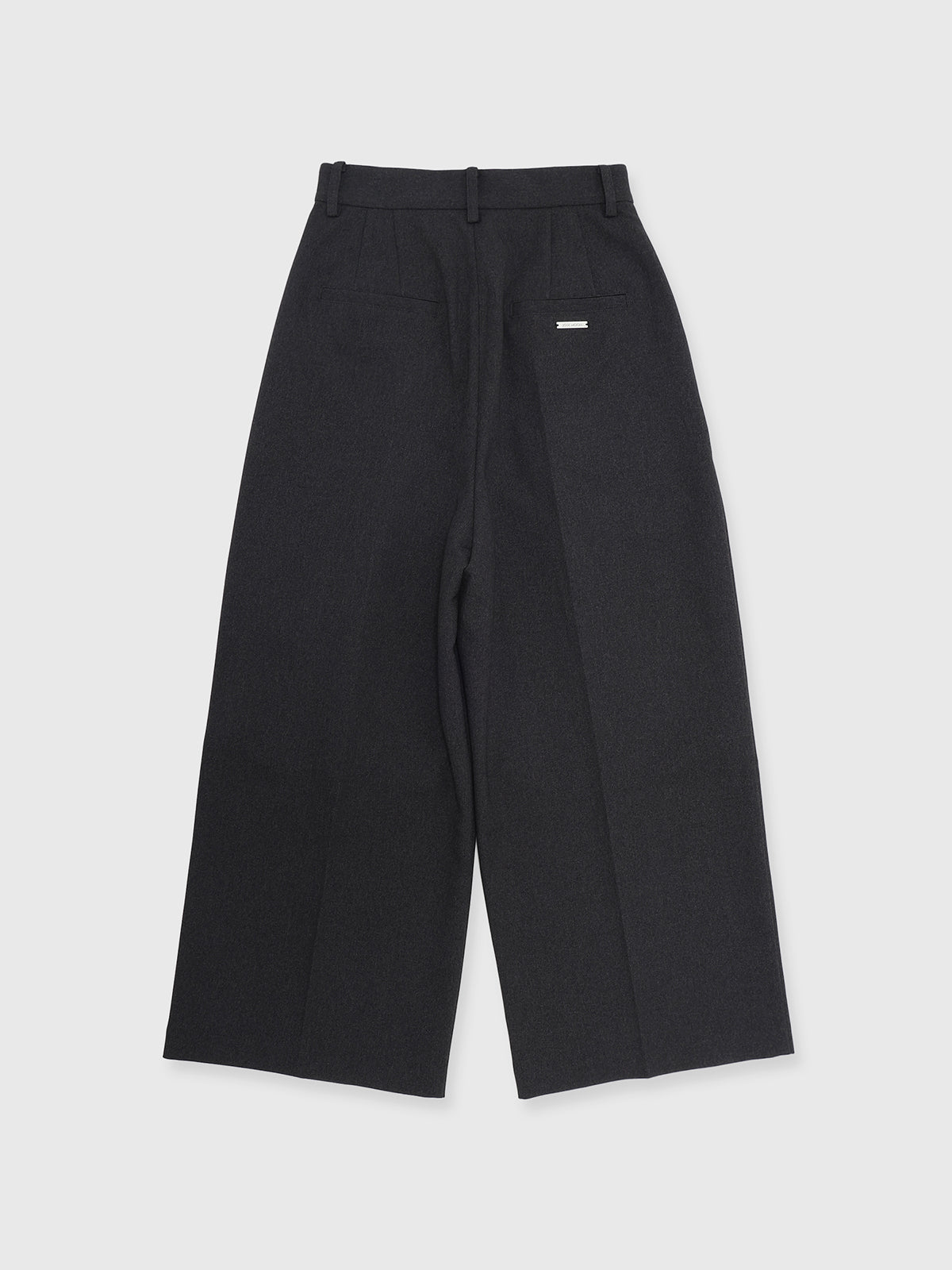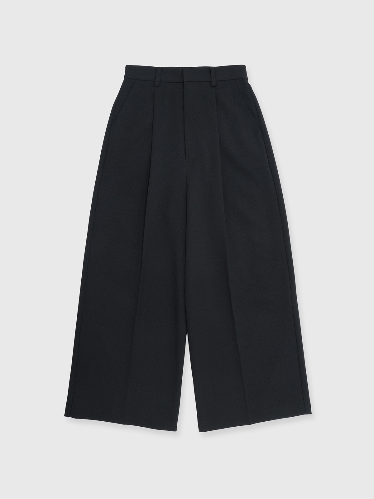 綿とポリエステルを絶妙なバランスで織り上げたこだわりの三重織ボンディング生地を使用したワイドパンツ。