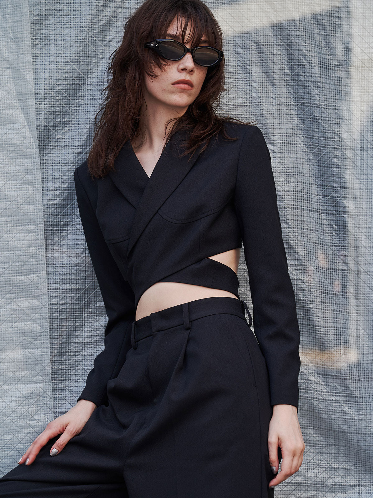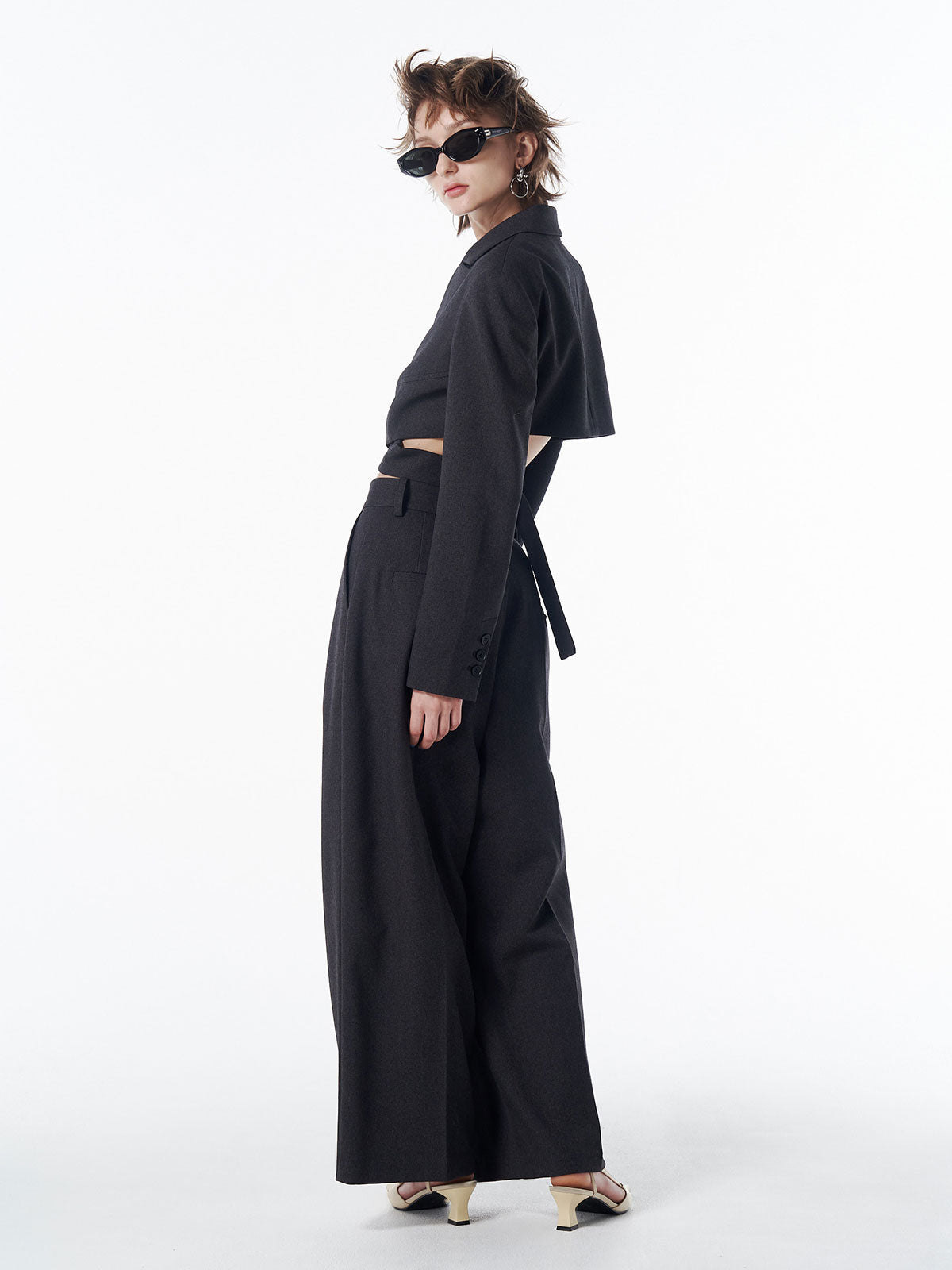 ウエスト周りは細やかなダーツ処理ですっきりした腰回りを実現しミニマルなデザインなのでコーディネートを選ばず万能な逸品です。