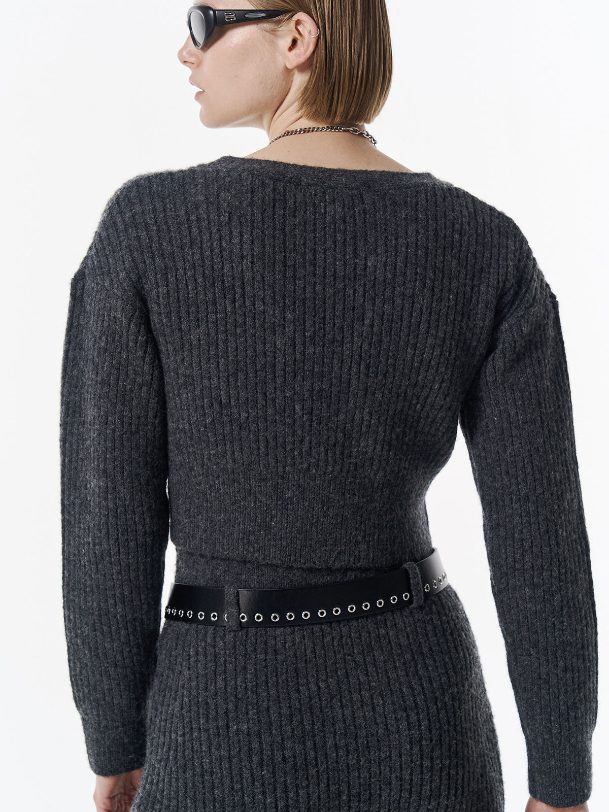 深めのVネックラインは顔周りをすっきりと美しく見せタートルネックやシャツとのスタイリングも綺麗に決まります。