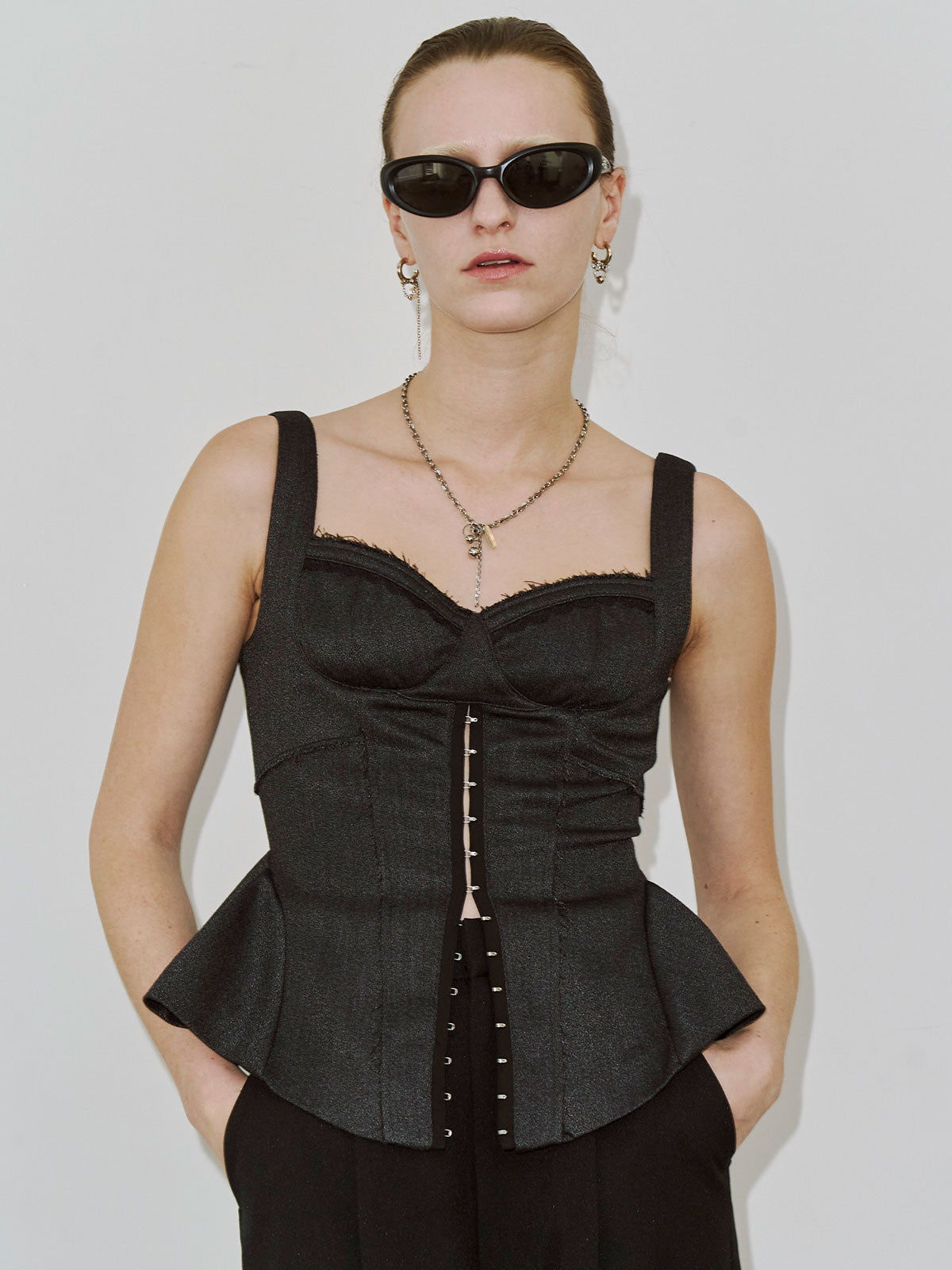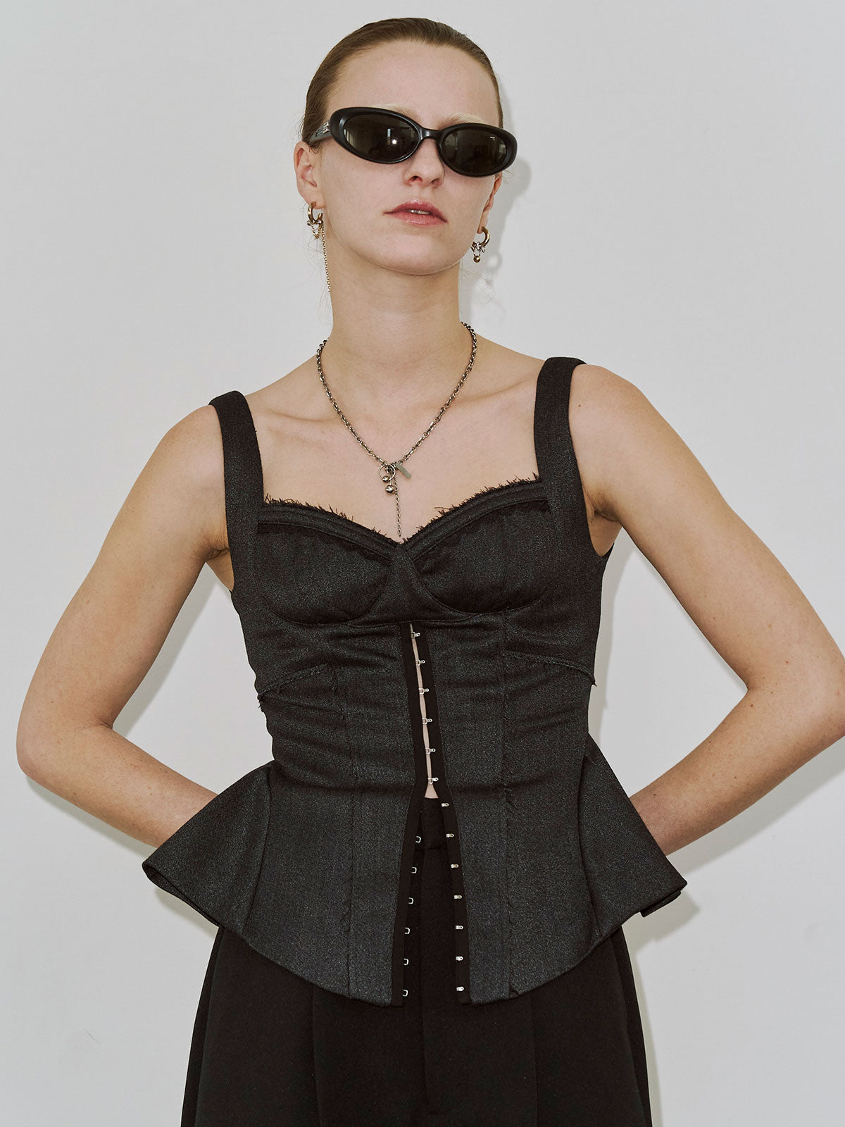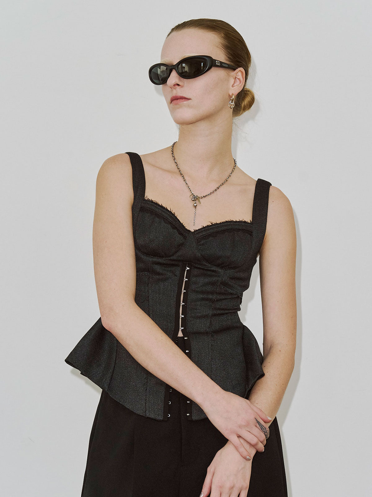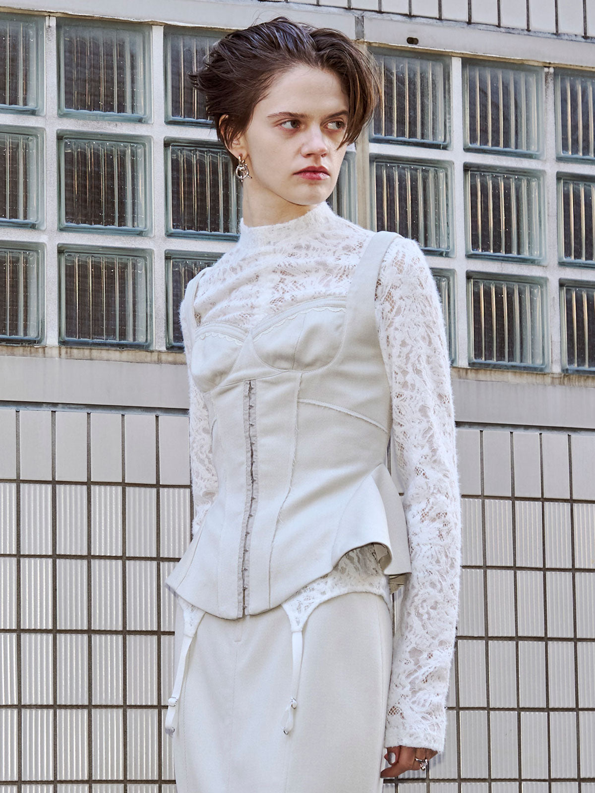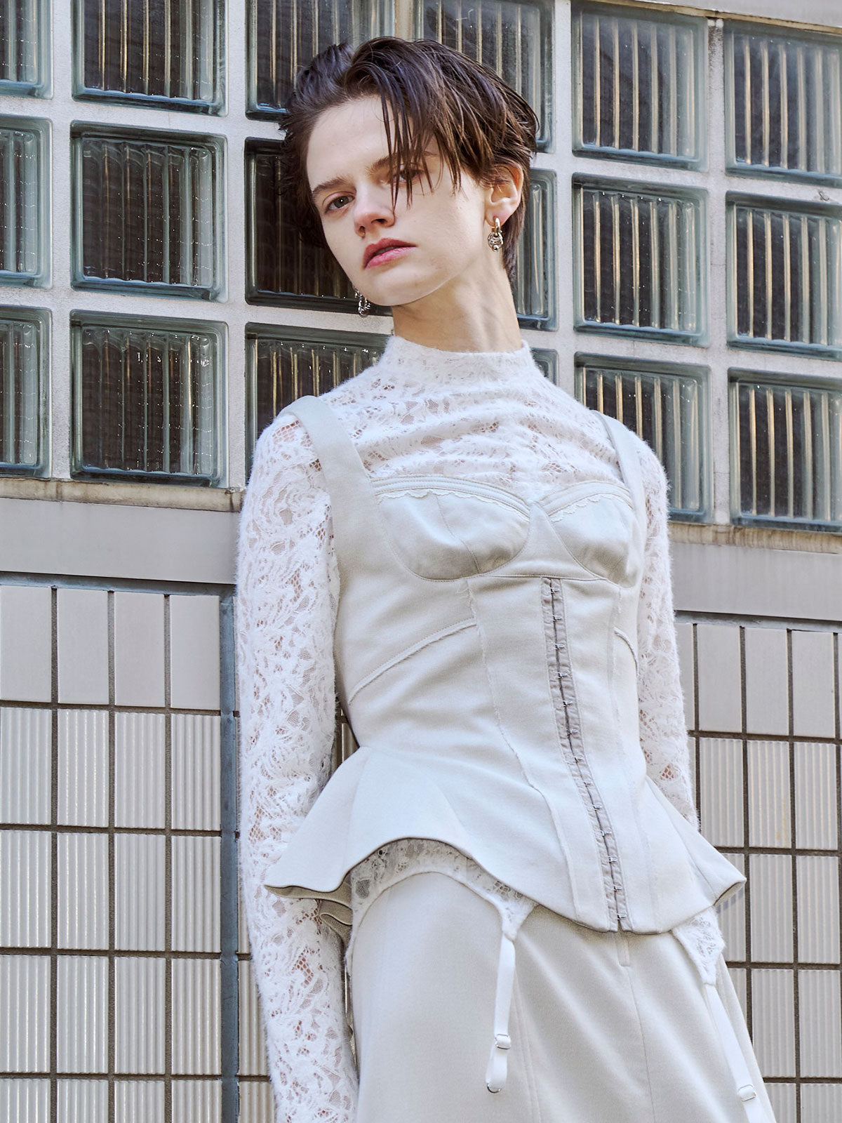 繊細なフェミニニティとエッジィなモード感が交差するペプラムビスチェは