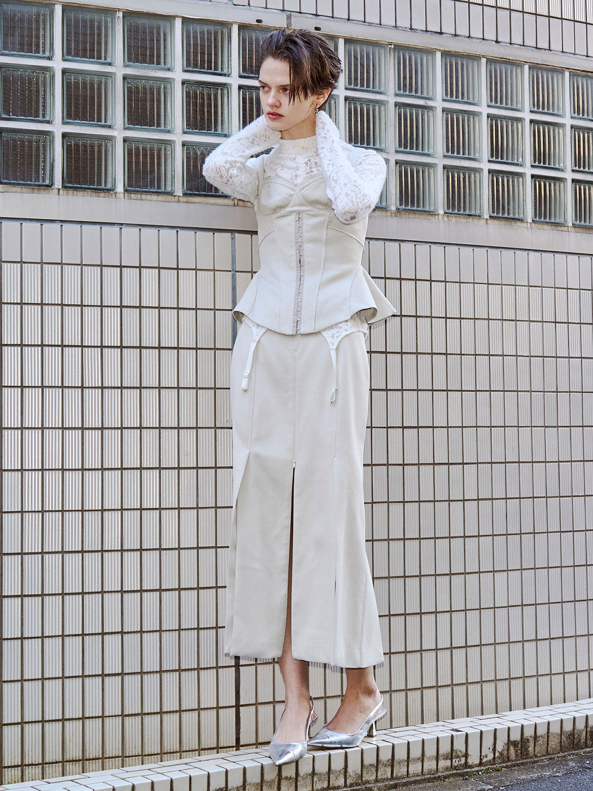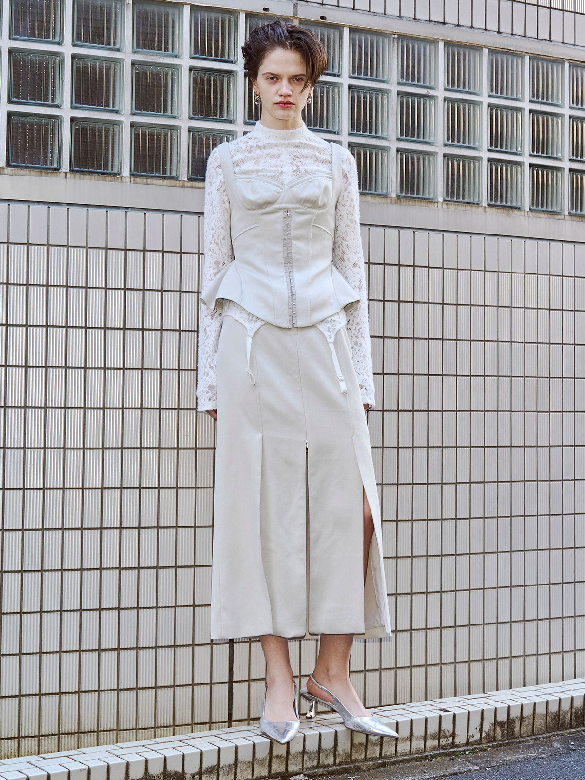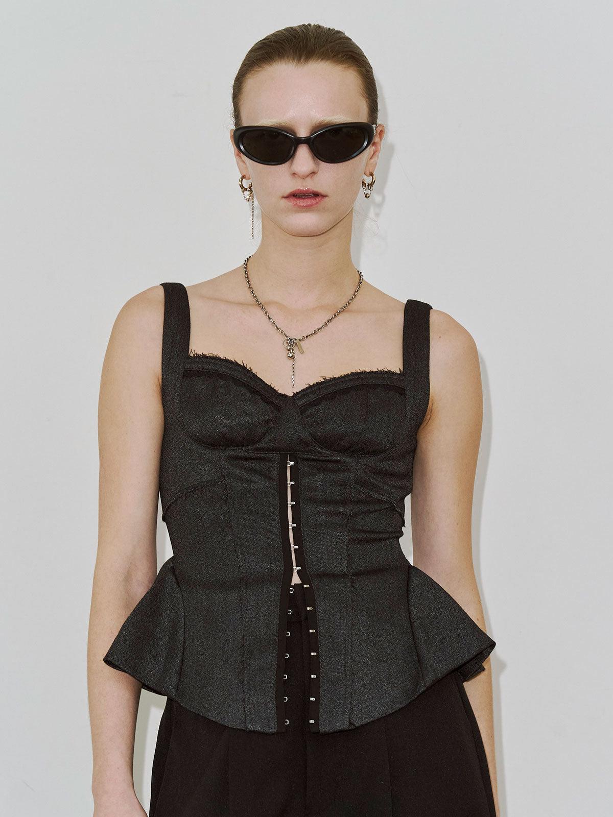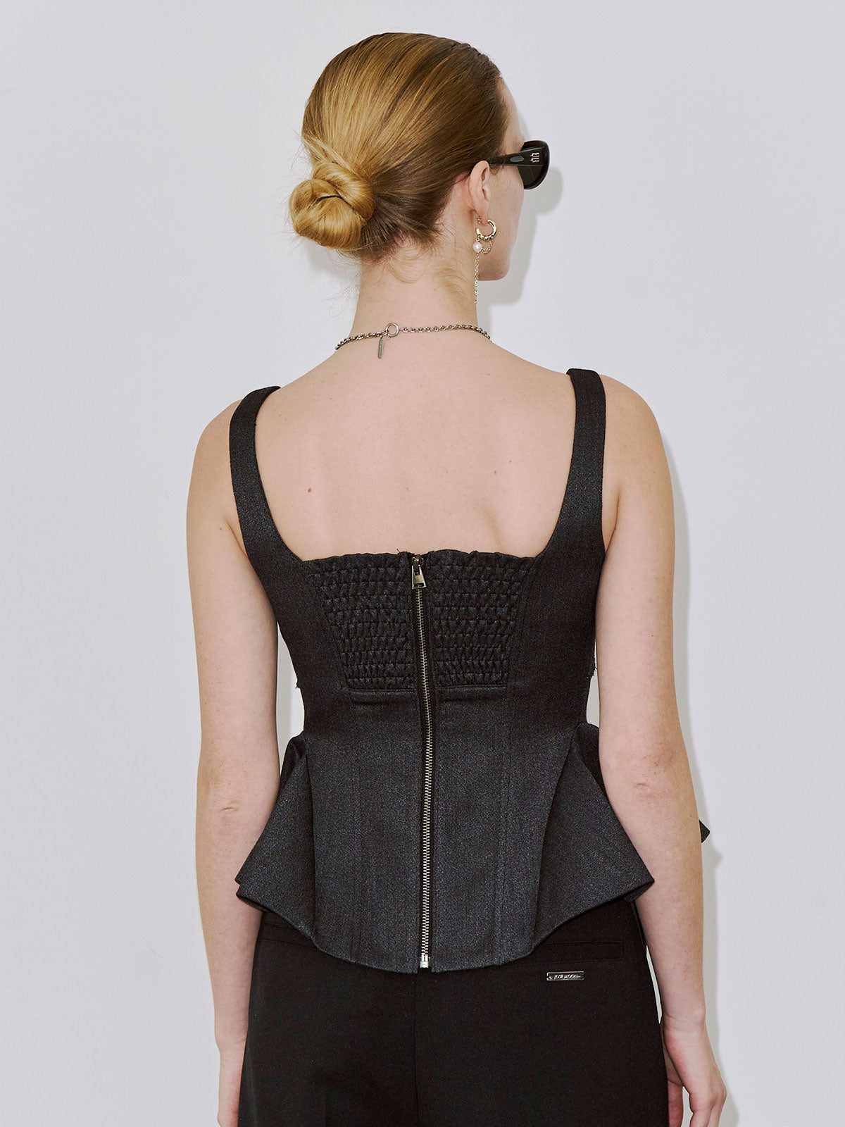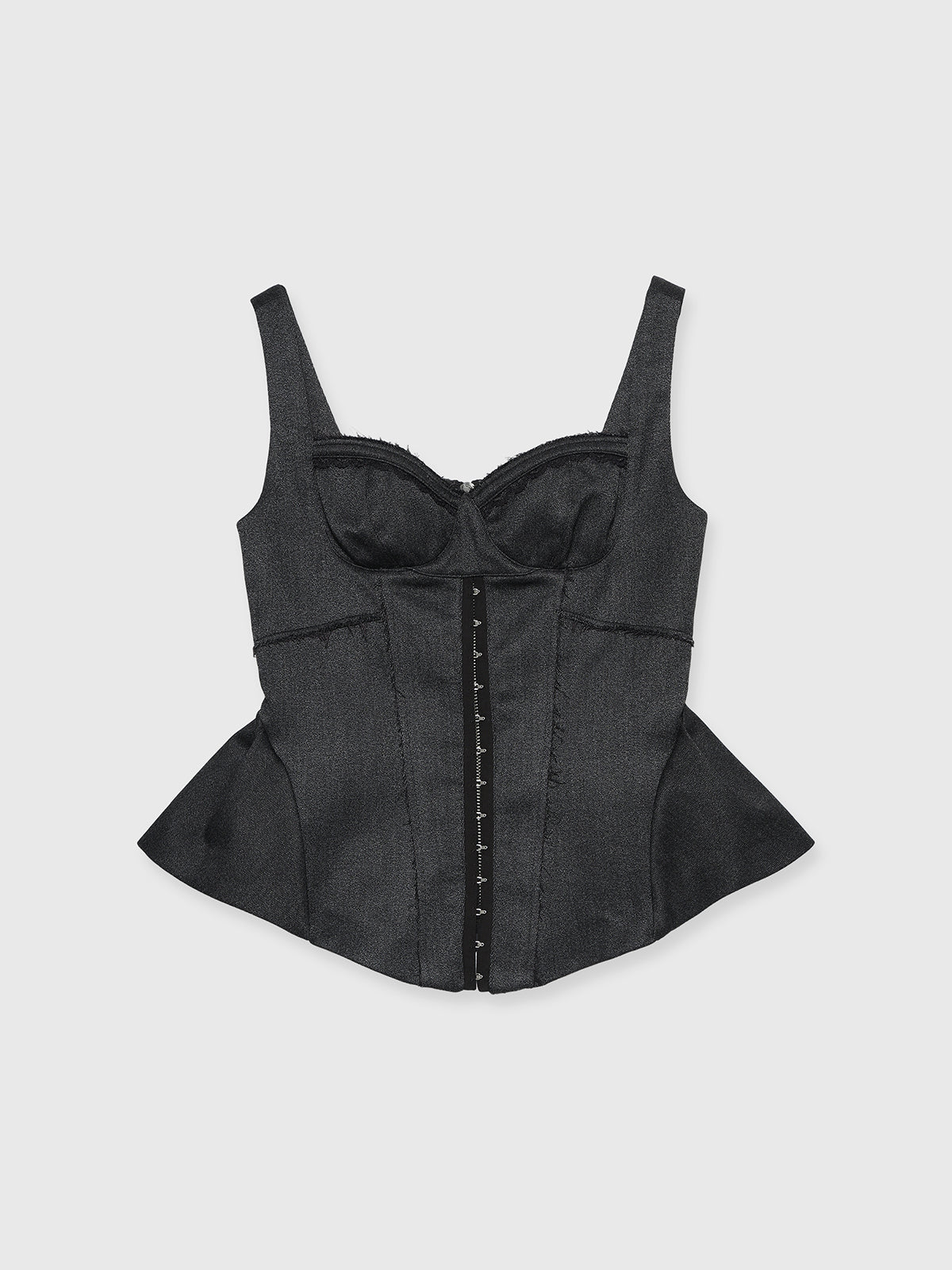 繊細なフェミニニティとエッジィなモード感が交差するペプラムビスチェは