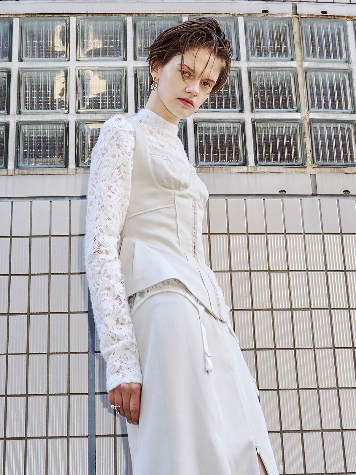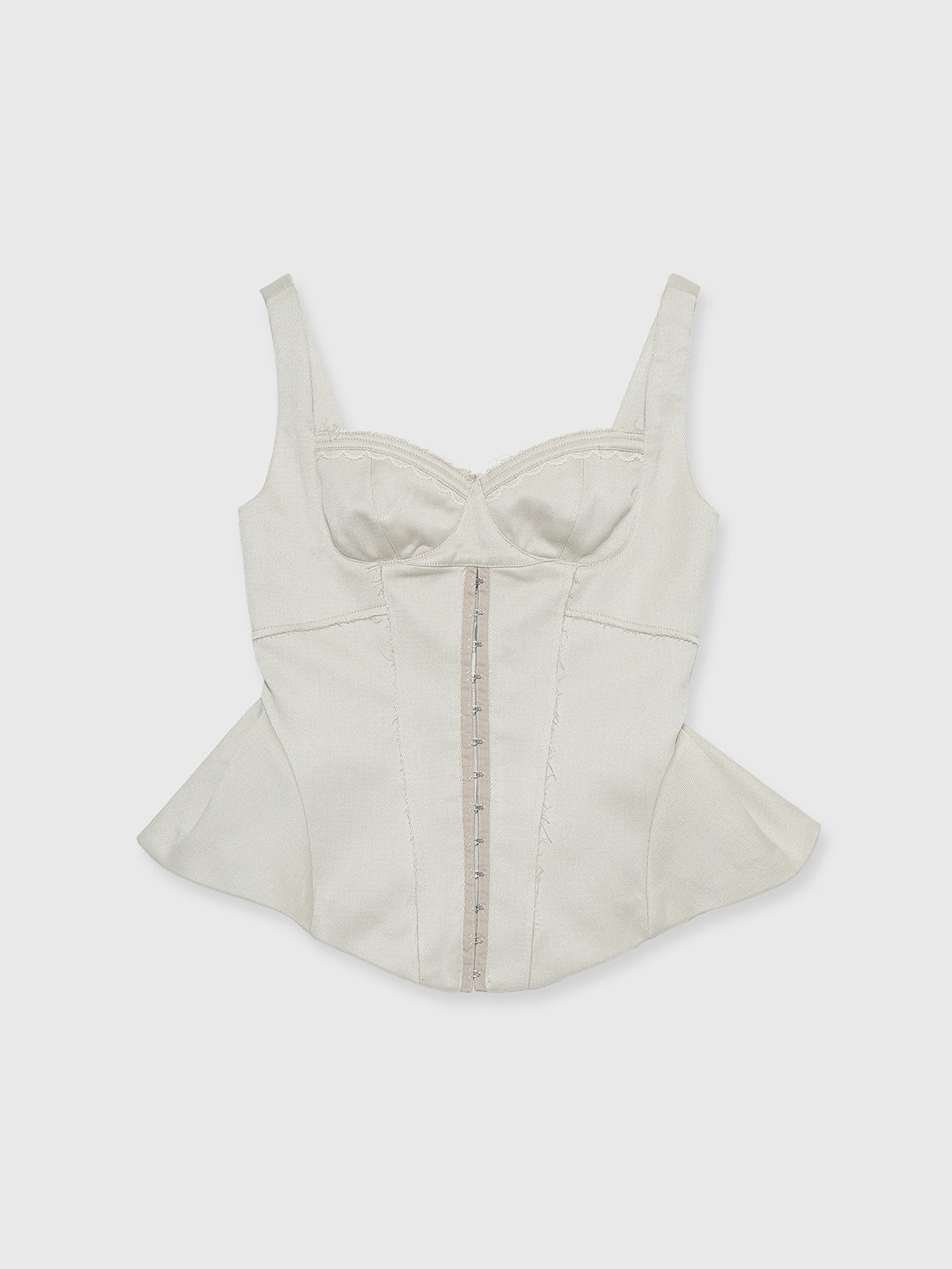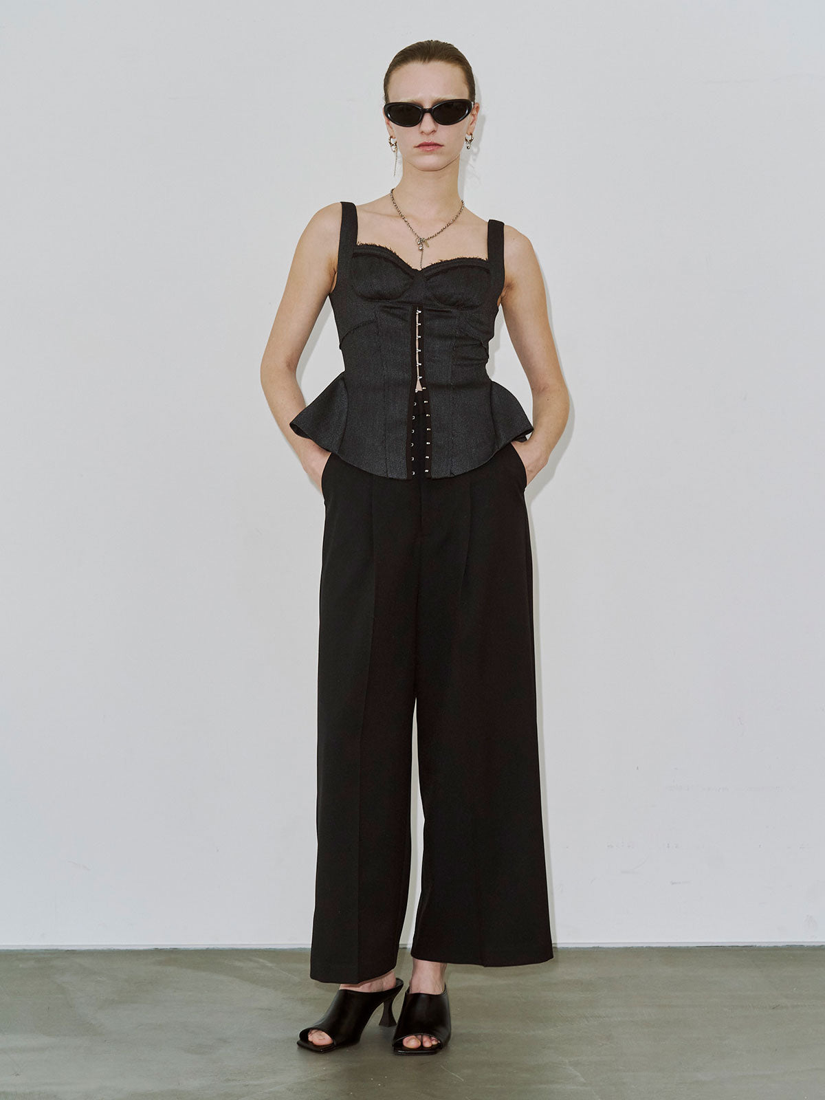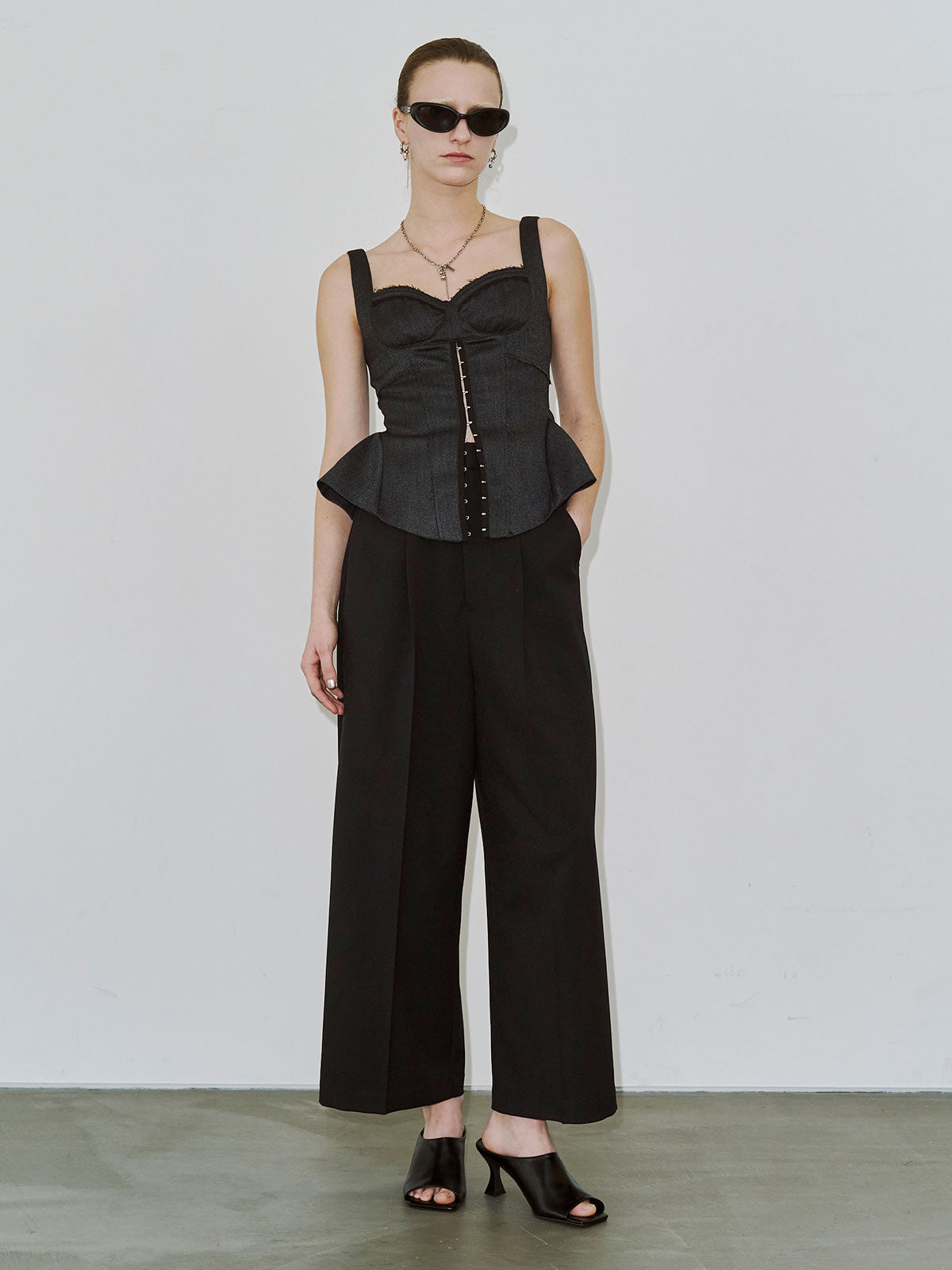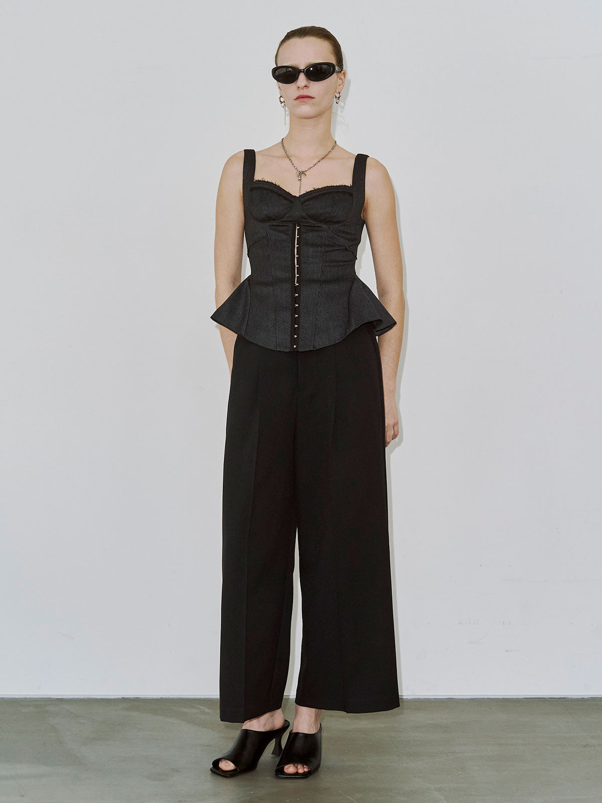 繊細なフェミニニティとエッジィなモード感が交差するペプラムビスチェは