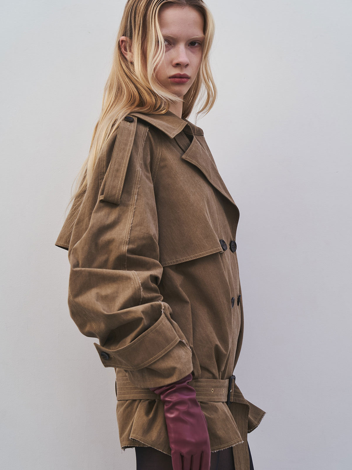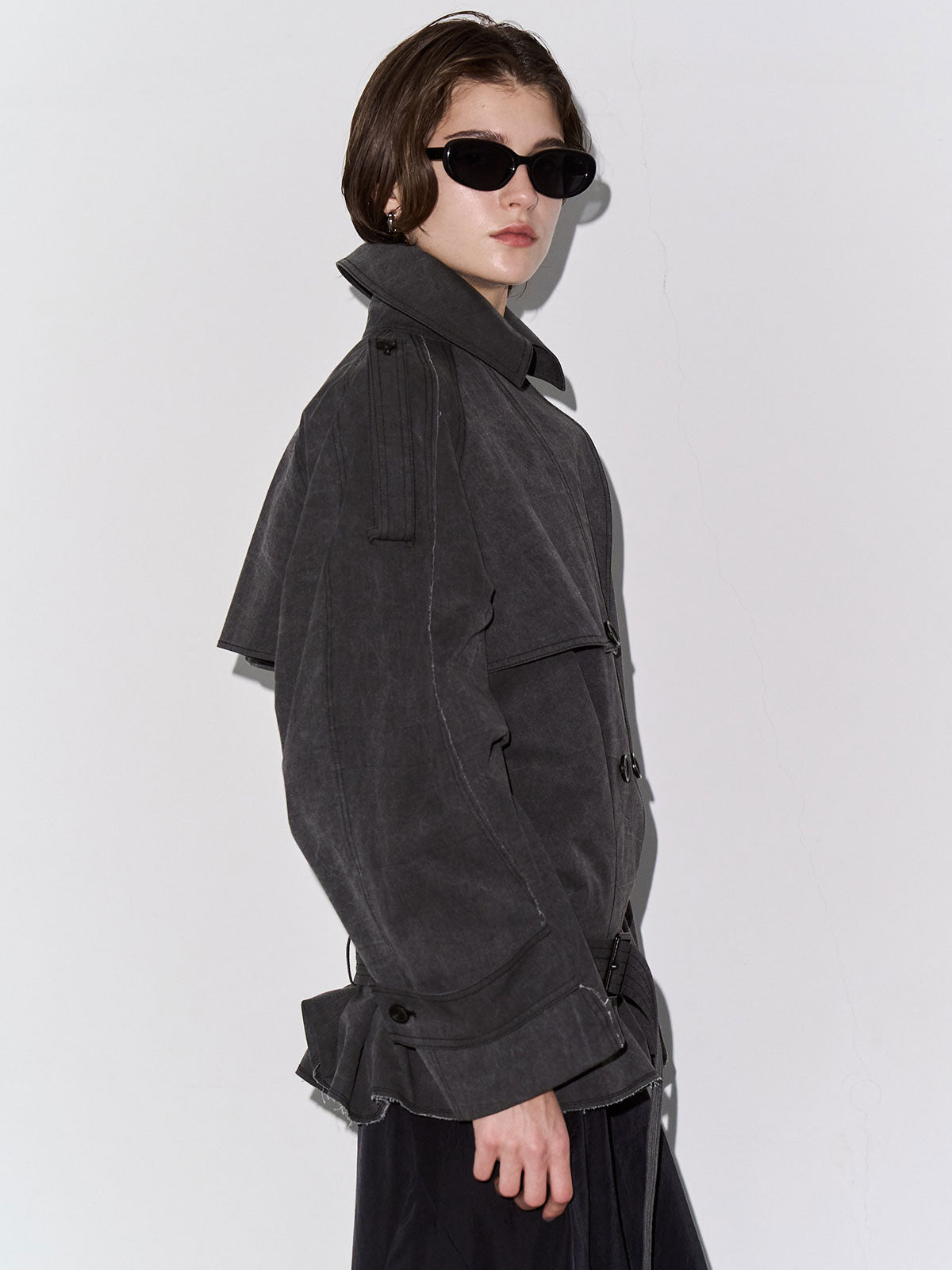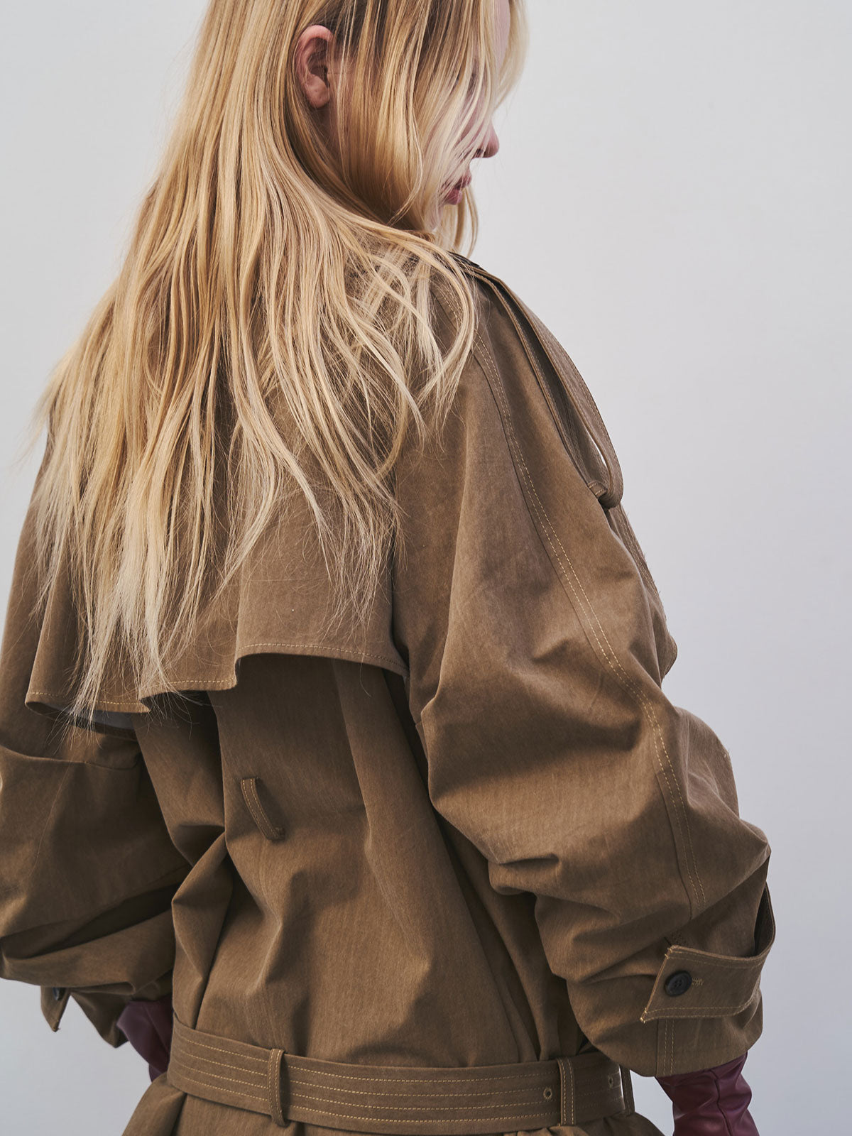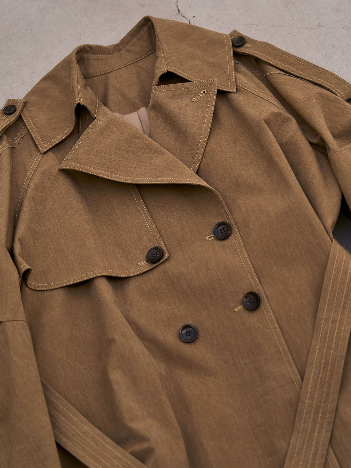 立体感とディテールにこだわったトレンチコートは袖の内側に施されたダーツが