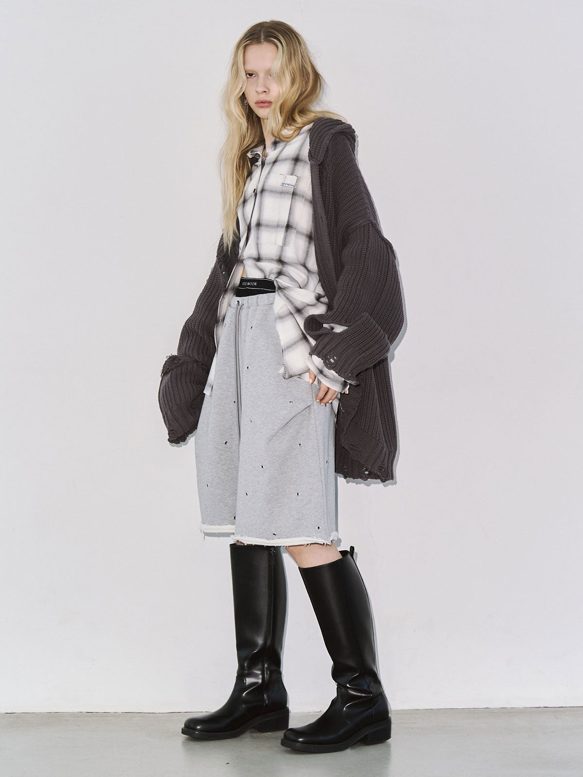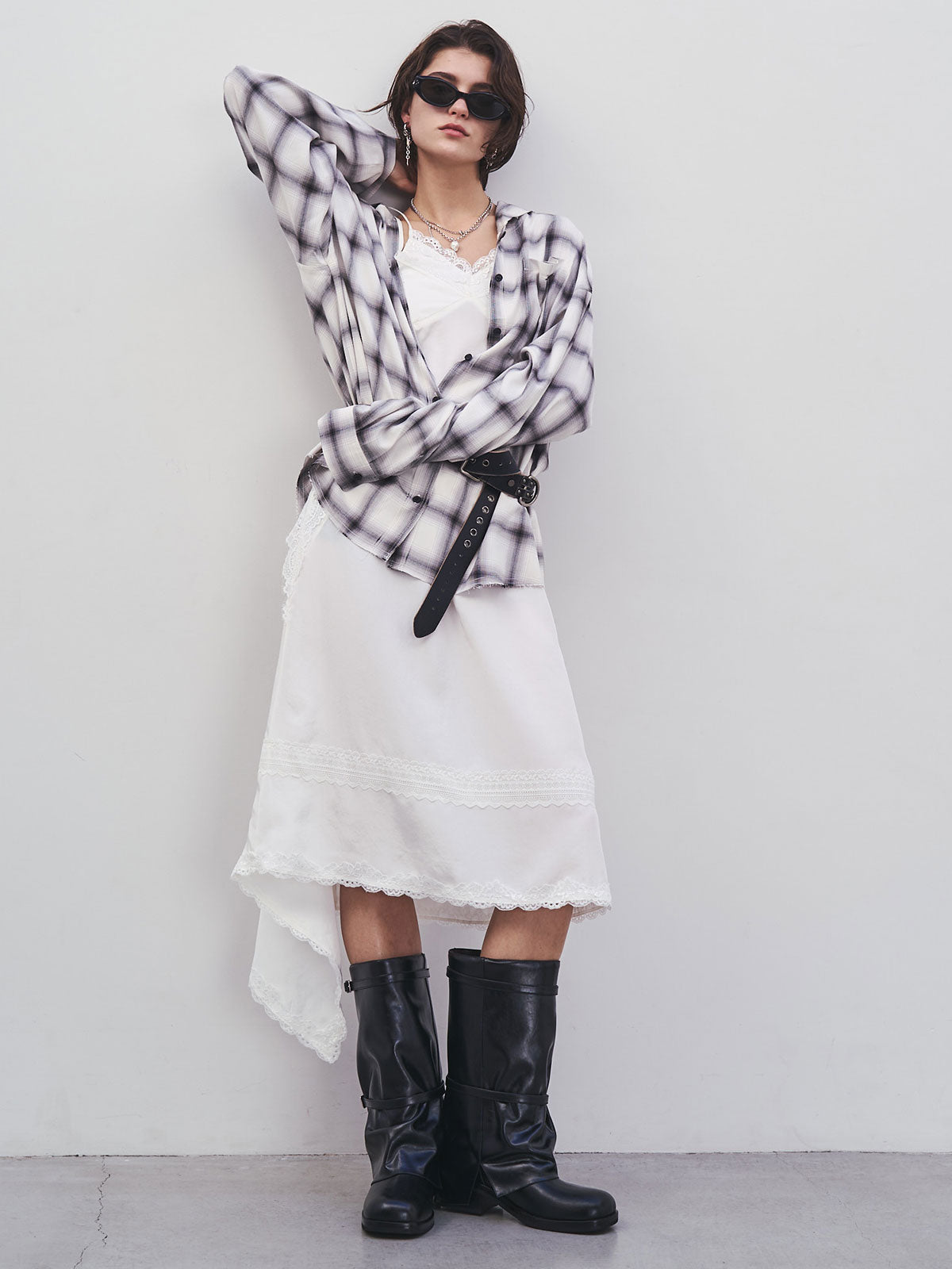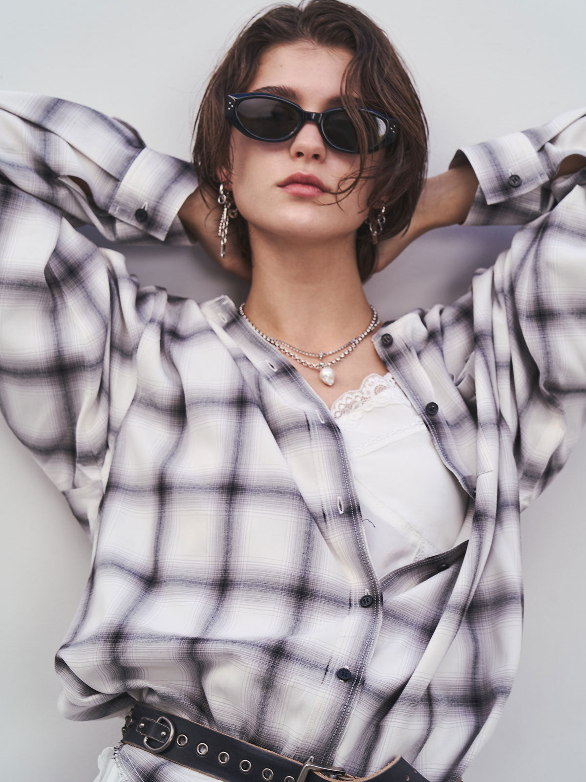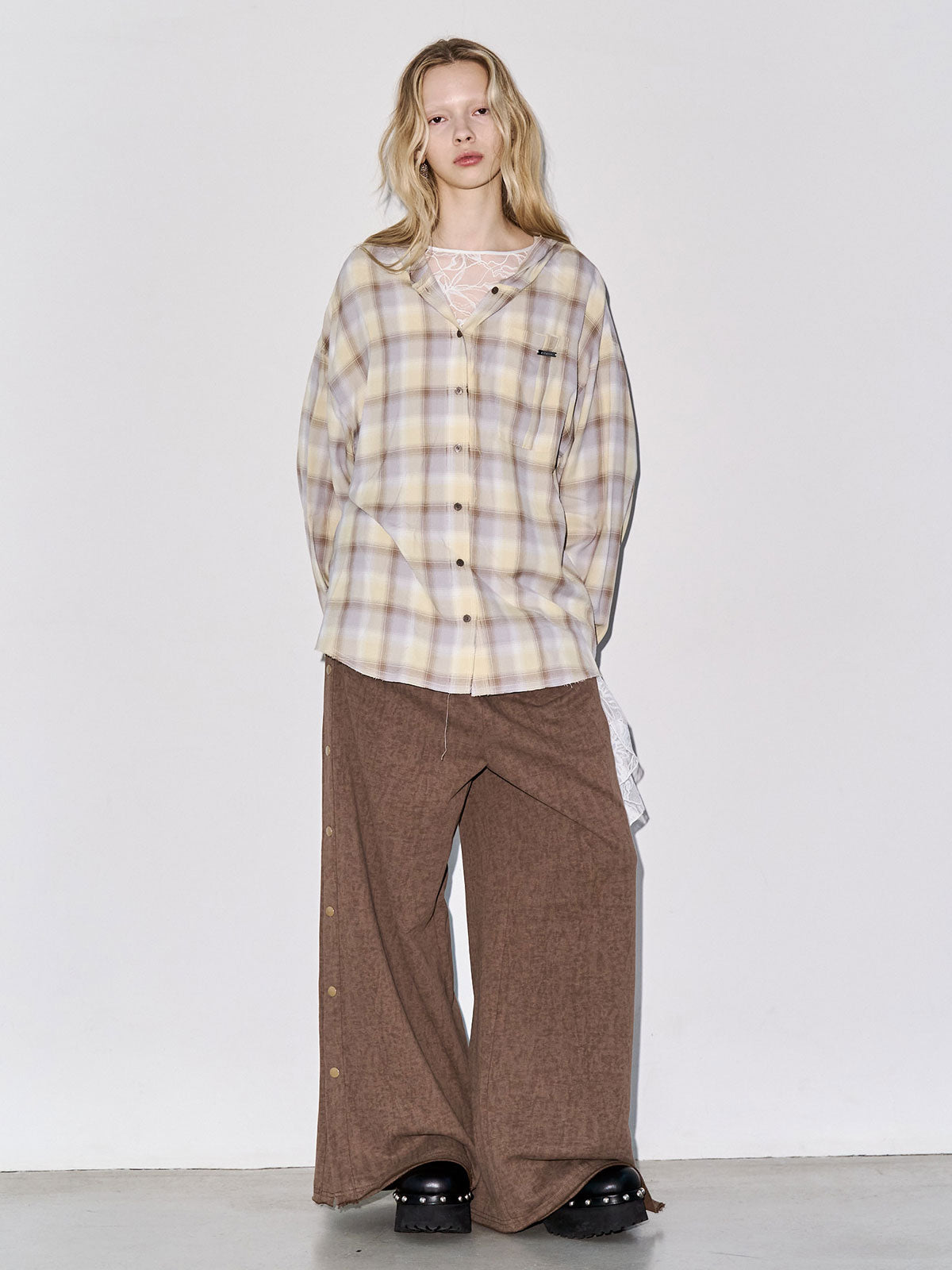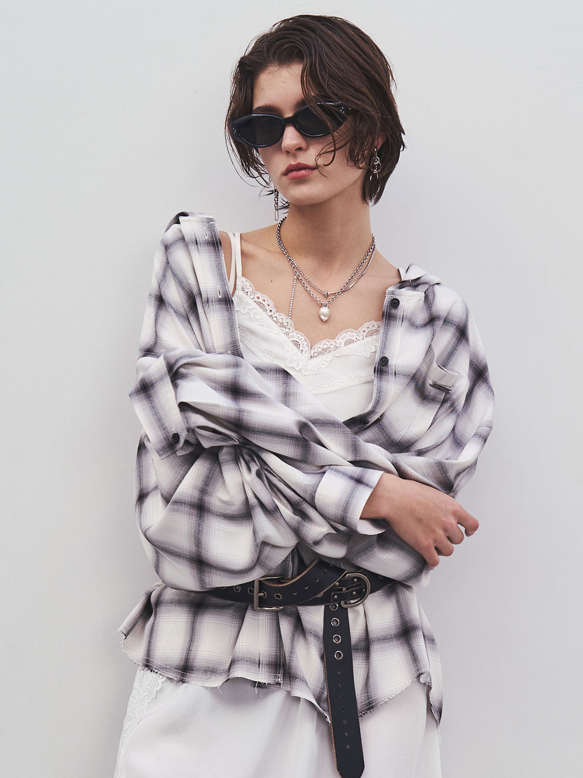 シャツのカジュアルさにひと癖を加えた、JOSEMOONらしいモードなチェックフーディー。