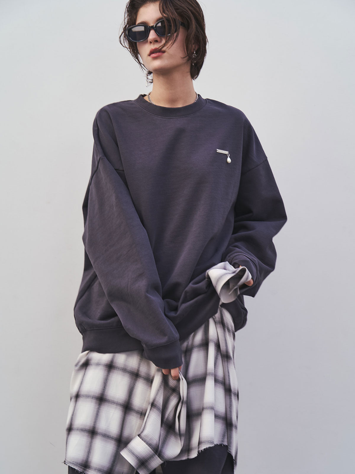横幅を大きくとり、身体を包み込むようなダルっとしたシルエットが抜け感を演出。