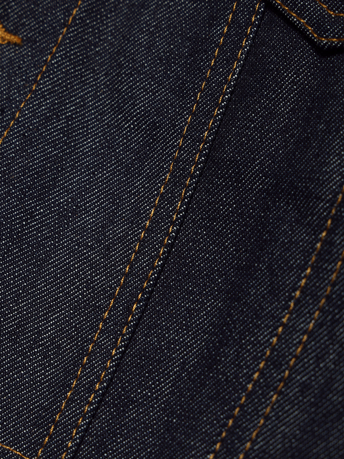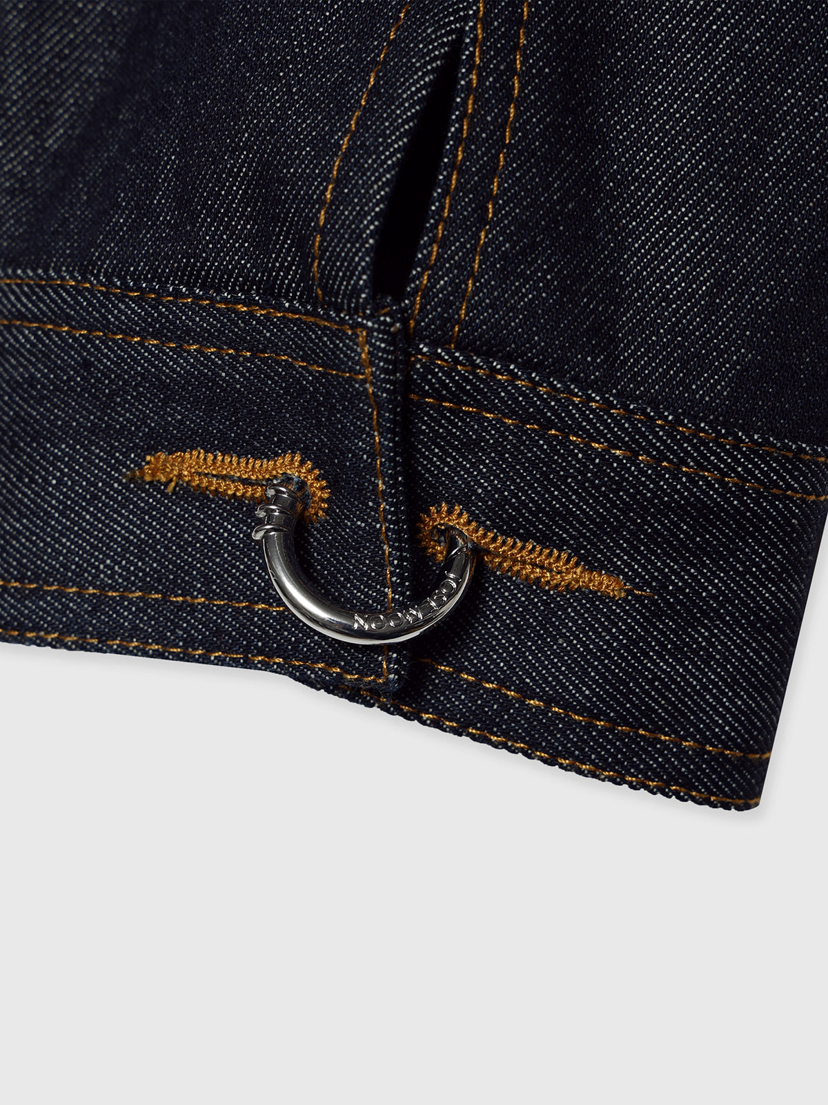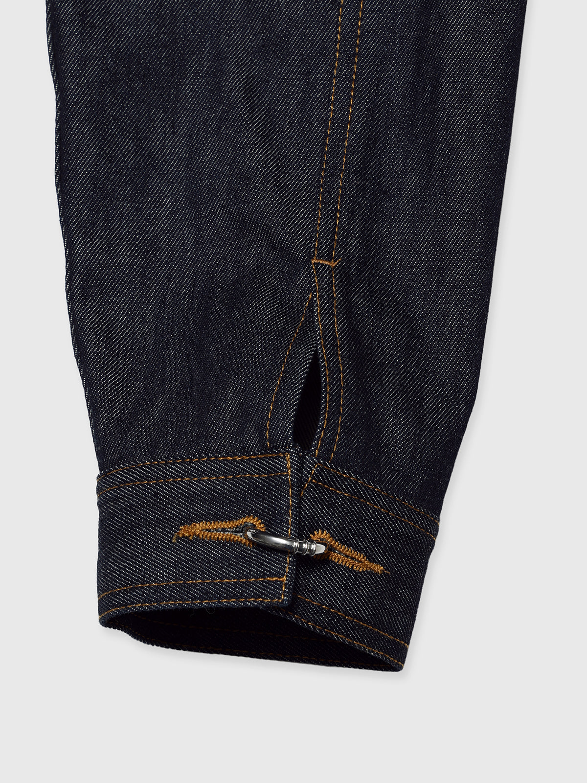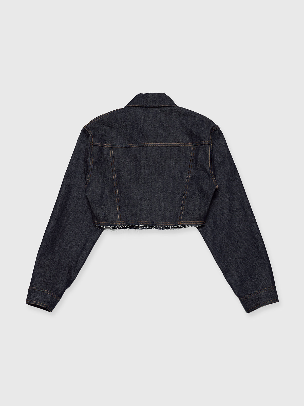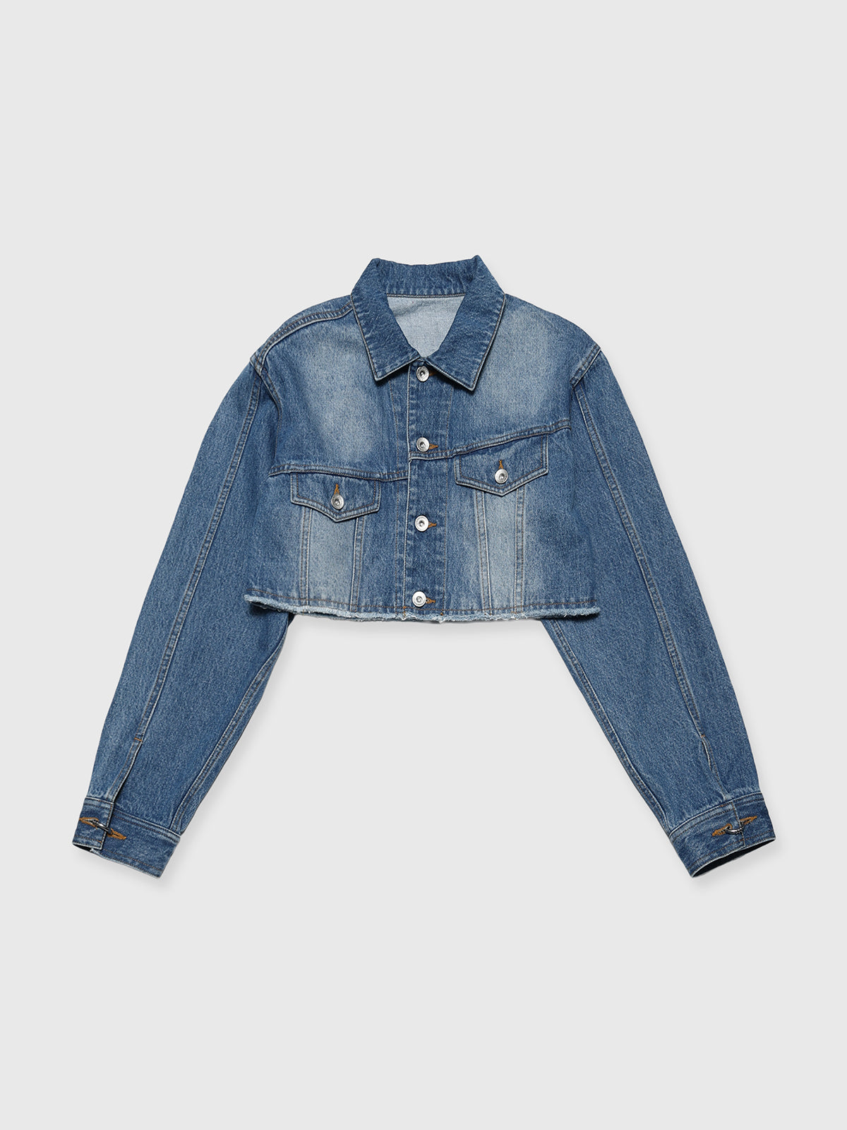 左右が非対称のデザインや、袖を後ろ前に反転させて取り付けたディテールで、カジュアルなデニムにモードなスパイスを効かせました。