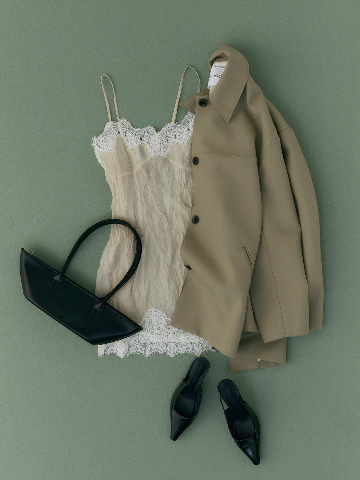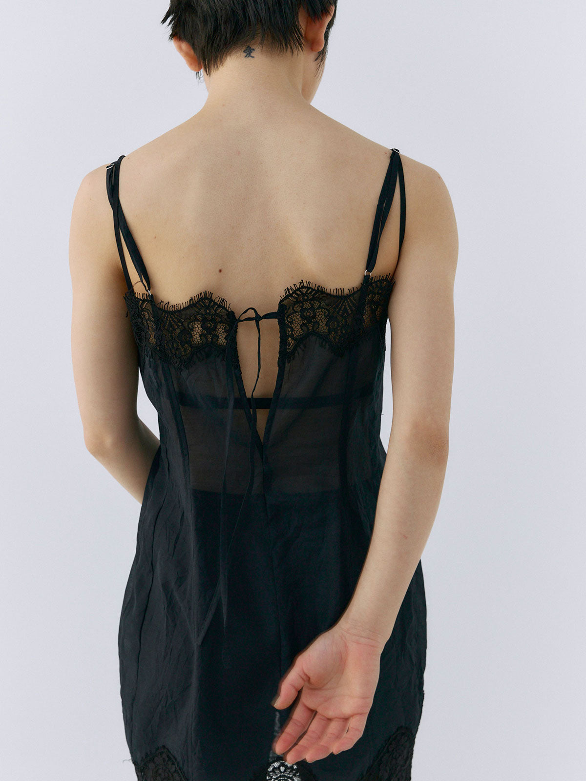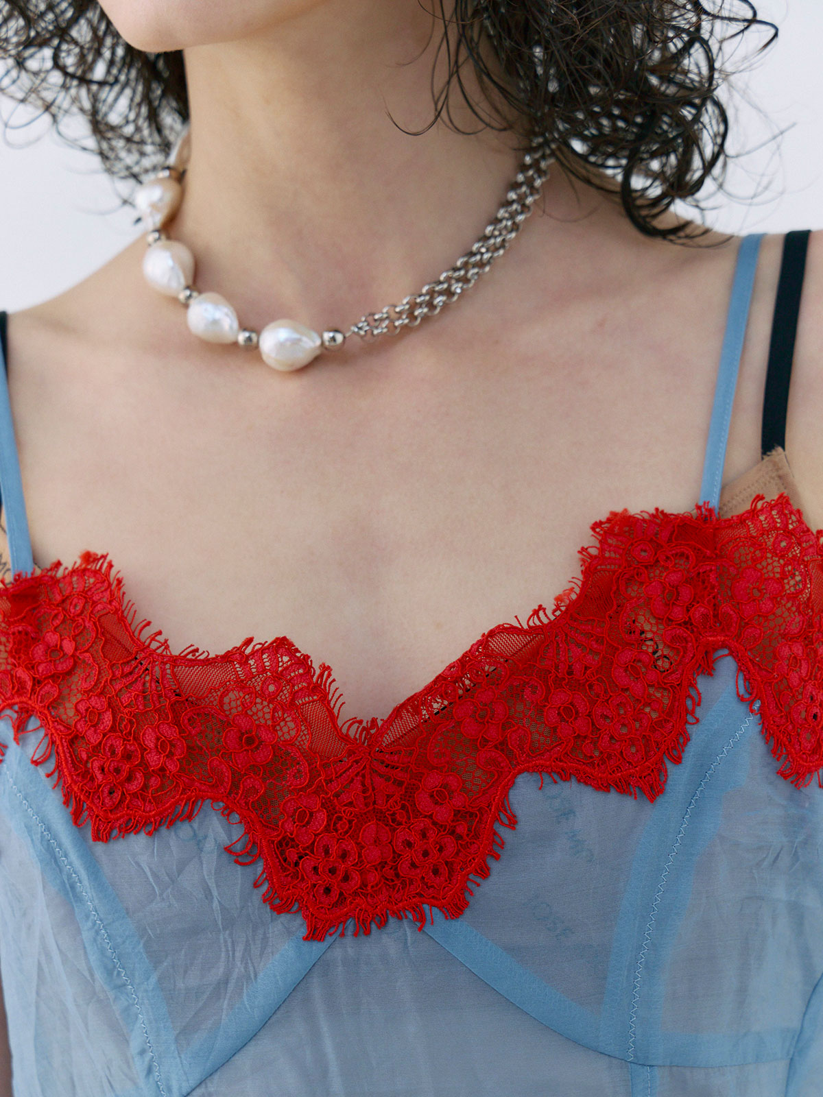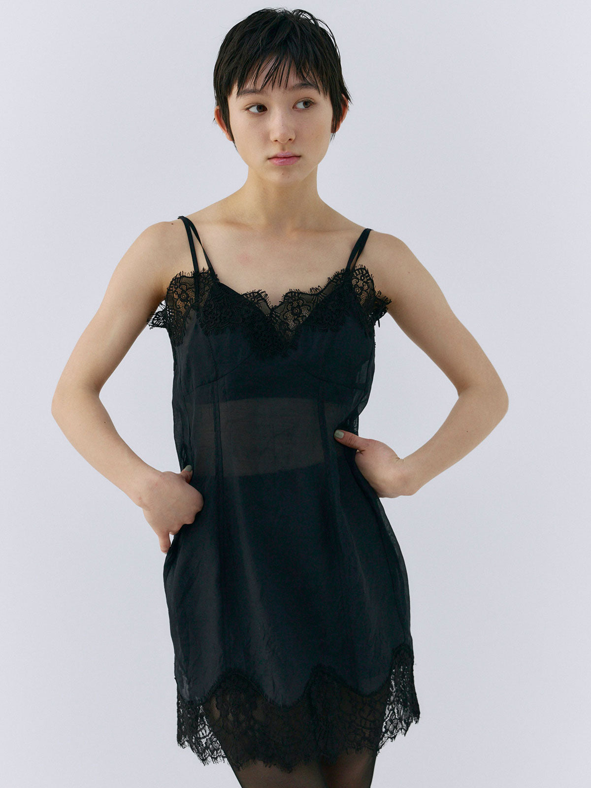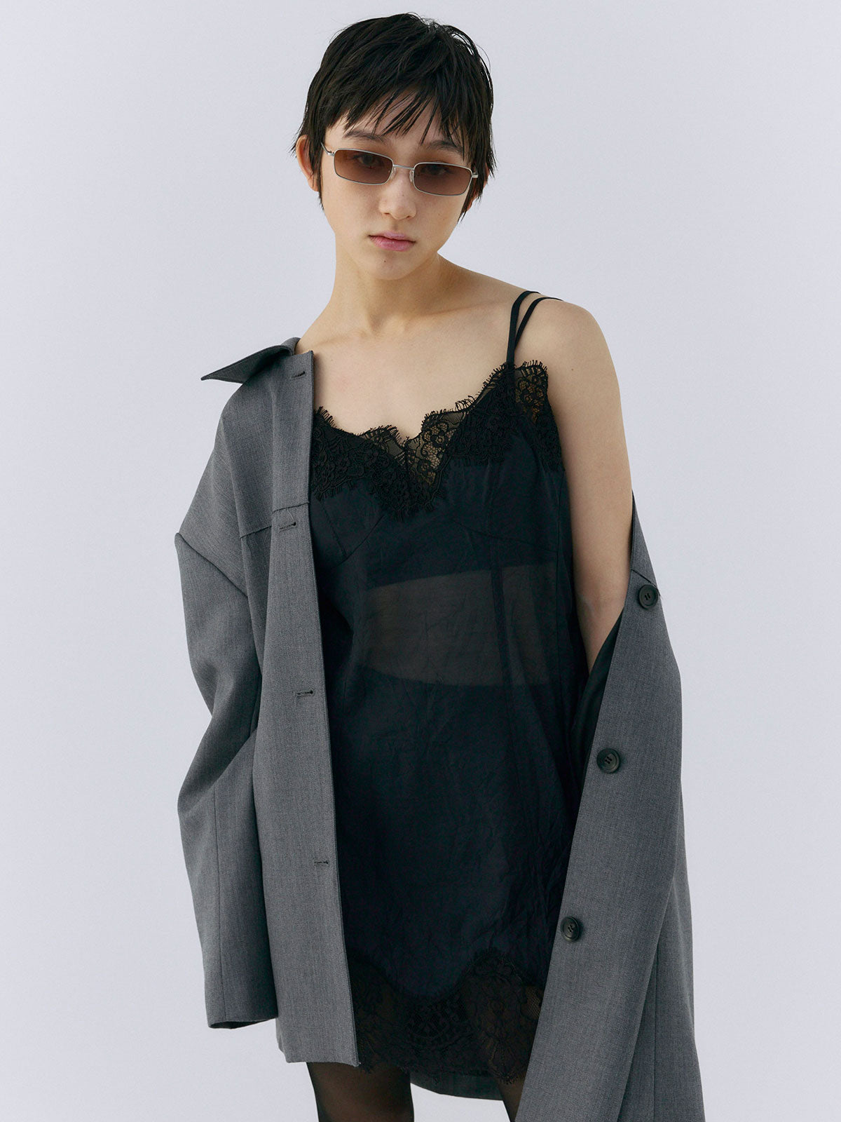 ミニマルで洗練されたメリハリのあるシルエットと高級感のあるレース生地を刺繍したキャミソールです。