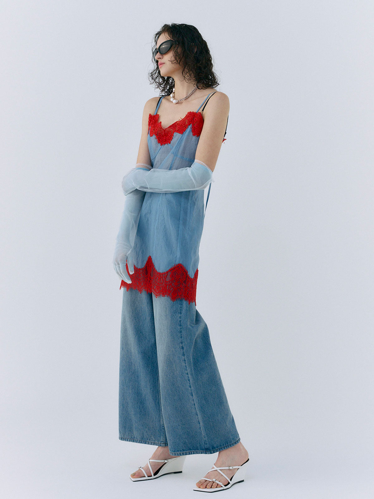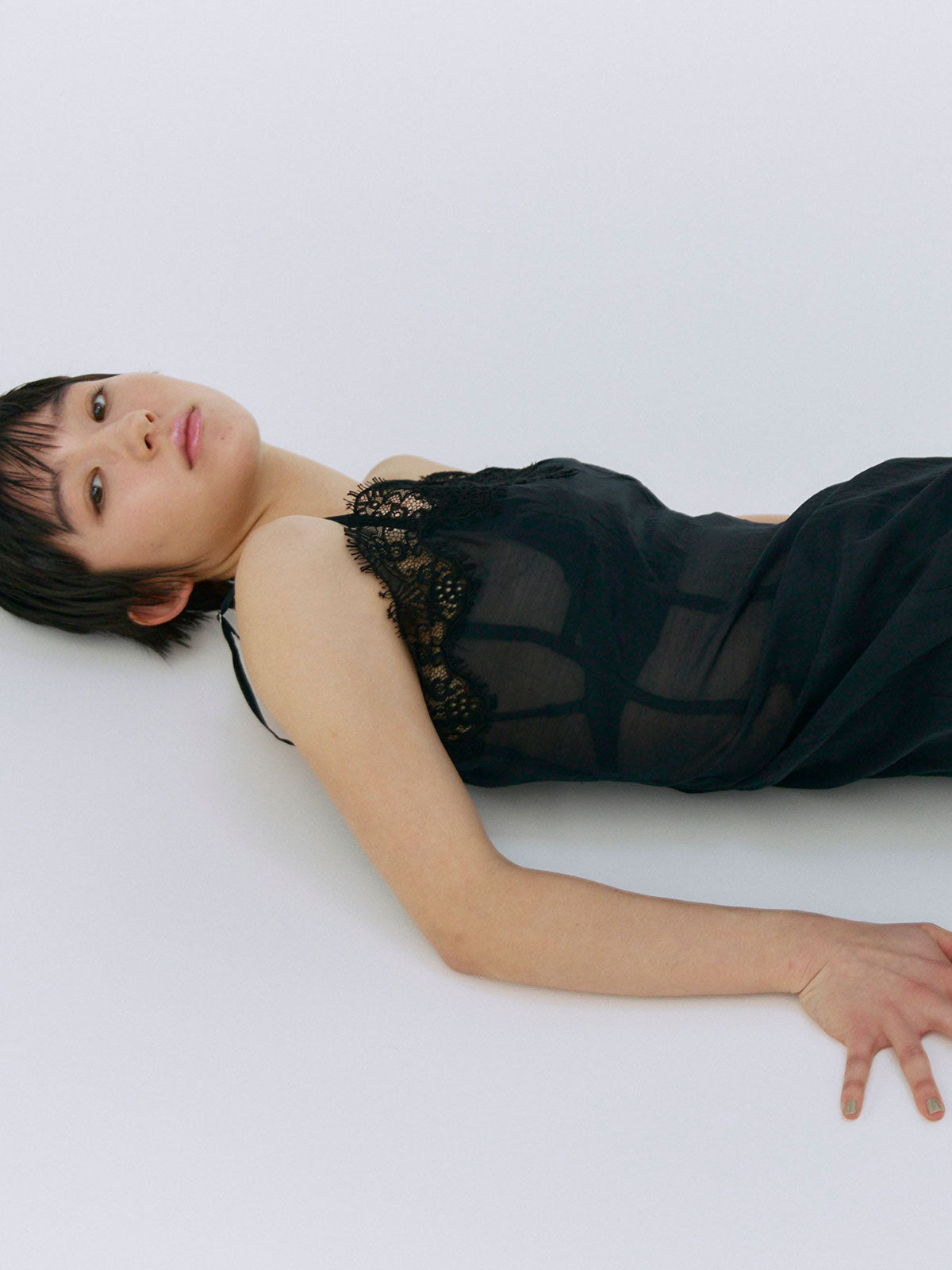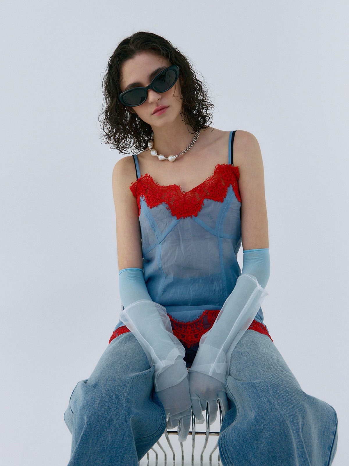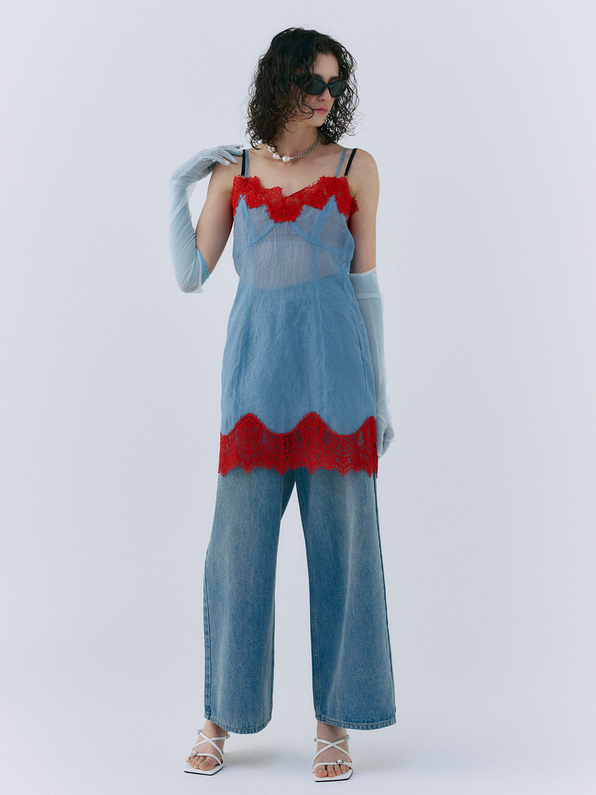 ミニマルで洗練されたメリハリのあるシルエットと高級感のあるレース生地を刺繍したキャミソールです。