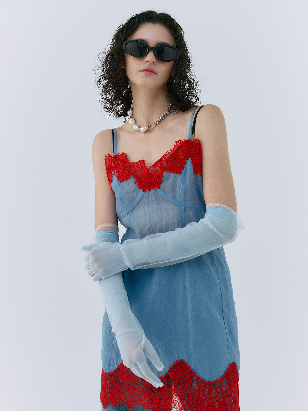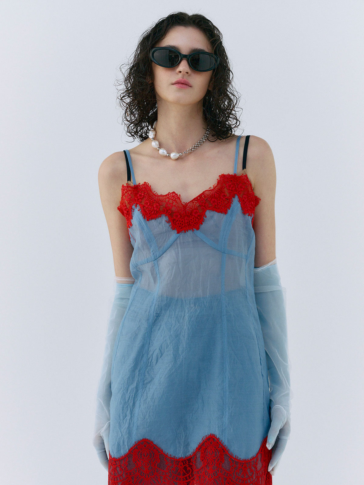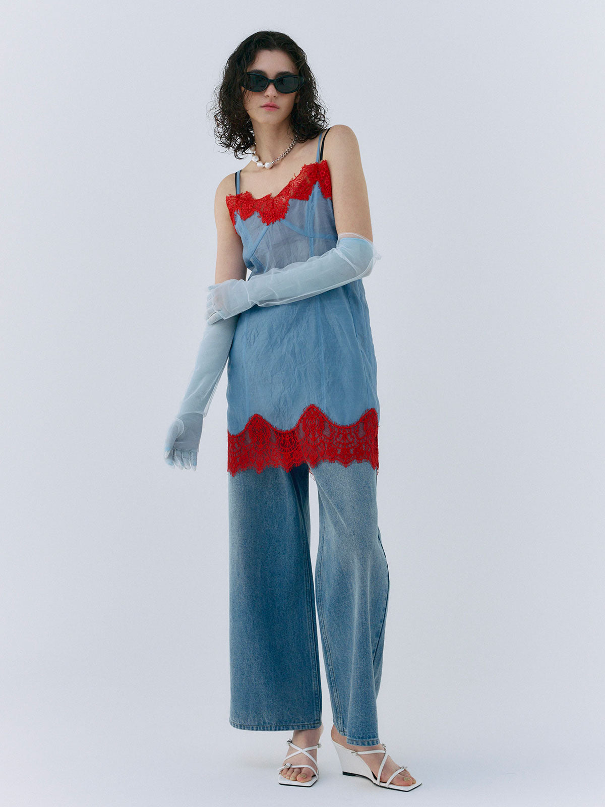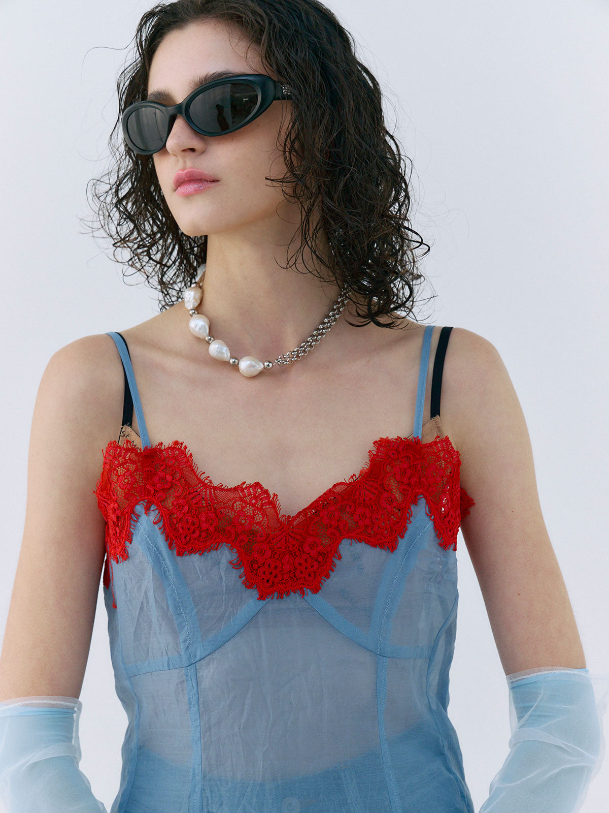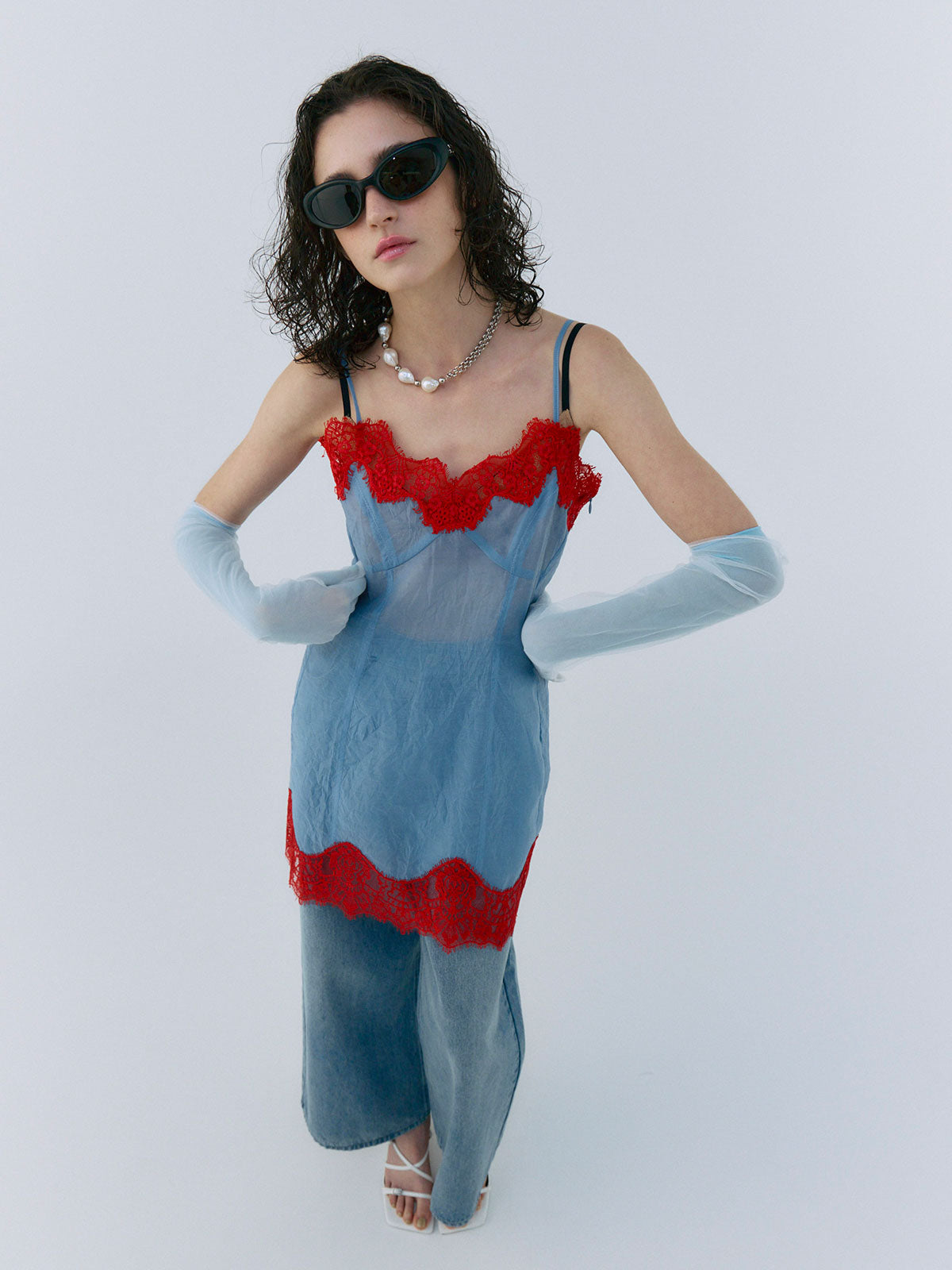 ミニマルで洗練されたメリハリのあるシルエットと高級感のあるレース生地を刺繍したキャミソールです。