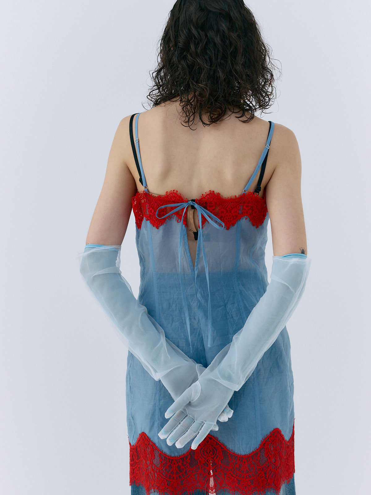 オーガンジー素材にワッシャー加工を施し動きのあるテクスチャーが全体に立体感を演出します。