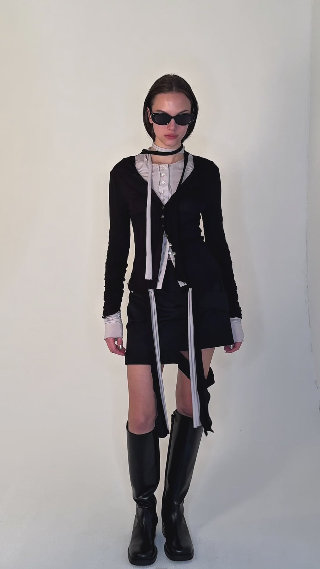 前ボタンを留めてトップスとしても、開けてカーディガンとしても着られる2WAY仕様。
