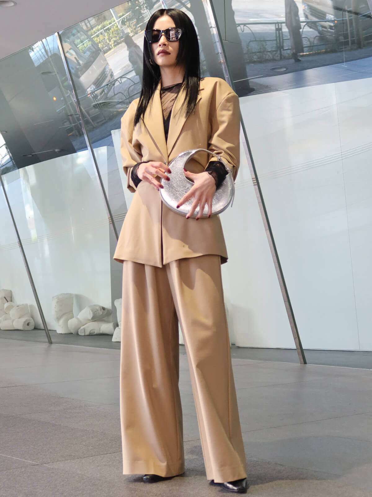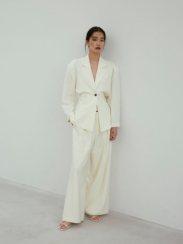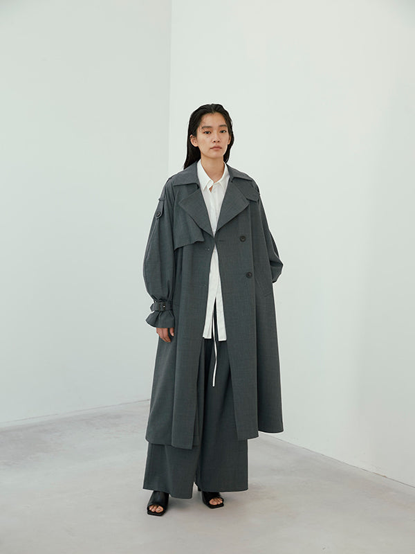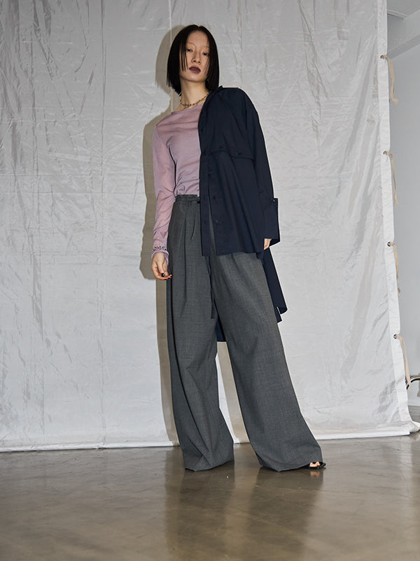 同素材のWAIST CONSCIOUS OVER JACKETを合わせたセットアップスタイルもオススメです。