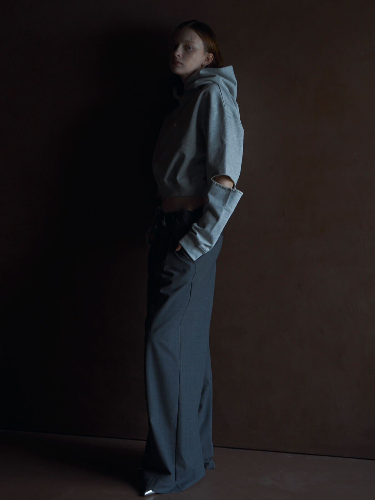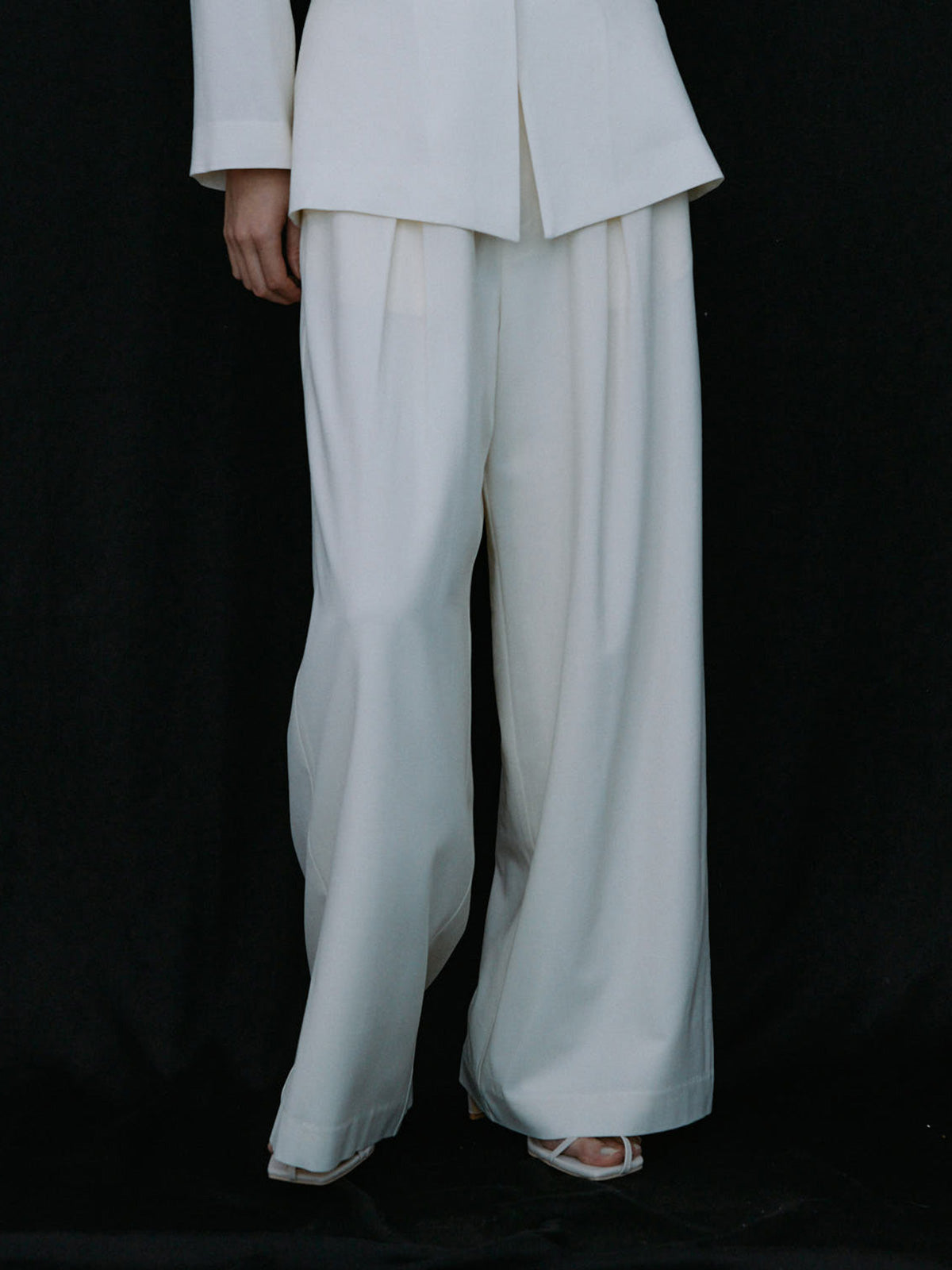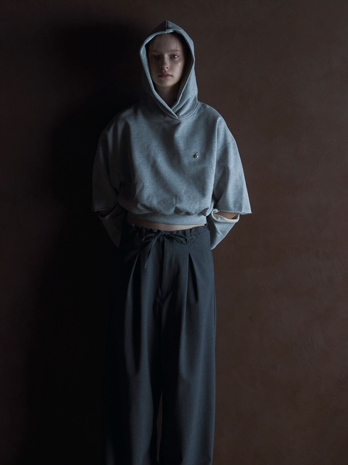 同素材のWAIST CONSCIOUS OVER JACKETを合わせたセットアップスタイルもオススメです。