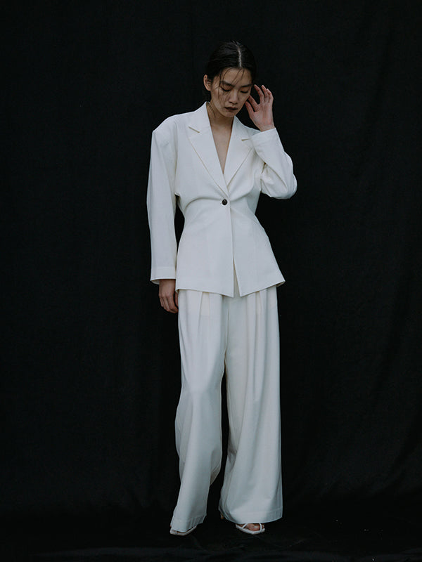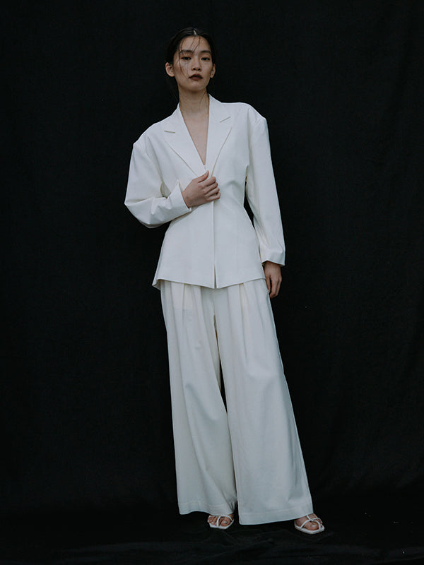 日本製の上質なストレッチウール素材を使用しているので、ゆったりとしたサイズ感でもカジュアルにならず、大人の抜け感を演出できる1着です。