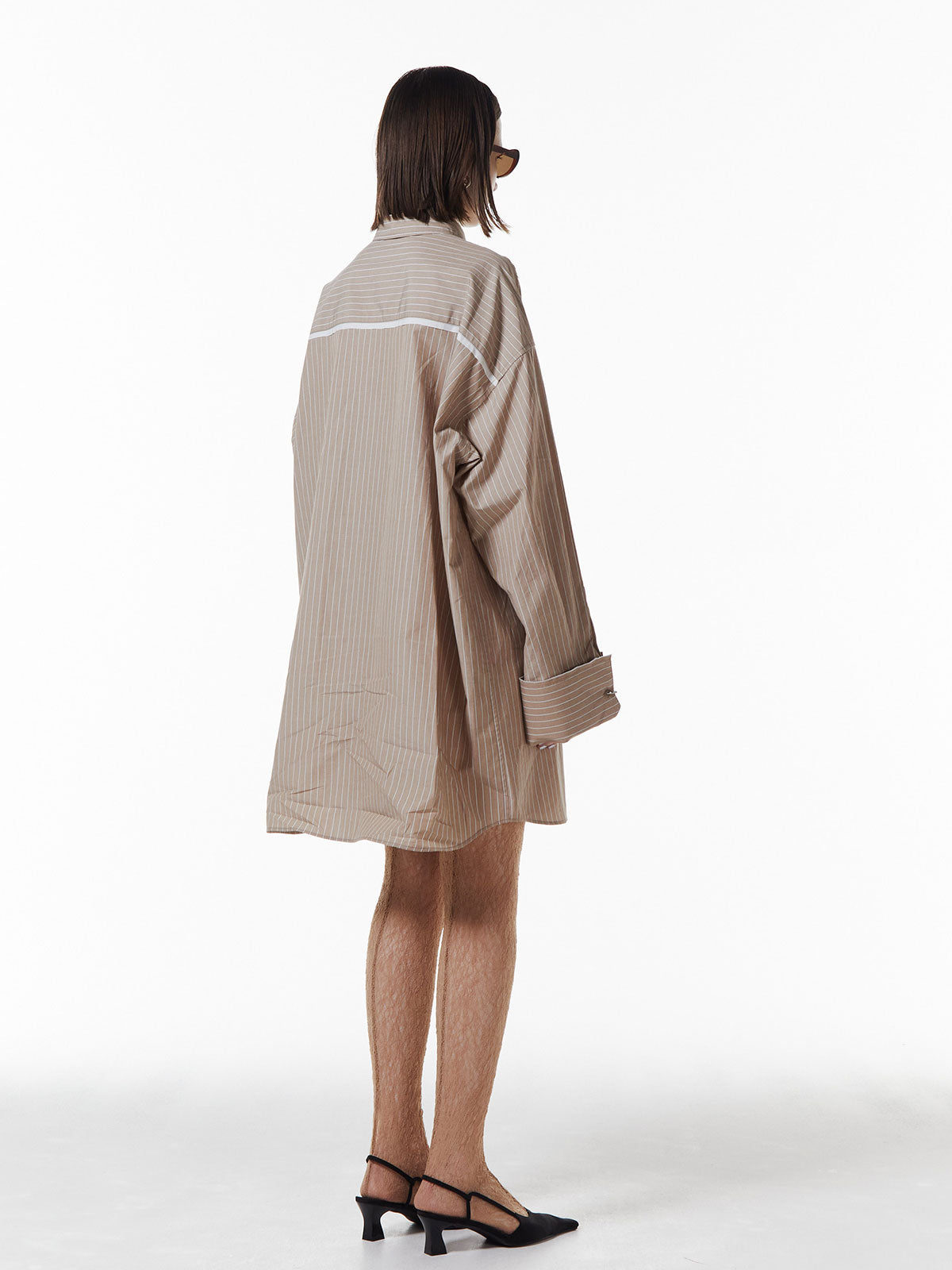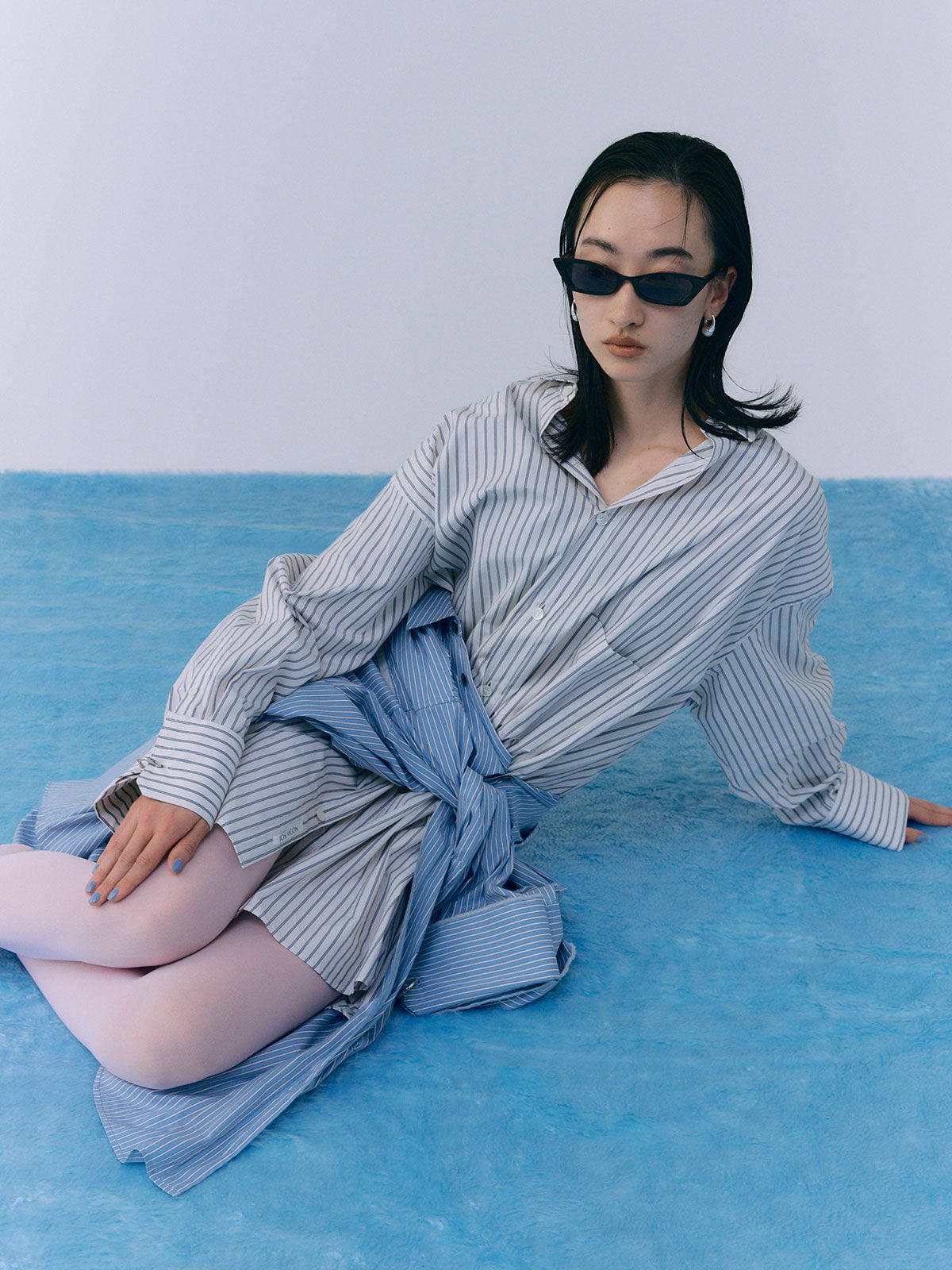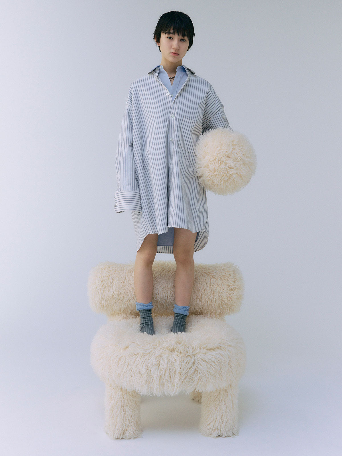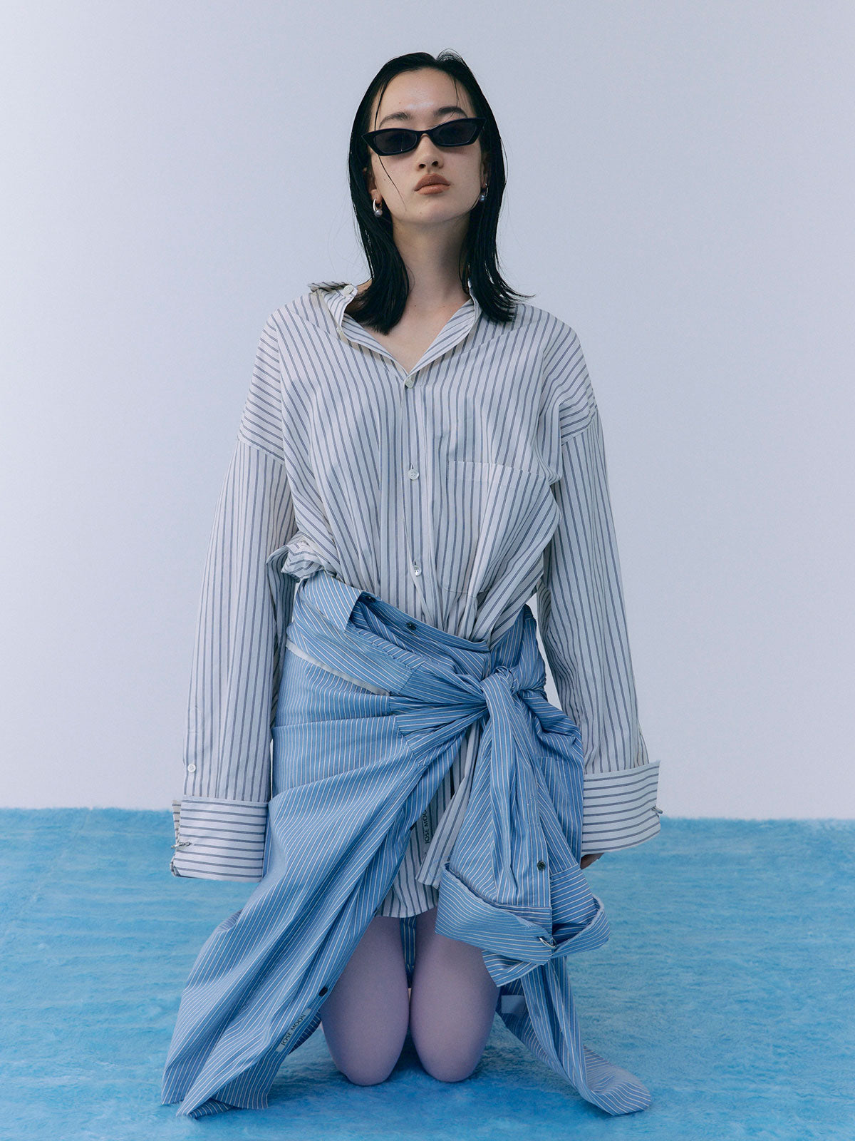 オーバーサイズのデザインなので、ボトムスと合わせるだけでなく、ワンピースとしても着用可能。
