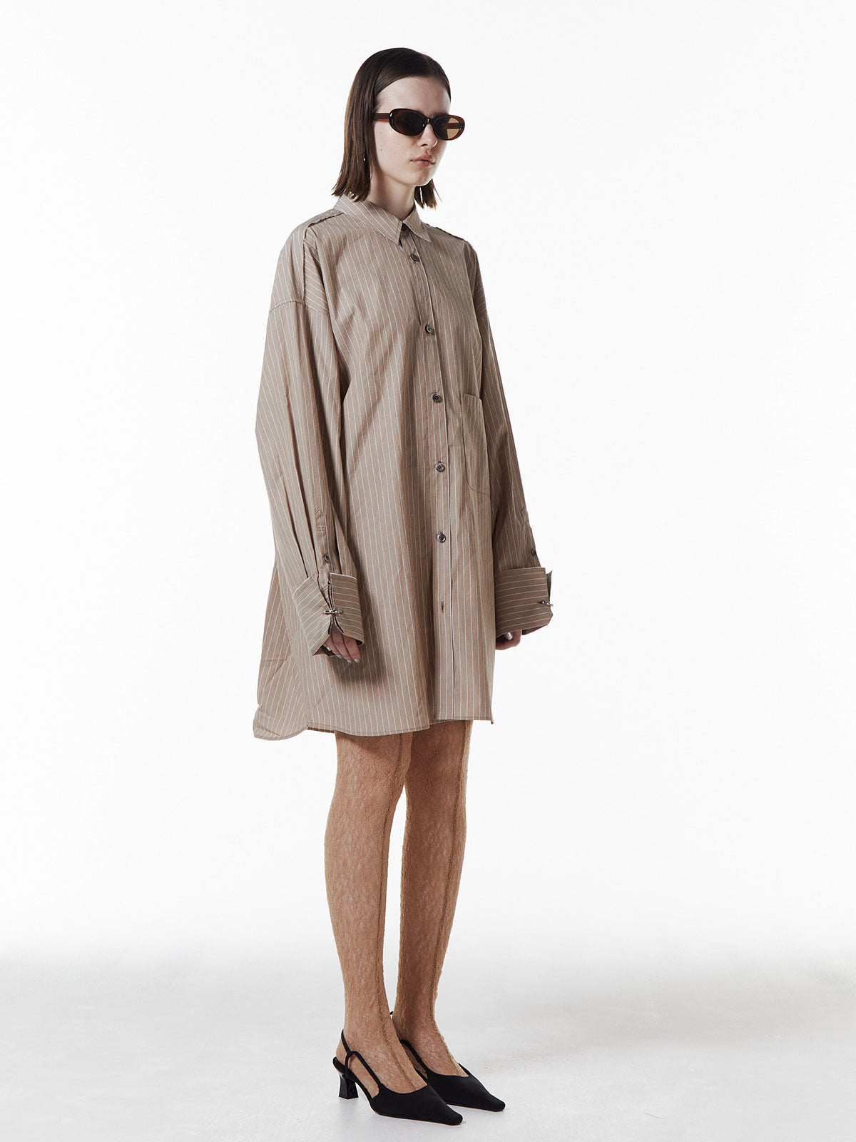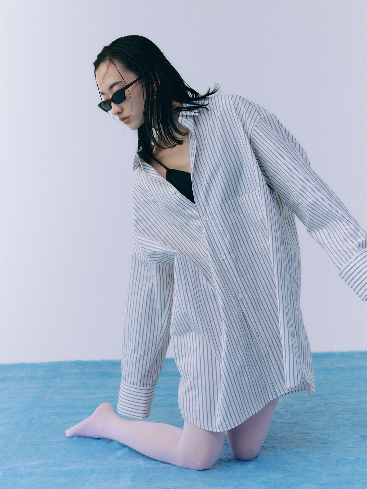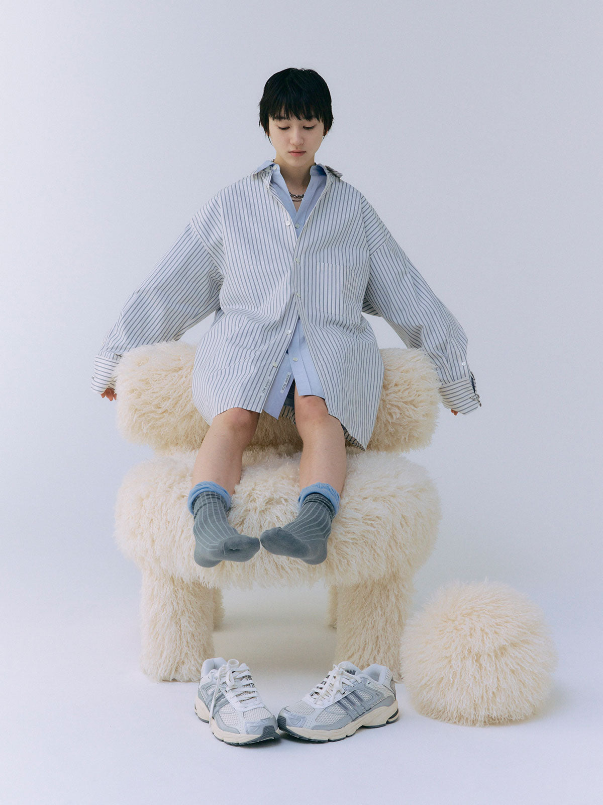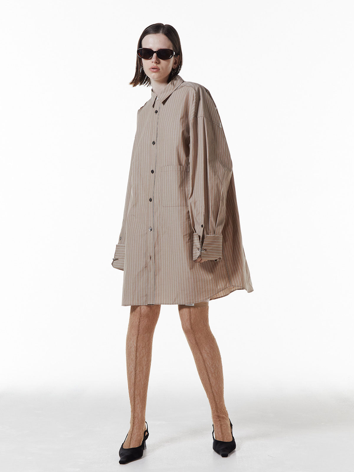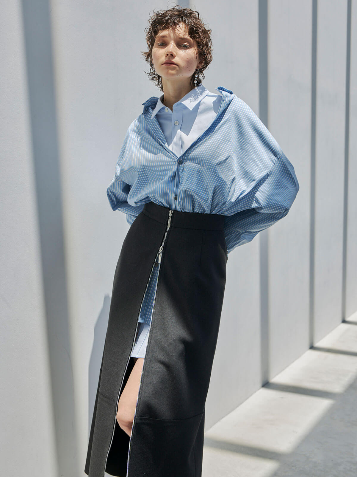 オーバーサイズのデザインなので、ボトムスと合わせるだけでなく、ワンピースとしても着用可能。