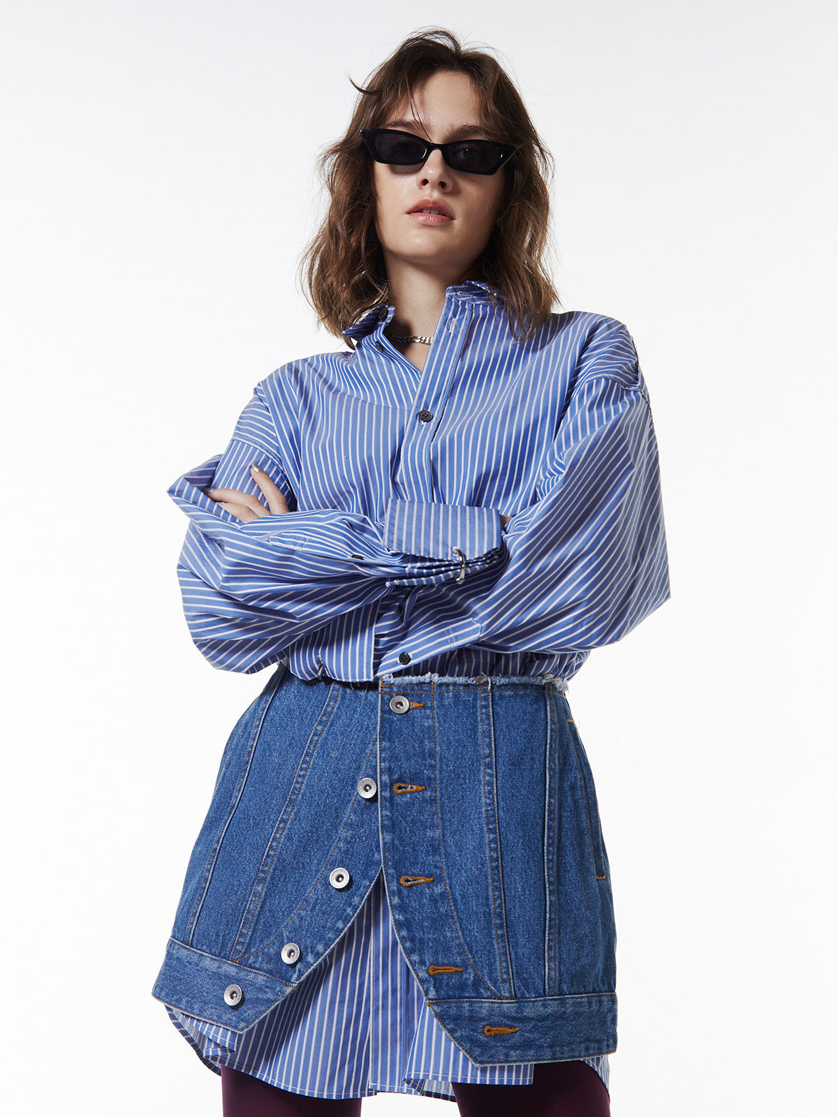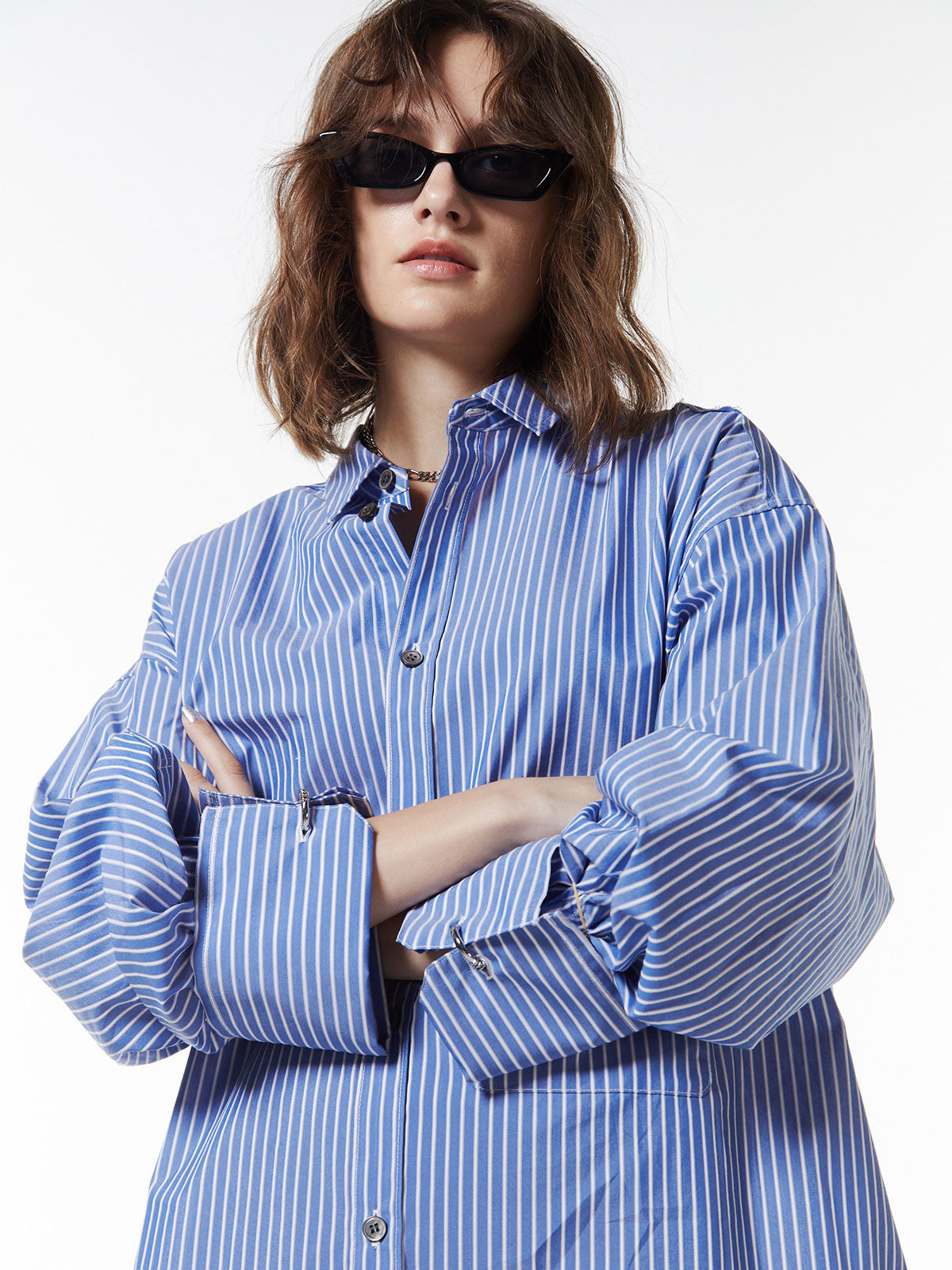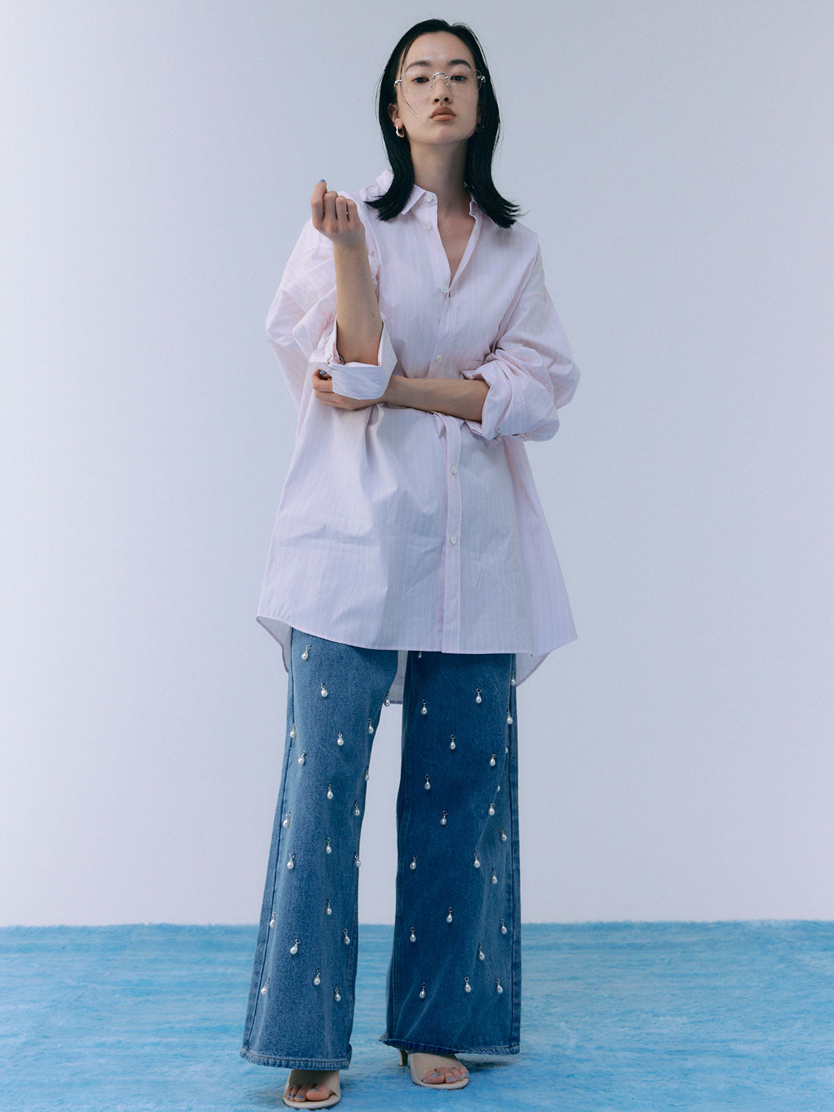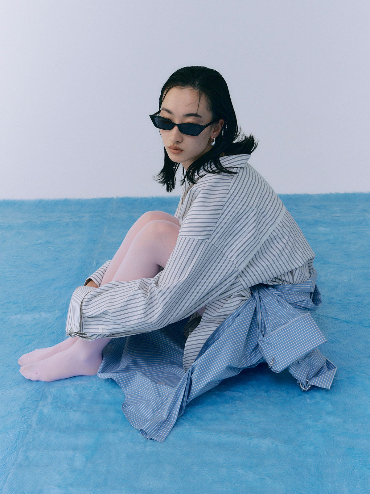 オーバーサイズのデザインなので、ボトムスと合わせるだけでなく、ワンピースとしても着用可能。