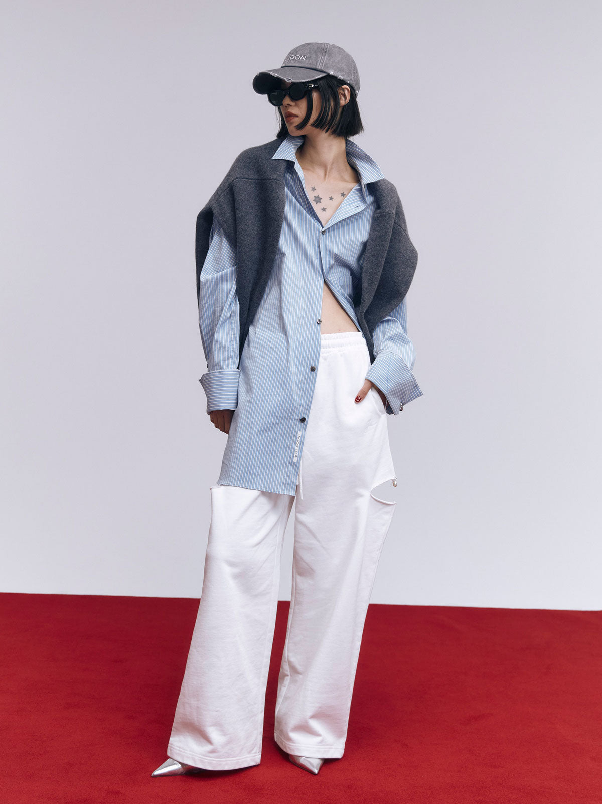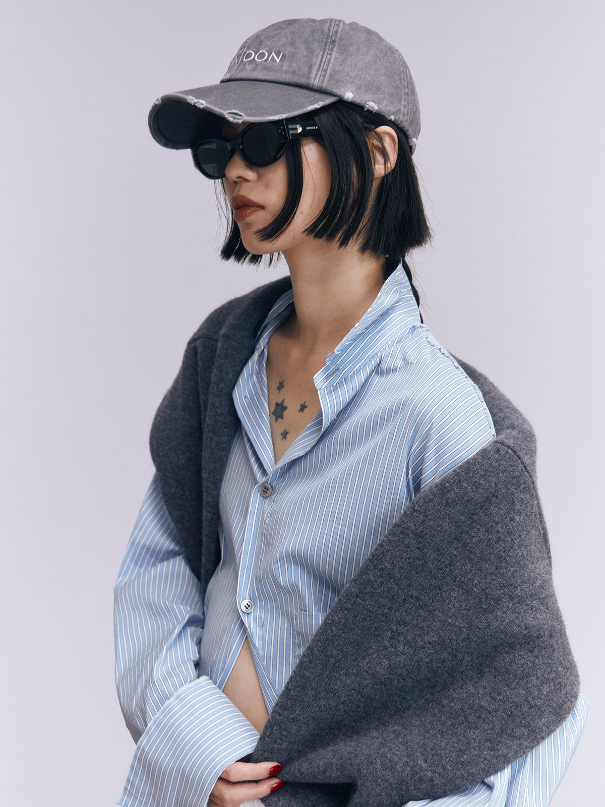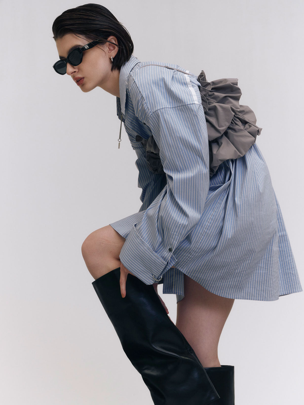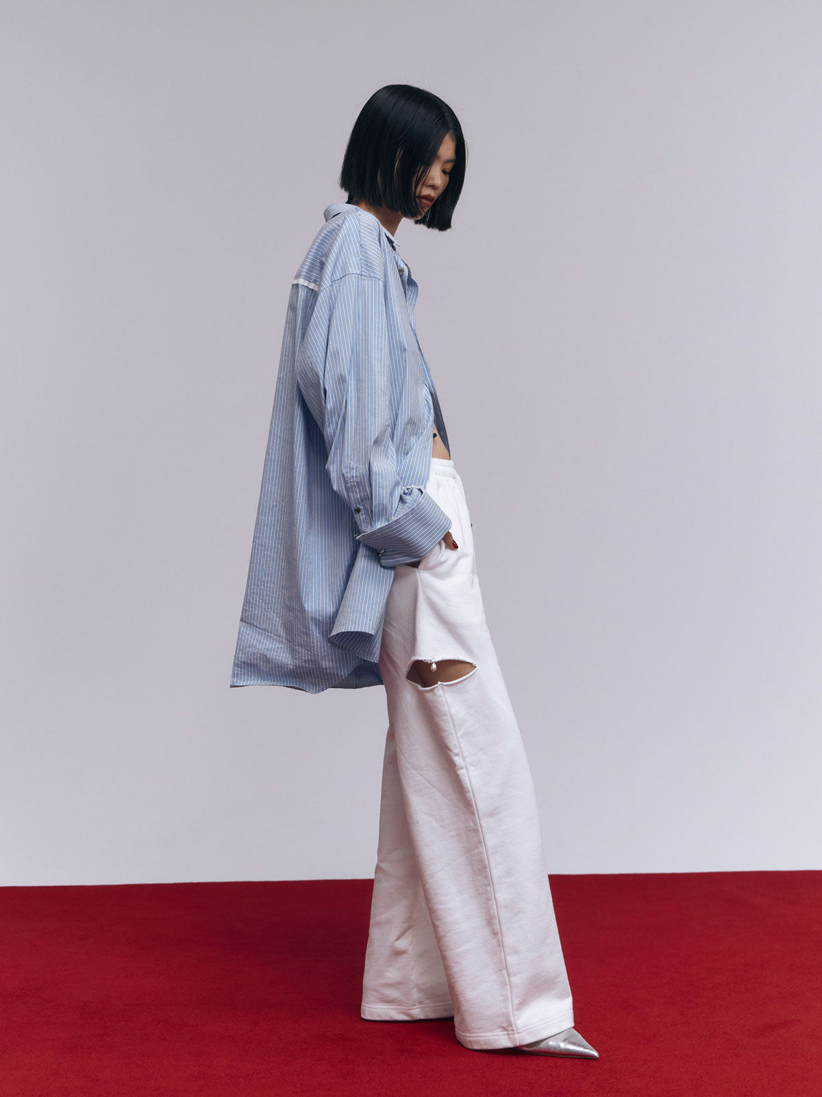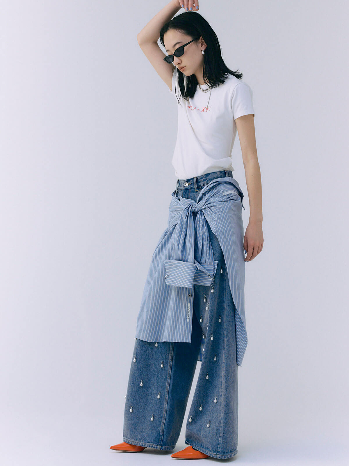 オーバーサイズのデザインなので、ボトムスと合わせるだけでなく、ワンピースとしても着用可能。